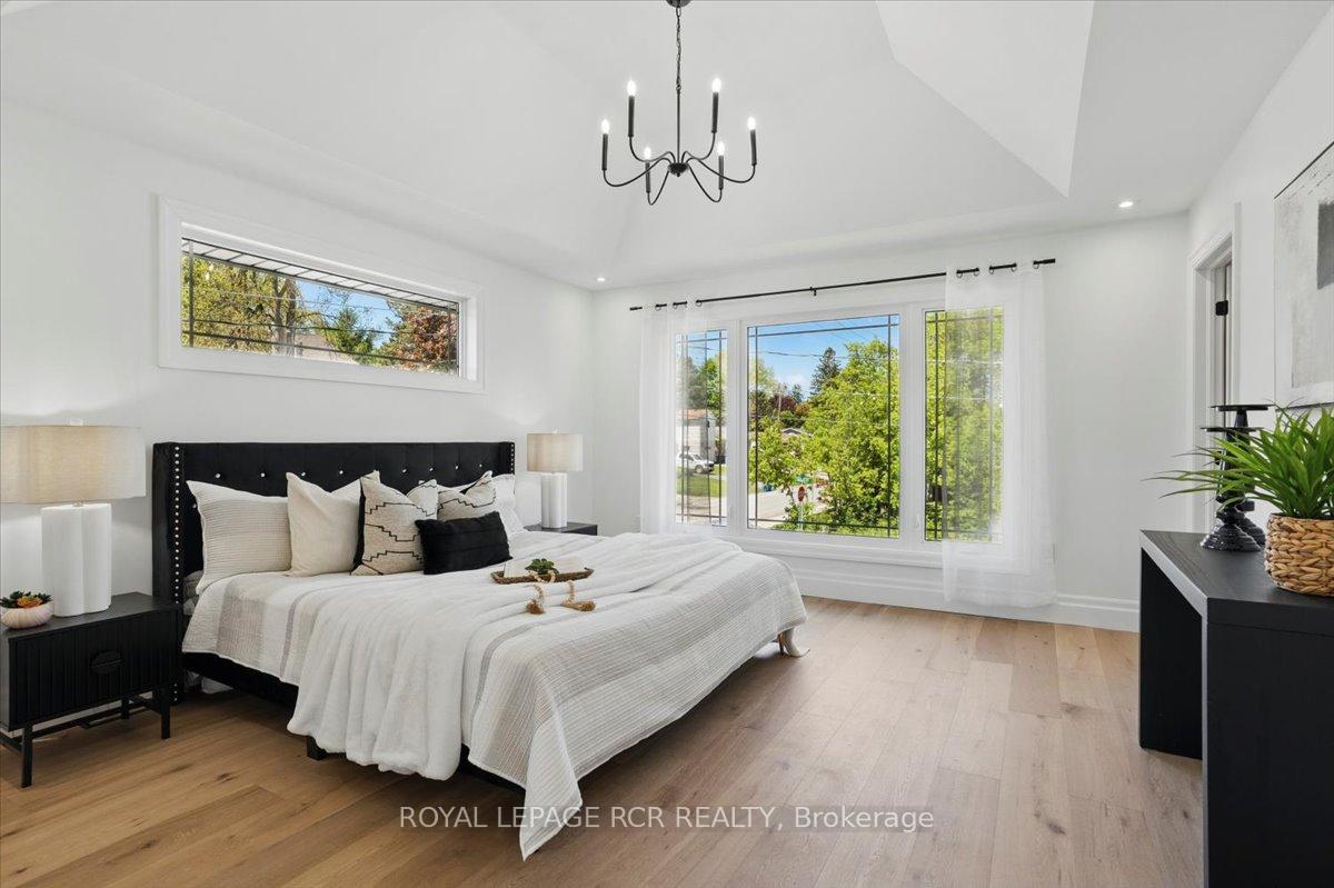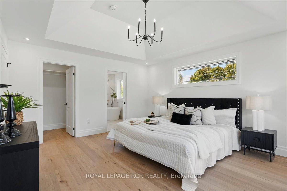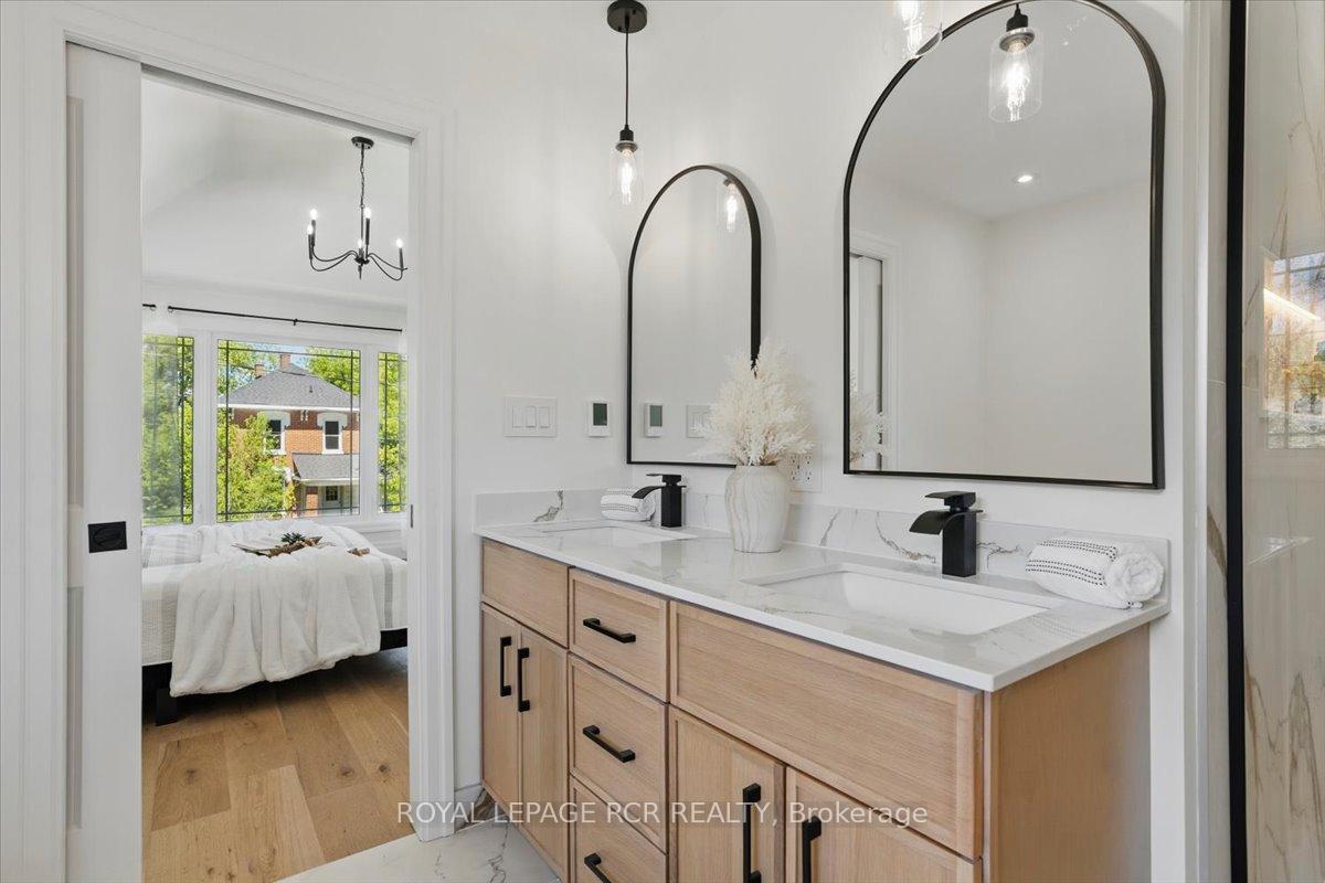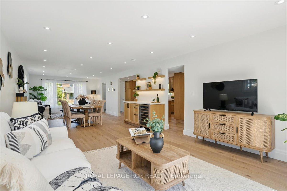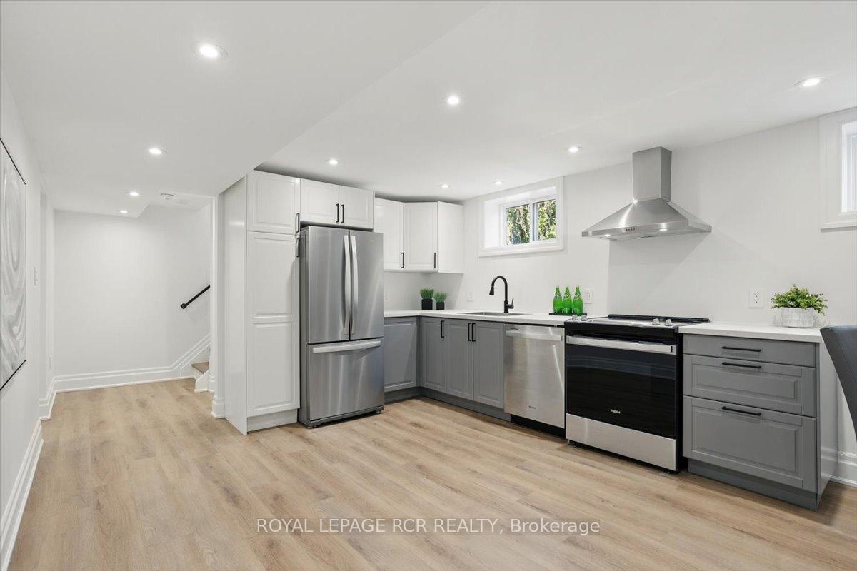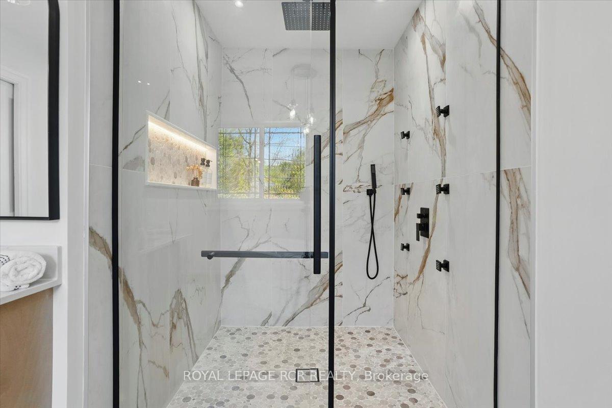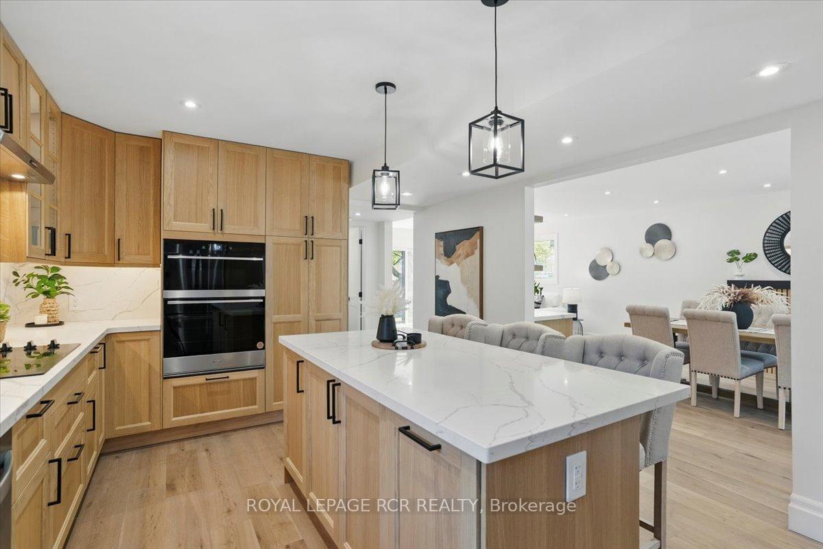Step into luxury with this beautifully renovated home, transformed from top to bottom, leaving nothing to do but move in & enjoy! From the moment you walk through the front door, you’re greeted with a bright & airy atmosphere & gorgeous engineered hardwood flooring that flows seamlessly through the home. At the heart of the home is a custom-designed kitchen, featuring a large centre island w/breakfast bar, elegant pendant lighting, & warm cabinetry w/under-cabinet lighting. The open-concept layout makes entertaining effortless, with a formal sitting area, dining area, & living rm, all bathed in natural light from a stunning picture window. The dining area is an entertainer’s dream, featuring a sleek electric fireplace & a stylish dry bar w/floating wood shelves enhanced by built-in lighting & built-in bar fridge. At the back of the home, the spacious living rm offers indoor-outdoor living w/a patio door leading to the back deck. A main-level bdrm/office & 2-pce powder rm complete this floor. Upstairs, the primary suite is a true retreat, featuring a vaulted ceiling, two walk-in closets, and an elegant 5-pce ensuite. This spa-inspired ensuite includes a double vanity, a soaker tub, heated floor & a stunning walk-in shower with a custom lighted niche, rain shower head, and body jets. Down the hall, you’ll find 2 addit’l bdrms, a 4-pce bathroom, & convenient upper-level laundry. The fully finished lower level is a fantastic bonus, offering a legal apartment w/separate entrance, full-size eat-in kitchen, spacious living rm, a large bdrm w/2 closets & an egress window, & a 4-pce bathroom w/stackable laundry. Whether for extended family, guests, or potential rental income, this space offers incredible flexibility. With parking for 6 vehicles plus a detached 2-car garage, this home is tucked away in a well-established neighbourhood & offers modern living in a timeless setting. Paved driveway (2025), New sod (2025)