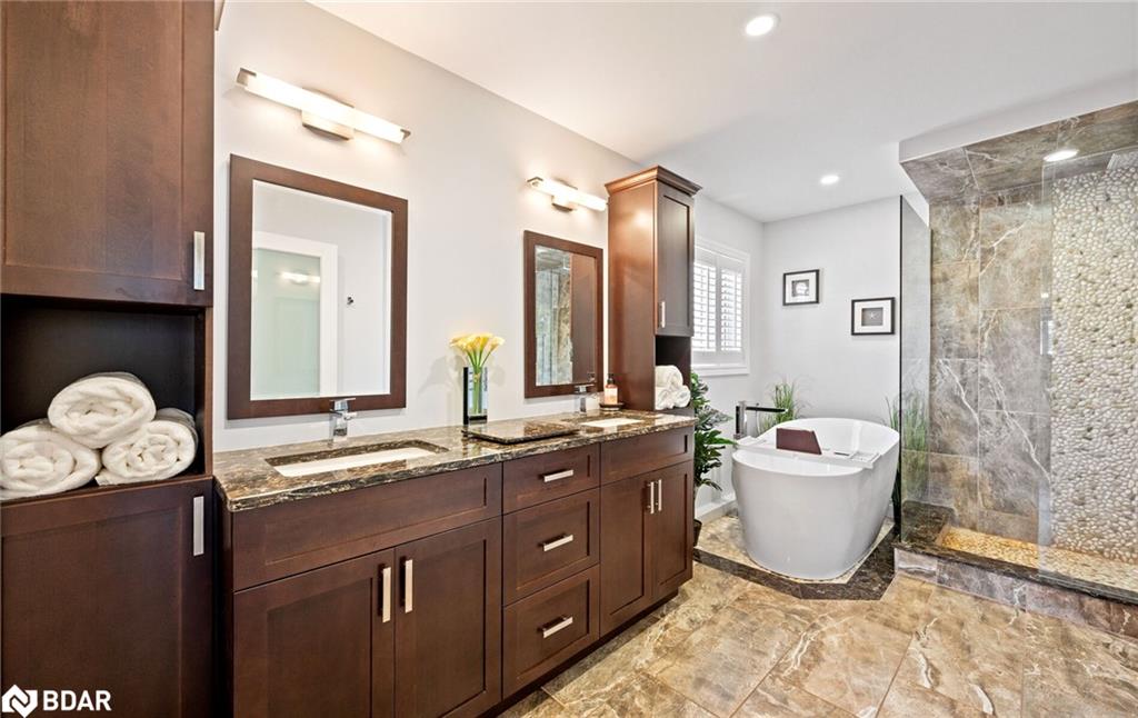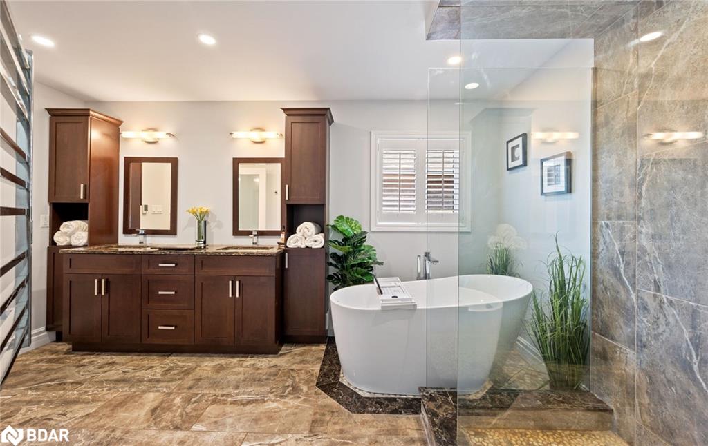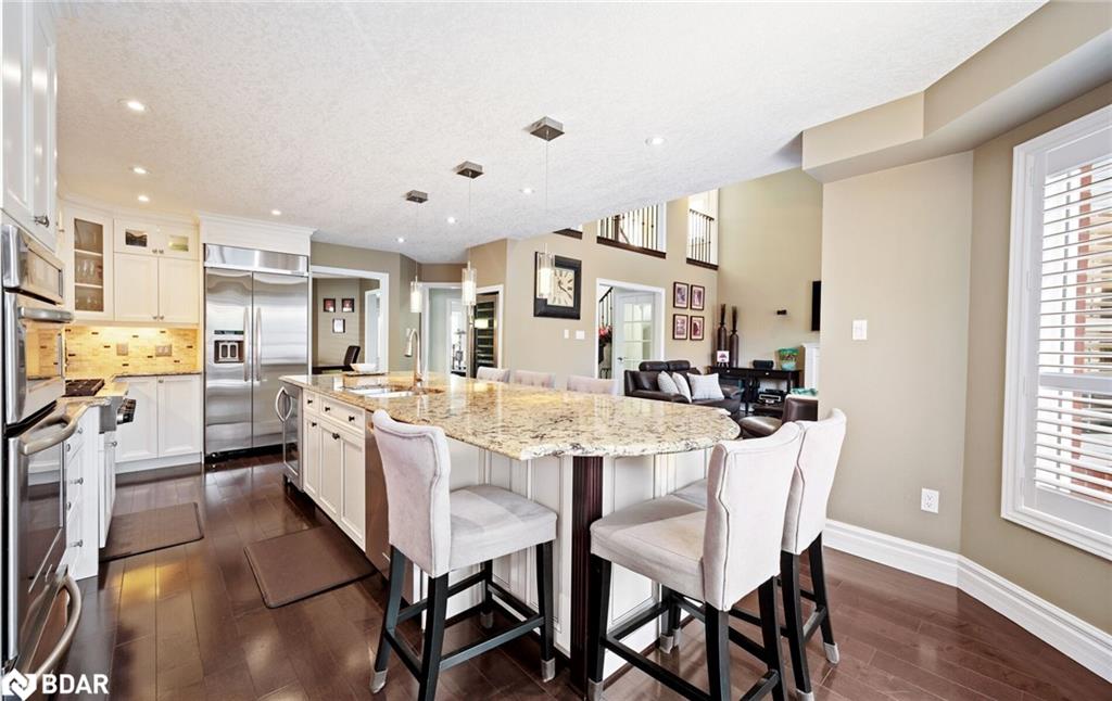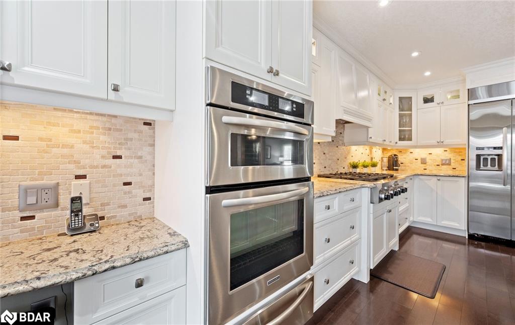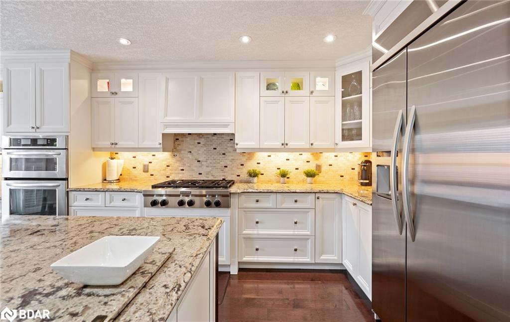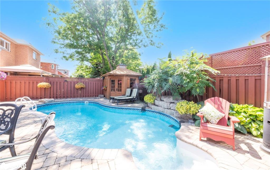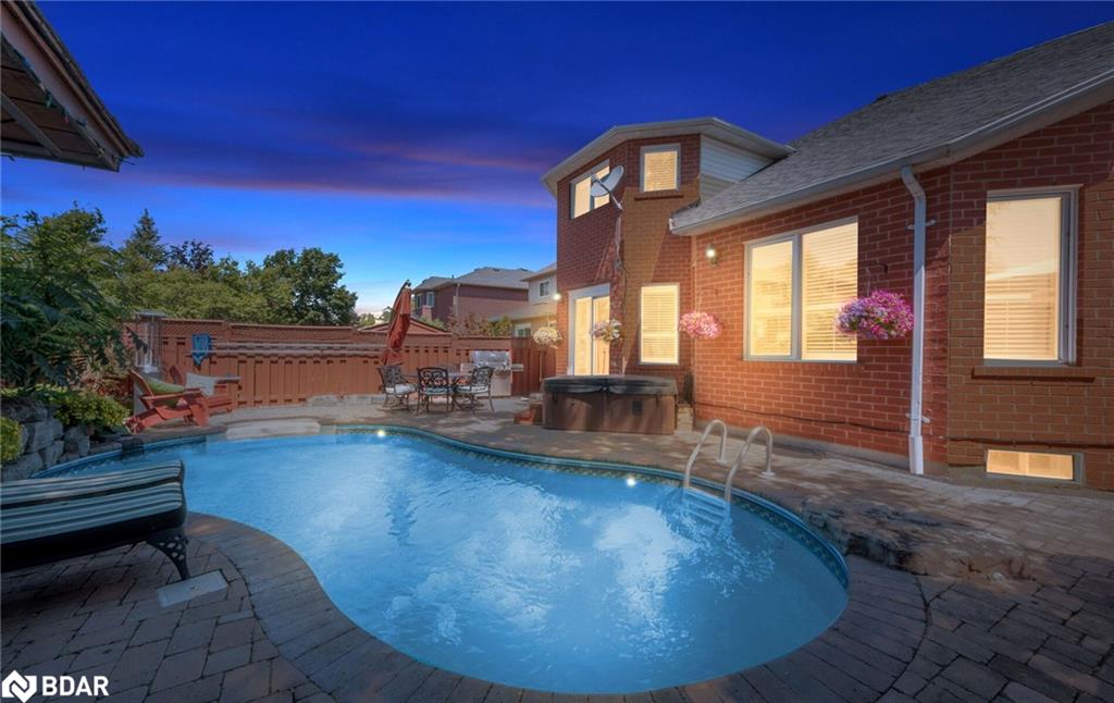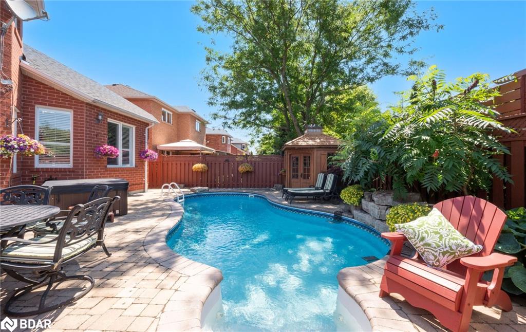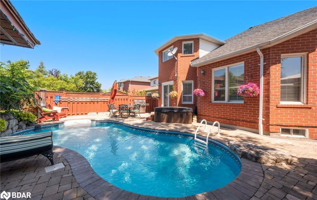 RENOVATED 4-Bedroom Home with Resort-Style Backyard! Welcome to this beautifully renovated 4 bedroom, 4 bath detached home with a 2-car garage designed for both luxurious living and endless entertaining. Inside, the home impresses with hardwood floors throughout (carpet free), a formal living and dining room, and a stunning great room featuring a fireplace, pot lights, and a dramatic vaulted ceiling open to above.The heart of the home is the renovated chefs kitchen, complete with an oversized 11′ 11″ island with storage & electrical plugs, Cambria quartz countertops & stylish backsplash, Custom Cabico cabinetry with soft-close doors & drawers, 6-burner gas cooktop with griddle, Built-in stainless steel appliances including wall oven, microwave/oven combo, warming drawer & large wine fridge, Double-door fridge, built-in dishwasher, walk-in pantry, pot lights, and under-cabinet lighting. Upstairs, the primary suite is a true retreat with two walk-in closets and a fully renovated 5-piece ensuite showcasing a free-standing soaker tub, heated floors, heated towel rack, glass shower, Cambria cabinetry, and a private toilet room. The renovated main bath offers a heated mirror for modern comfort.The finished basement extends your living space with engineered hardwood, a cozy gas fireplace, a huge games/rec room, and a 3-piece bath. Step outside to your own backyard oasis featuring a heated inground saltwater pool surrounded by interlock stone, New hot tub (2024). Pool upgrades:include heater (2024), salt cell (2024), pump (2023), lights (2025)BBQ gas hookup & garden shed. Fully fenced, landscaped yard perfect for gatherings. Additional highlights include: California shutters throughout, an owned water softener, new furnace (2024), hot water tank (2025), and peace of mind with countless recent updates. This move-in ready home combines luxury, function, and lifestyle a rare find!!