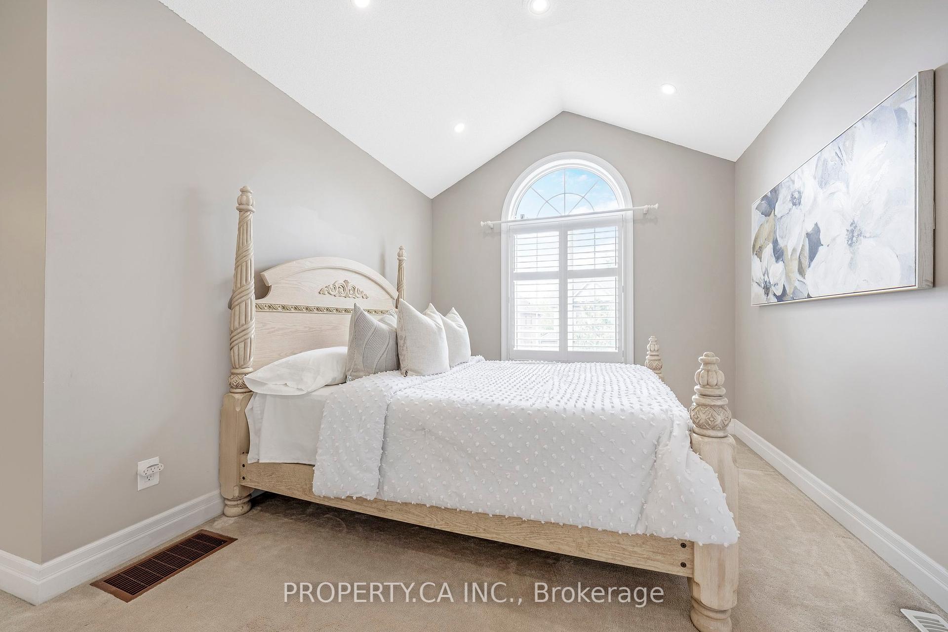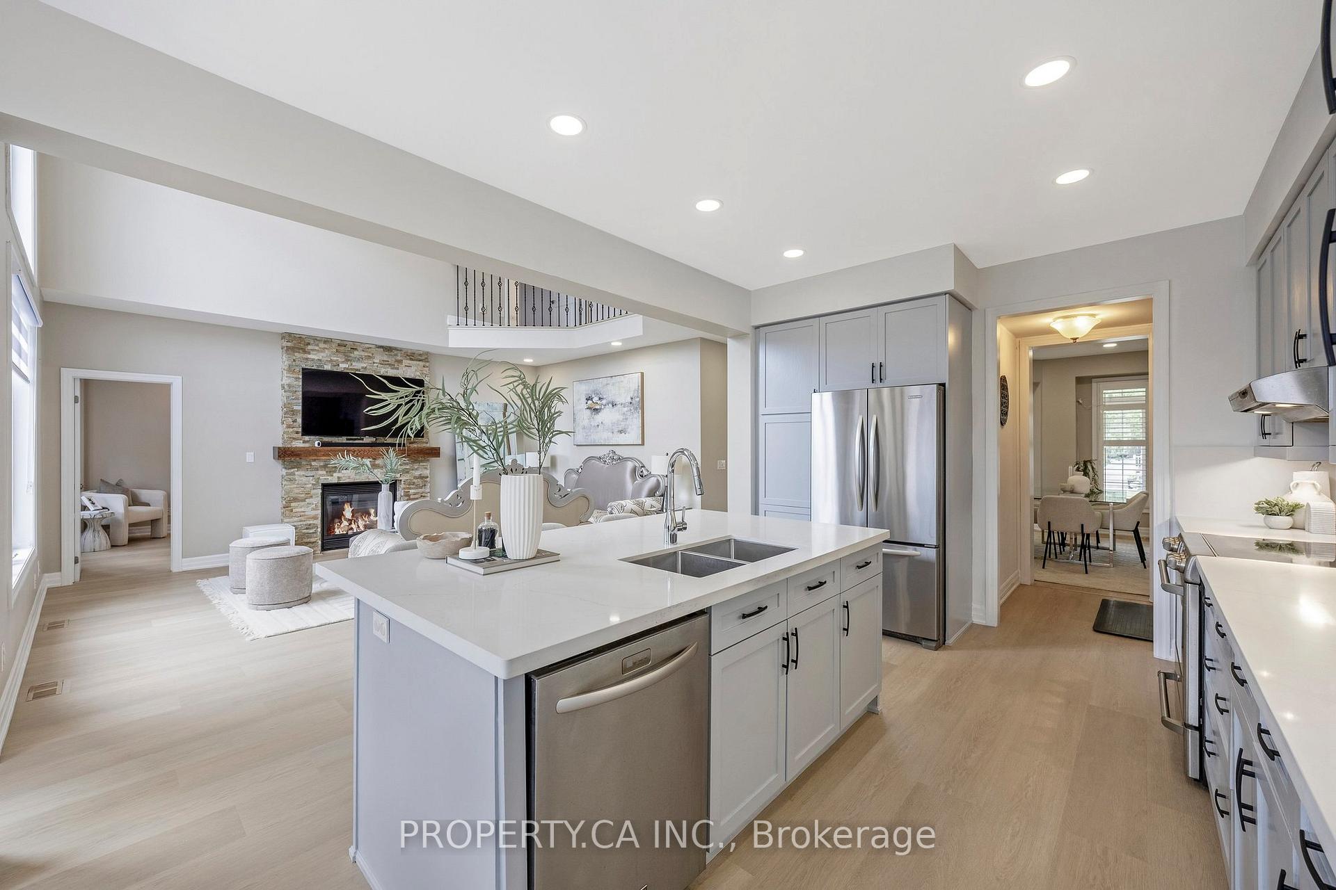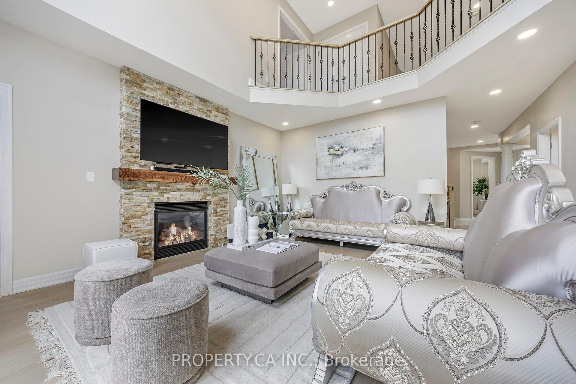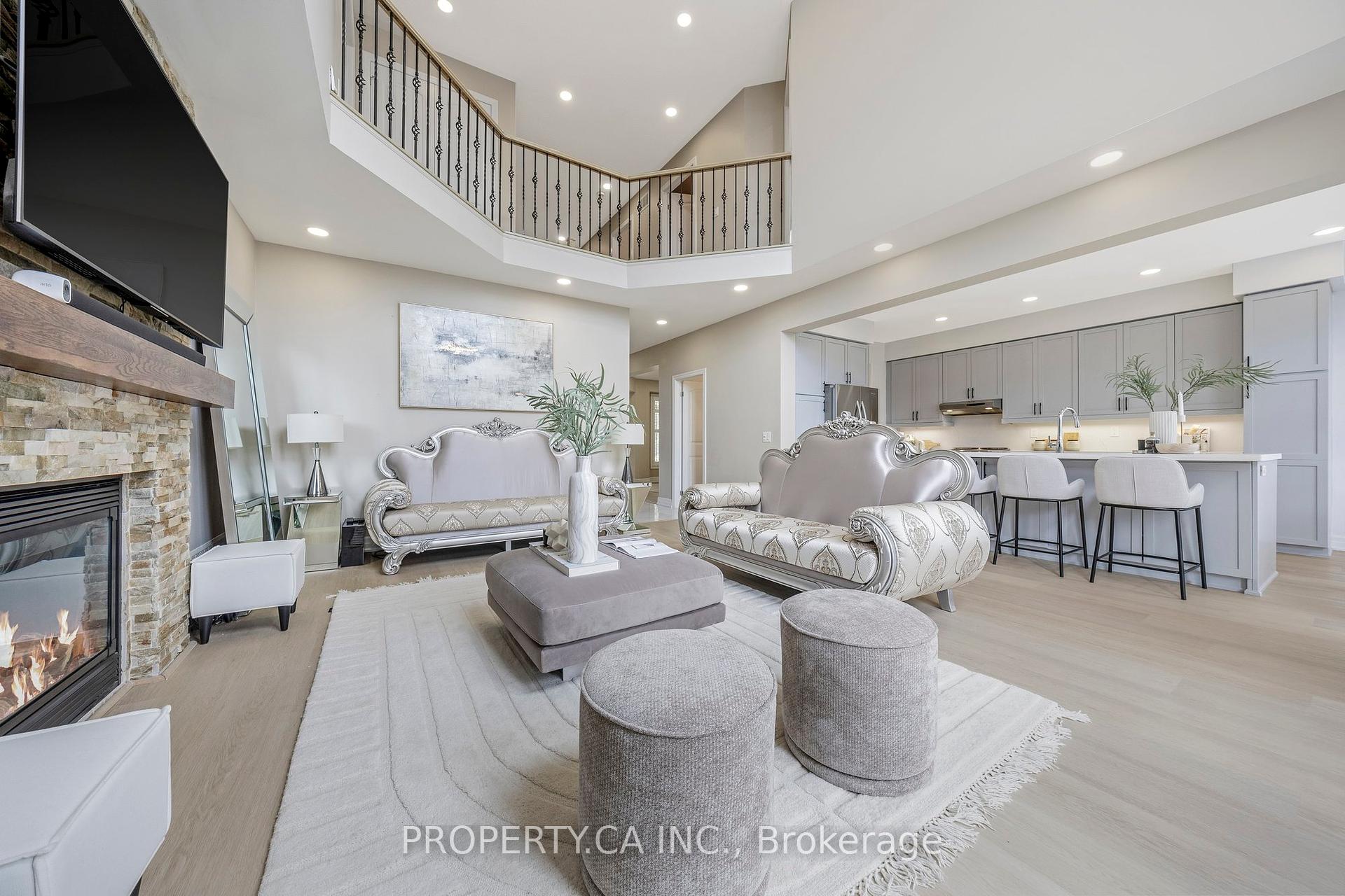 Heathwoods Hatfield Model is a rare offering in Miltons prestigious Scott neighbourhood Traditions community. Set on a wide 49-ft lot with a brick and stone façade, this home offers over 4,200 sq. ft. of finished living space across three levels, blending architectural elegance with modern finishes. With 6 bedrooms 4 upstairs, 1 on the main, 1 in the basement this residence accommodates families in style. The main level features a formal living room/parlour, an elegant dining room with a servery, and a chefs kitchen with quartz counters, backsplash, and a large island with a breakfast bar. A secondary dining area with vaulted coffered ceilings opens to a private deck. The 18-ft family room impresses with a stone fireplace and expansive windows. A versatile main floor bedroom is ideal as an office, guest room, or playroom. Upstairs, four bedrooms each connect to a bathroom, including a Jack & Jill. The primary suite (13 x 20) showcases tray ceilings, walk-in closet, balcony, and a luxurious ensuite. An upper-level laundry adds convenience. The finished walkout basement serves as a nanny or in-law suite, with its own kitchen, living area, bedroom, bathroom, laundry, and private porch. Additional highlights: modern flooring throughout, curved staircase with sleek spindles, two laundry rooms, 5-car parking (double garage + driveway), interior/exterior pot lights, covered porch, and patterned concrete landscaping. There are NO rental items on the property. Ideally located in Miltons Scott neighbourhood, steps from scenic Niagara Escarpment views, trails, parks, cafés, downtown Milton, Sherwood Community Centre, and top-rated schools.