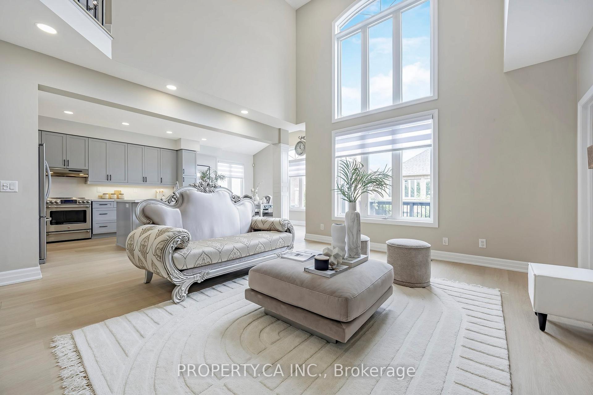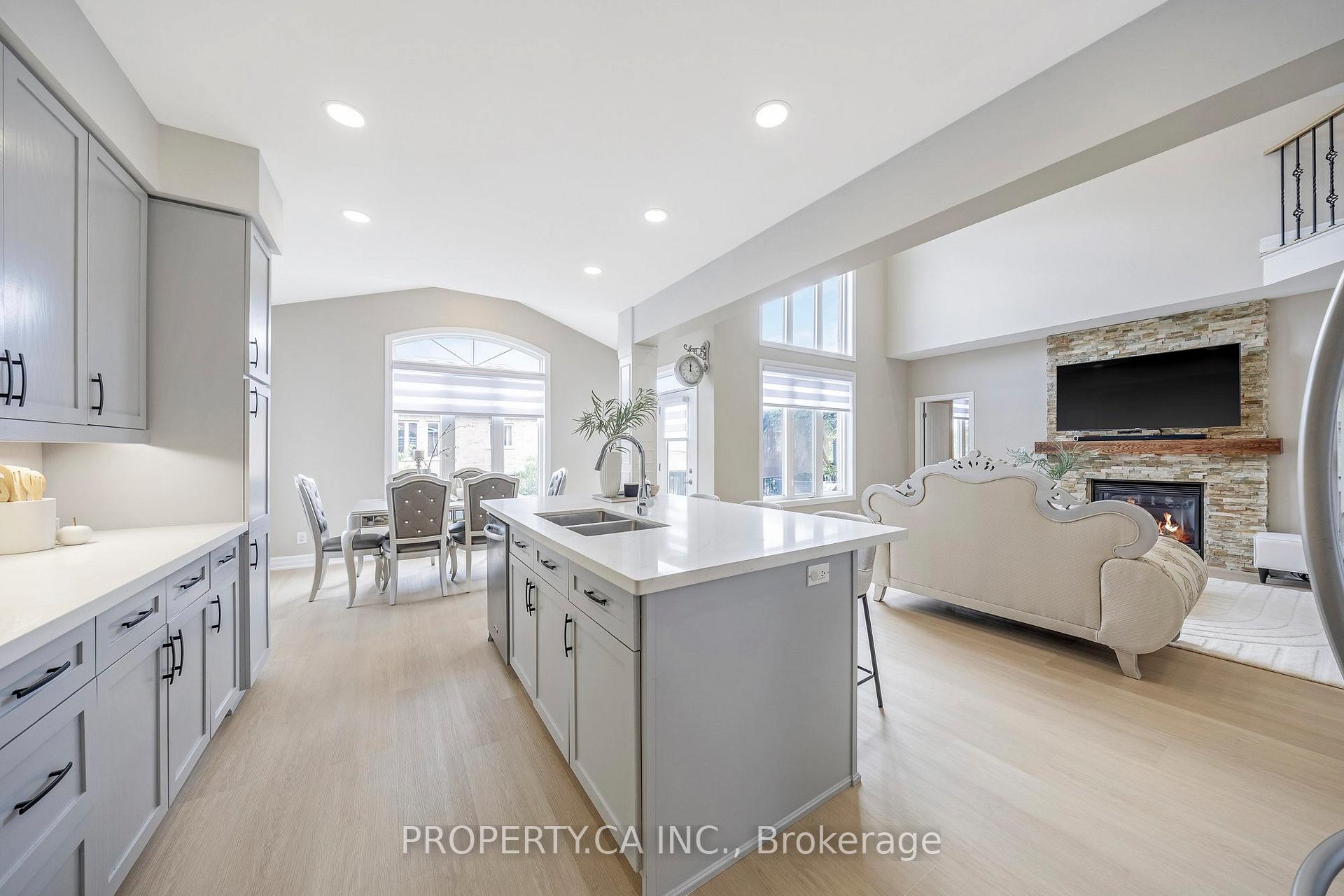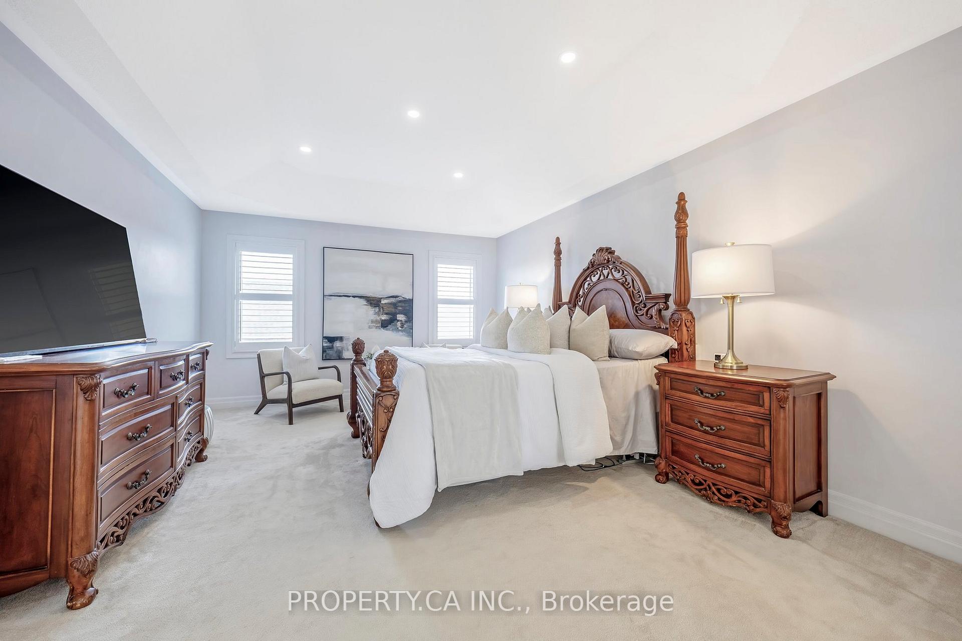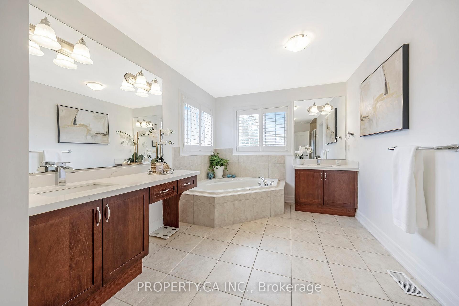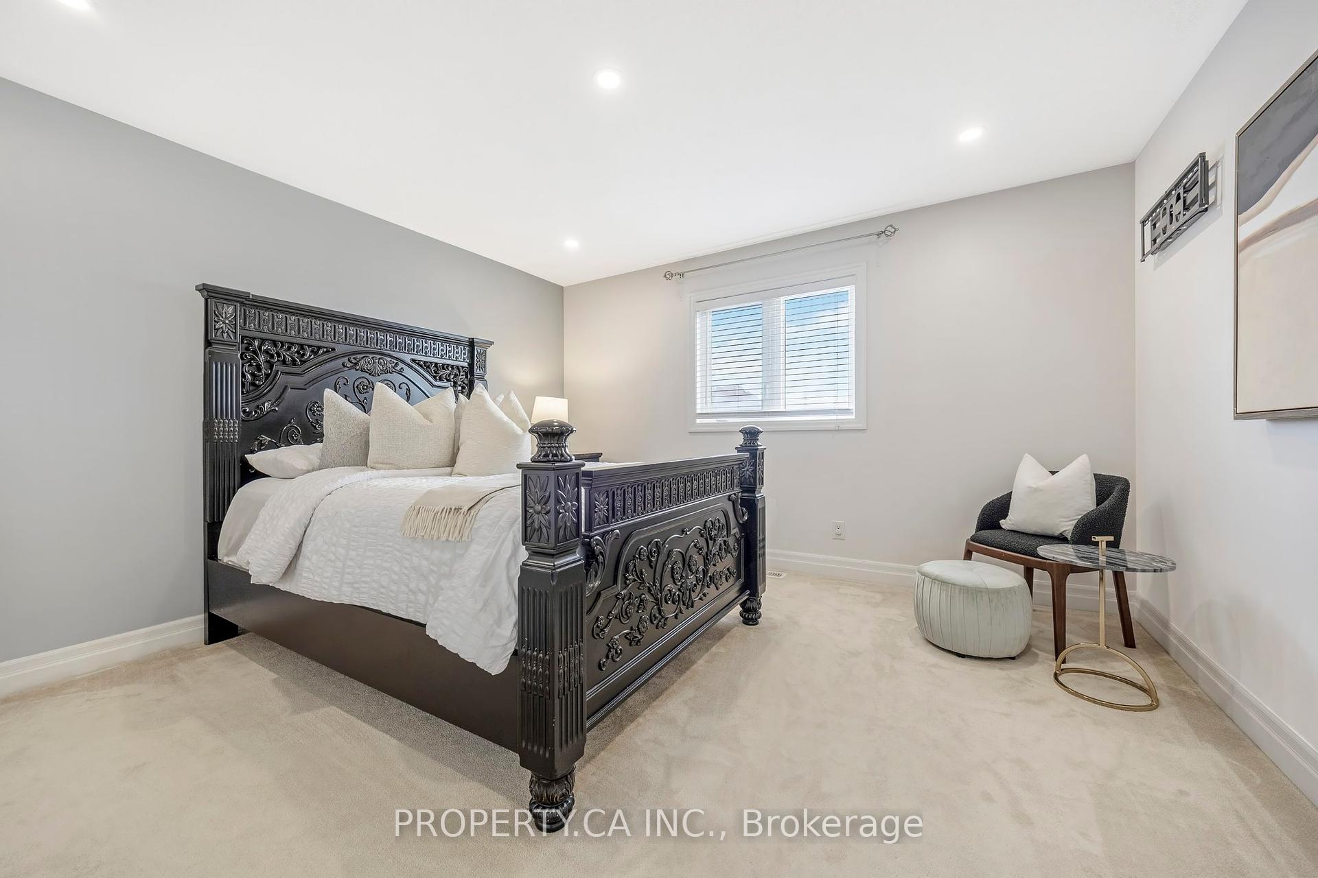 Heathwoods Hatfield Model is a rare offering in Miltons prestigious Scott neighbourhood Traditions community. Set on a wide 49-ft lot with a brick and stone façade, this home offers over 4,200 sq. ft. of finished living space across three levels, blending architectural elegance with modern finishes. With 6 bedrooms 4 upstairs, 1 on the main, 1 in the basement this residence accommodates families in style. The main level features a formal living room/parlour, an elegant dining room with a servery, and a chefs kitchen with quartz counters, backsplash, and a large island with a breakfast bar. A secondary dining area with vaulted coffered ceilings opens to a private deck. The 18-ft family room impresses with a stone fireplace and expansive windows. A versatile main floor bedroom is ideal as an office, guest room, or playroom. Upstairs, four bedrooms each connect to a bathroom, including a Jack & Jill. The primary suite (13 x 20) showcases tray ceilings, walk-in closet, balcony, and a luxurious ensuite. An upper-level laundry adds convenience. The finished walkout basement serves as a nanny or in-law suite, with its own kitchen, living area, bedroom, bathroom, laundry, and private porch. Additional highlights: modern flooring throughout, curved staircase with sleek spindles, two laundry rooms, 5-car parking (double garage + driveway), interior/exterior pot lights, covered porch, and patterned concrete landscaping. There are NO rental items on the property. Ideally located in Miltons Scott neighbourhood, steps from scenic Niagara Escarpment views, trails, parks, cafés, downtown Milton, Sherwood Community Centre, and top-rated schools.