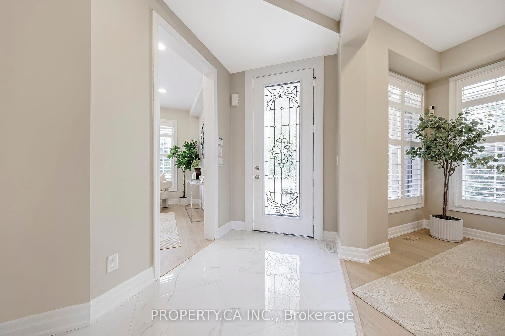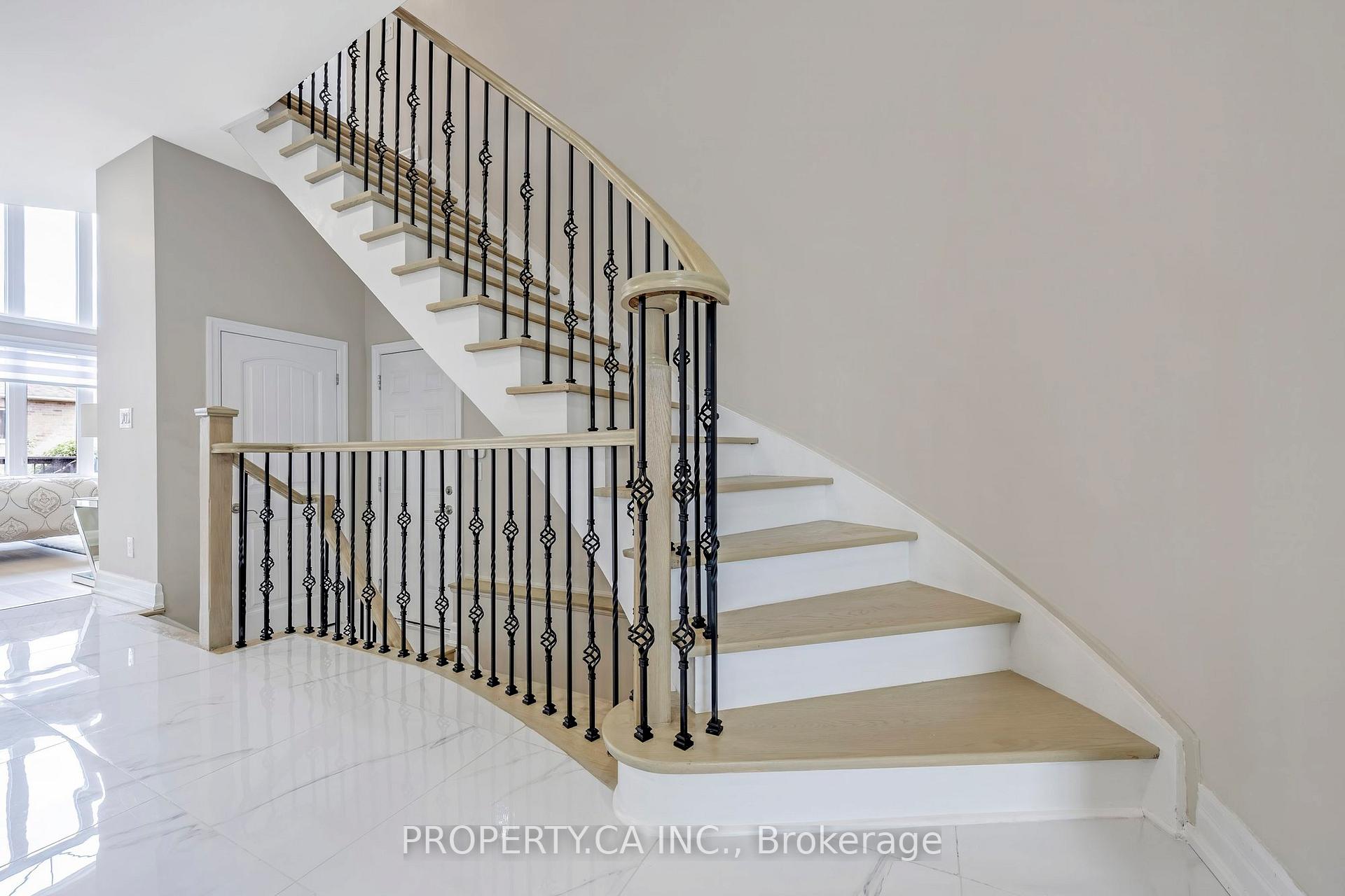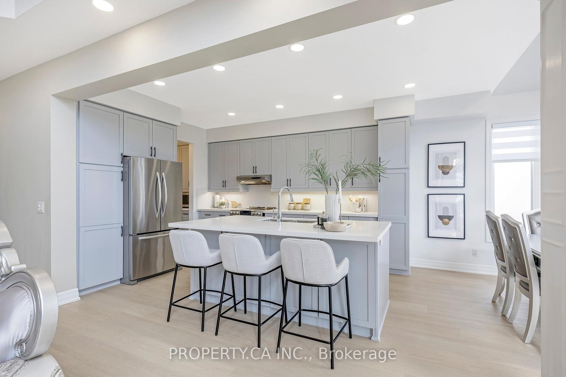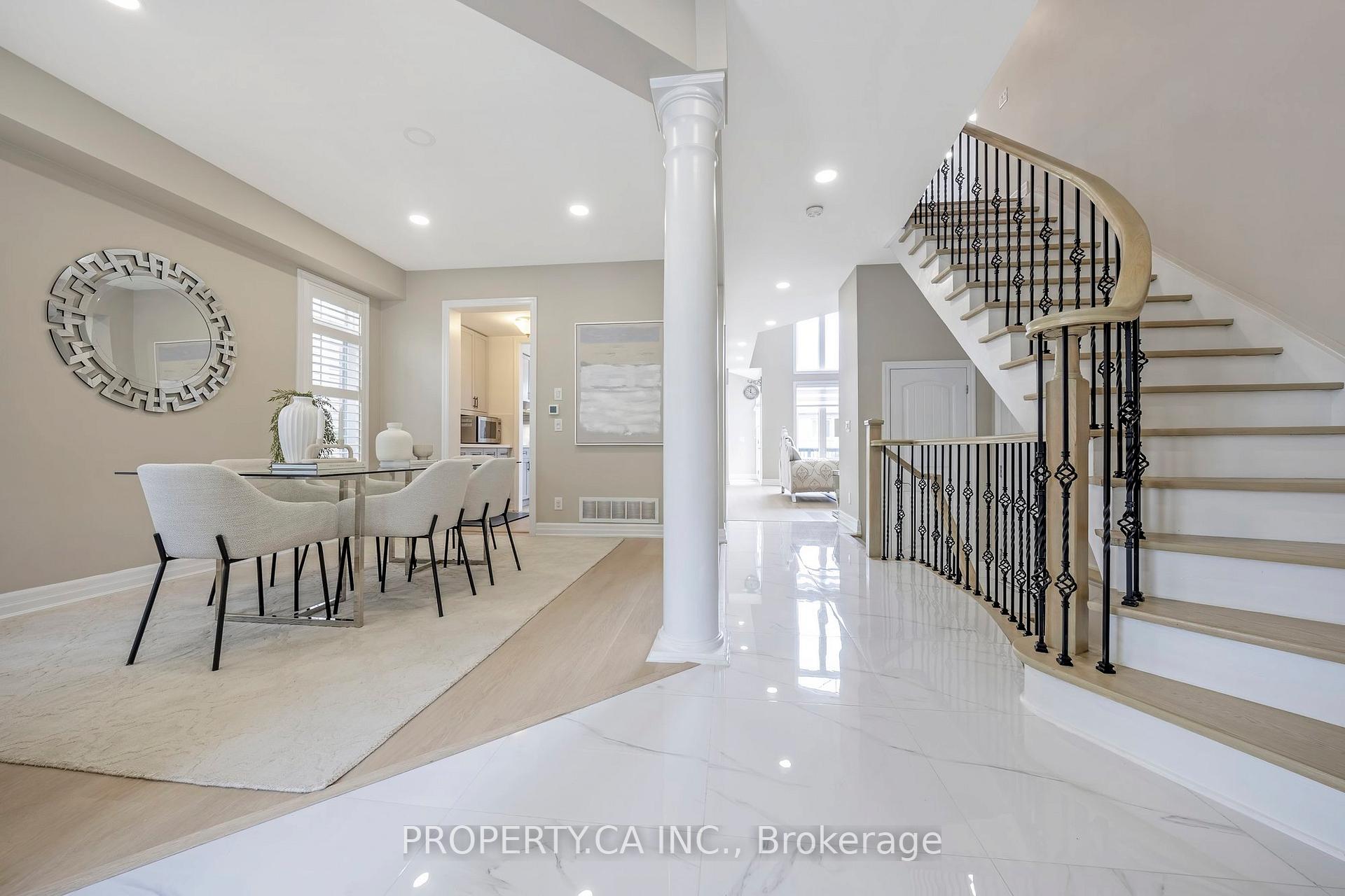 Heathwoods Hatfield Model is a rare offering in Miltons prestigious Scott neighbourhood Traditions community. Set on a wide 49-ft lot with a brick and stone façade, this home offers over 4,200 sq. ft. of finished living space across three levels, blending architectural elegance with modern finishes. With 6 bedrooms 4 upstairs, 1 on the main, 1 in the basement this residence accommodates families in style. The main level features a formal living room/parlour, an elegant dining room with a servery, and a chefs kitchen with quartz counters, backsplash, and a large island with a breakfast bar. A secondary dining area with vaulted coffered ceilings opens to a private deck. The 18-ft family room impresses with a stone fireplace and expansive windows. A versatile main floor bedroom is ideal as an office, guest room, or playroom. Upstairs, four bedrooms each connect to a bathroom, including a Jack & Jill. The primary suite (13 x 20) showcases tray ceilings, walk-in closet, balcony, and a luxurious ensuite. An upper-level laundry adds convenience. The finished walkout basement serves as a nanny or in-law suite, with its own kitchen, living area, bedroom, bathroom, laundry, and private porch. Additional highlights: modern flooring throughout, curved staircase with sleek spindles, two laundry rooms, 5-car parking (double garage + driveway), interior/exterior pot lights, covered porch, and patterned concrete landscaping. There are NO rental items on the property. Ideally located in Miltons Scott neighbourhood, steps from scenic Niagara Escarpment views, trails, parks, cafés, downtown Milton, Sherwood Community Centre, and top-rated schools.