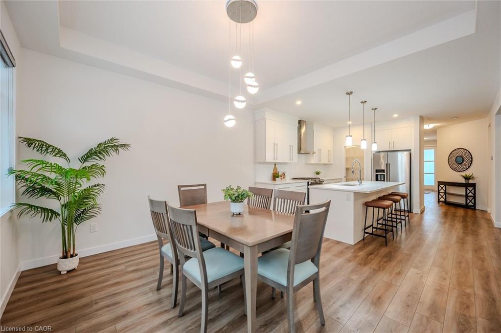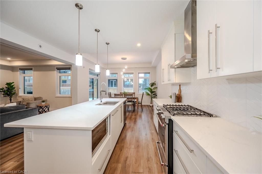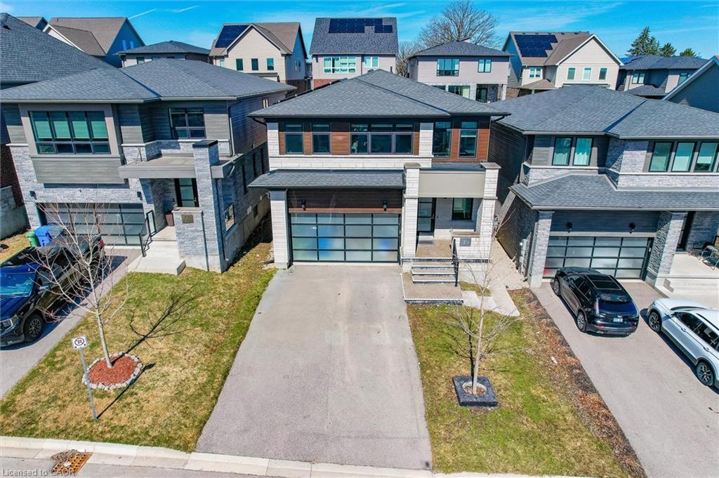 Welcome to 49 Ryder Avenue, a luxurious Net Zero Terra View home in Guelphs prestigious Hart Village where sustainability meets comfort and style! Designed with energy efficiency at its core, this home is equipped with rooftop solar panels that generate clean power and help lower monthly utility costs. The open-concept main floor is bright and modern, with pot lights throughout and a chefs kitchen featuring stainless steel appliances, a gas stove, large island, and walk-in pantry. The dining area opens to a fully fenced backyard with a covered deck and concrete patio – perfect for BBQs or morning coffee, while the cozy living room with an electric fireplace offers the ideal place to unwind. Upstairs, you’ll find a sun-filled family room, three generously sized bedrooms, and a convenient second-floor laundry. The primary suite includes a walk-in closet and a spa-inspired ensuite with a soaker tub and double vanity. Custom built-ins throughout the home maximize storage and functionality. The fully finished basement is a standout feature: a legal 1-bedroom accessory apartment with its own private entrance, full kitchen with island, stainless steel appliances, bright windows, 3-piece bath, and in-suite laundry. This space is ideal for extended family, guests, or generating rental income – and can offset your mortgage by an estimated $250,000-$300,000, making this luxury home more attainable than you might think! Additional highlights include a sprinkler system for effortless lawn care, no sidewalk (extra parking and easier snow removal), driveway parking for up to six vehicles, and energy-efficient construction for year-round comfort. Located close to parks, top-rated schools, scenic trails, everyday amenities, and the University of Guelph. With quick access to Highway 6 this home offers thoughtful design, future-ready living, and a lifestyle that balances luxury with practicality.