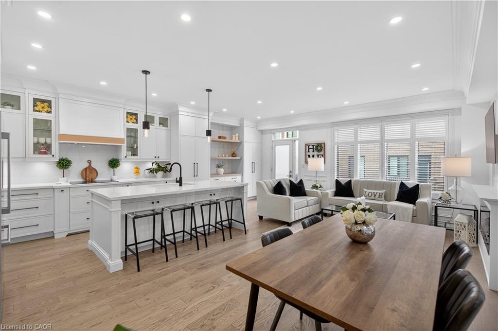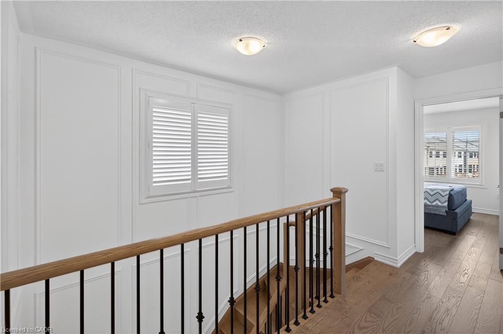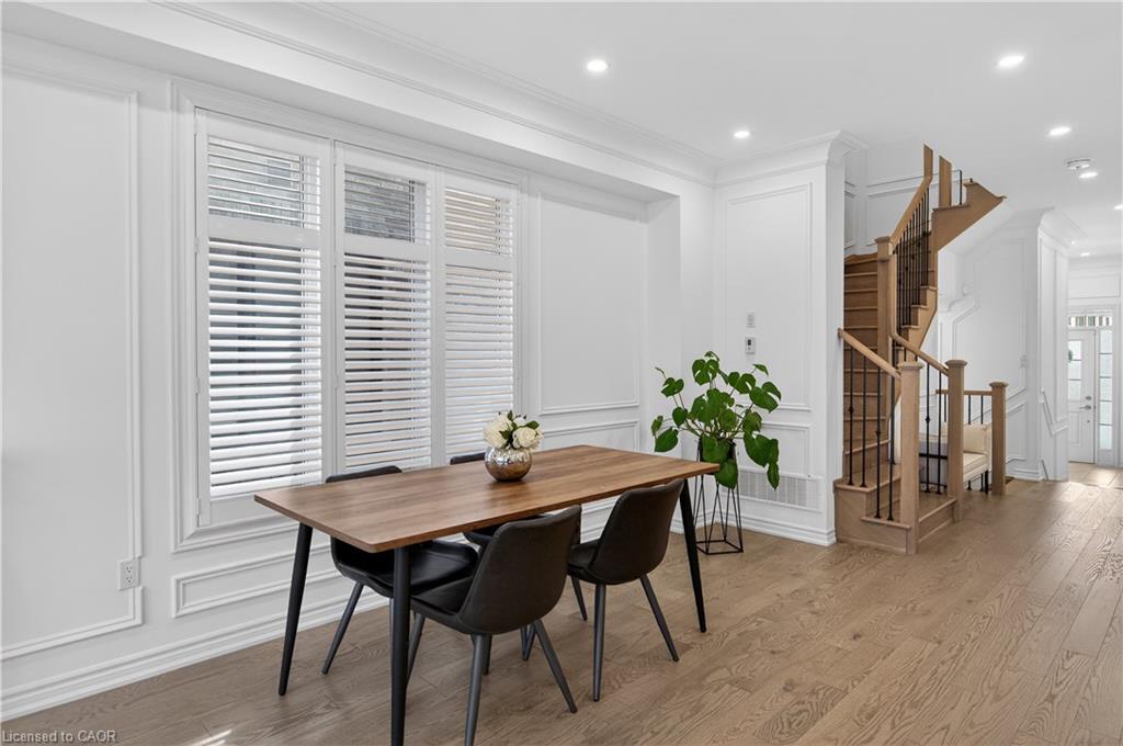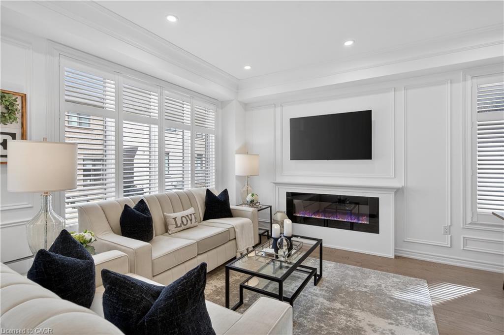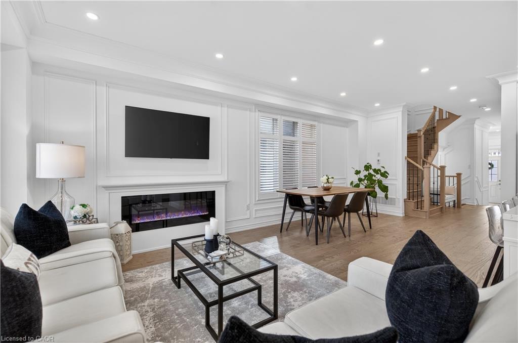 Welcome to this gorgeous, one-of-a-kind 4-bedroom end-unit townhome, ideally located on a quiet street in the highly sought-after South West Walkers community. Thoughtfully designed and meticulously maintained, this home showcases upscale finishes and a functional, modern layout perfect for families and entertainers alike. Main Level Open-concept layout with smooth ceilings, elegant crown moulding, and custom wainscoting, Upgraded engineered hardwood flooring and California shutters throughout , Pot lights and an electric fireplace add a ambiance to the spacious living area, Renovated Chef inspired kitchen featuring a full wall of sleek cabinetry with glass inserts, Large pantry and quartz countertops, Generous island with breakfast bar, Under-cabinet lighting, stylish backsplash, and built-in stainless steel appliances, elegant oak staircase with iron pickets leads to upper level, Four generously sized bedrooms including a Luxurious primary retreat complete with walk-in closet and spa-like ensuite, featuring a glass shower, soaker tub, and double sinks, upper level laundry, main bath has double sinks, Located minutes from top-rated schools, Walker Park, scenic trails, Hwy 401 & 407, Milton Sports Centre, Sherwood Community Centre, Milton District Hospital, Rattlesnake Point Golf Club, and so much more. Don’t miss your chance to own this exceptional home in a vibrant, family-friendly neighbourhood!