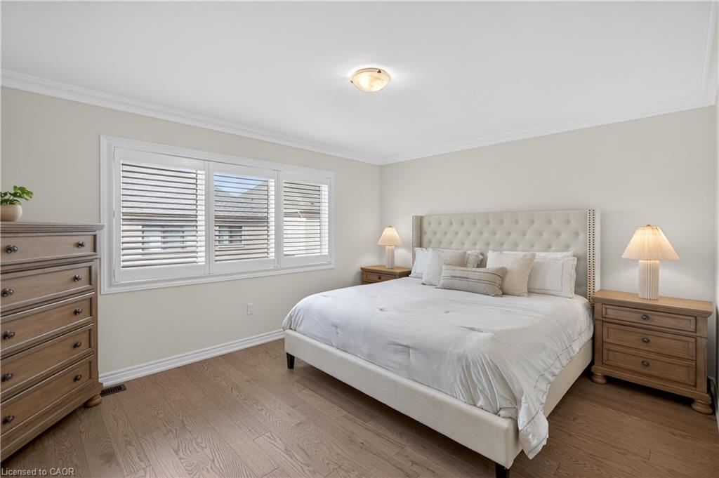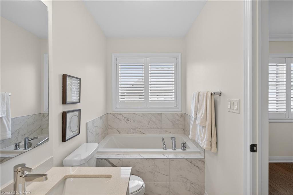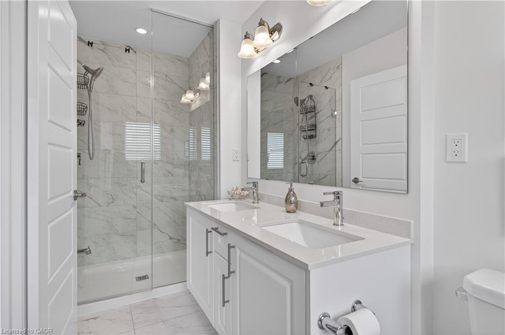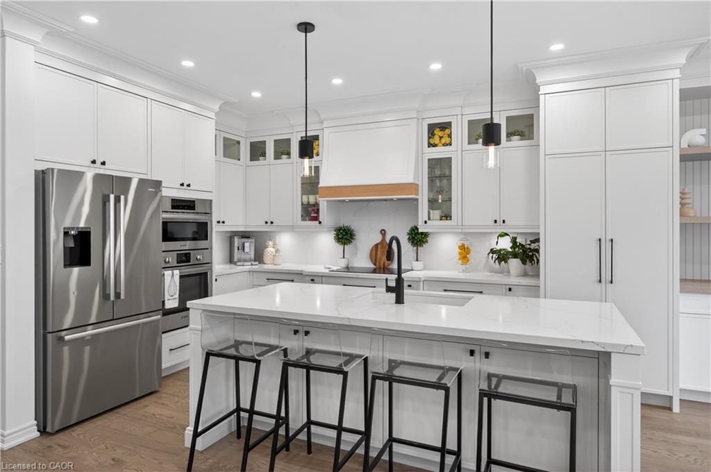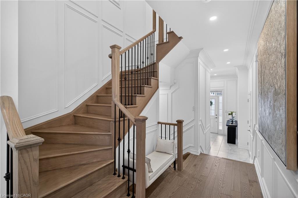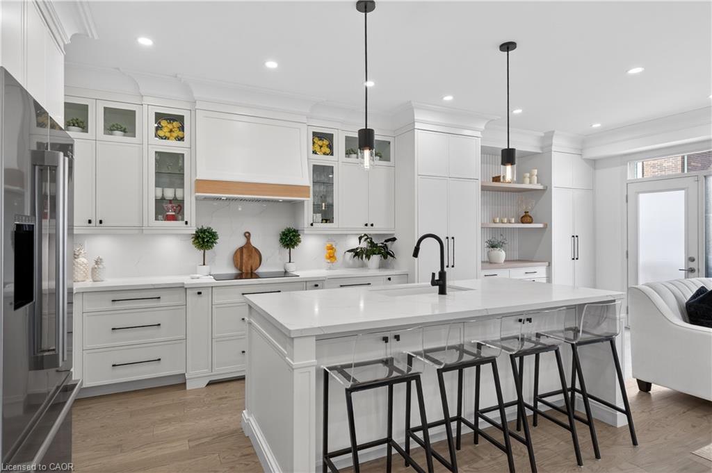 Welcome to this gorgeous, one-of-a-kind 4-bedroom end-unit townhome, ideally located on a quiet street in the highly sought-after South West Walkers community. Thoughtfully designed and meticulously maintained, this home showcases upscale finishes and a functional, modern layout perfect for families and entertainers alike. Main Level Open-concept layout with smooth ceilings, elegant crown moulding, and custom wainscoting, Upgraded engineered hardwood flooring and California shutters throughout , Pot lights and an electric fireplace add a ambiance to the spacious living area, Renovated Chef inspired kitchen featuring a full wall of sleek cabinetry with glass inserts, Large pantry and quartz countertops, Generous island with breakfast bar, Under-cabinet lighting, stylish backsplash, and built-in stainless steel appliances, elegant oak staircase with iron pickets leads to upper level, Four generously sized bedrooms including a Luxurious primary retreat complete with walk-in closet and spa-like ensuite, featuring a glass shower, soaker tub, and double sinks, upper level laundry, main bath has double sinks, Located minutes from top-rated schools, Walker Park, scenic trails, Hwy 401 & 407, Milton Sports Centre, Sherwood Community Centre, Milton District Hospital, Rattlesnake Point Golf Club, and so much more. Don’t miss your chance to own this exceptional home in a vibrant, family-friendly neighbourhood!