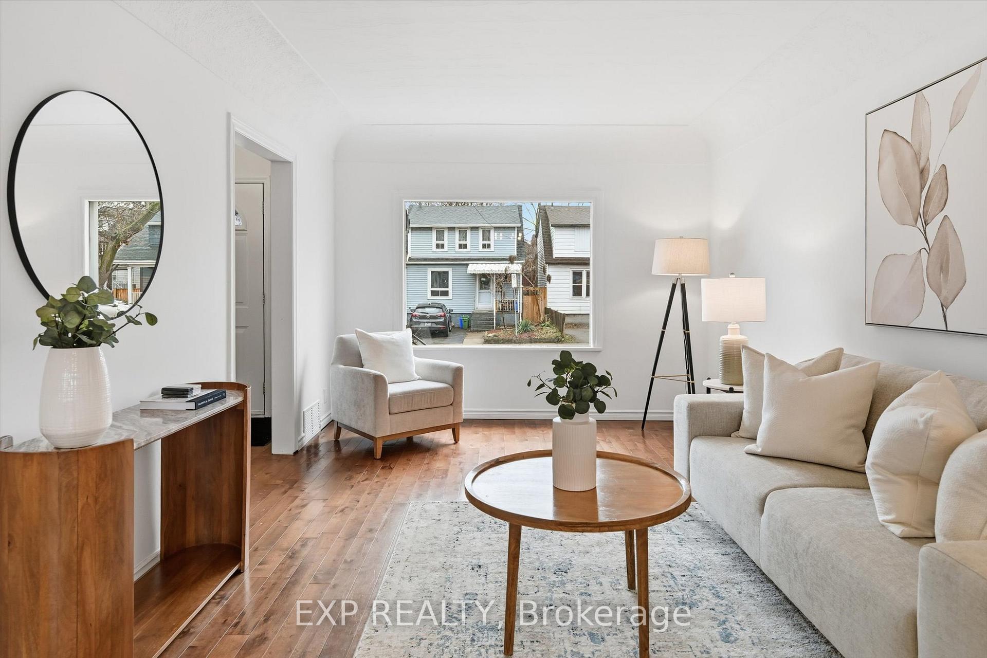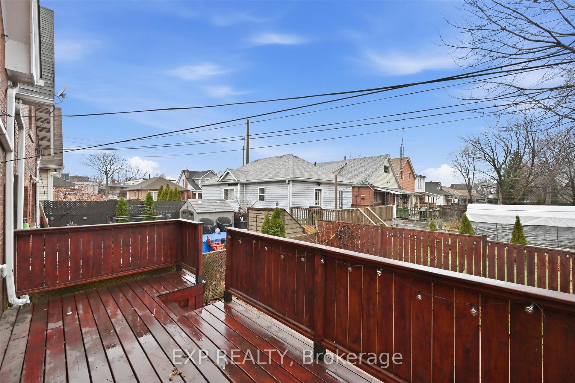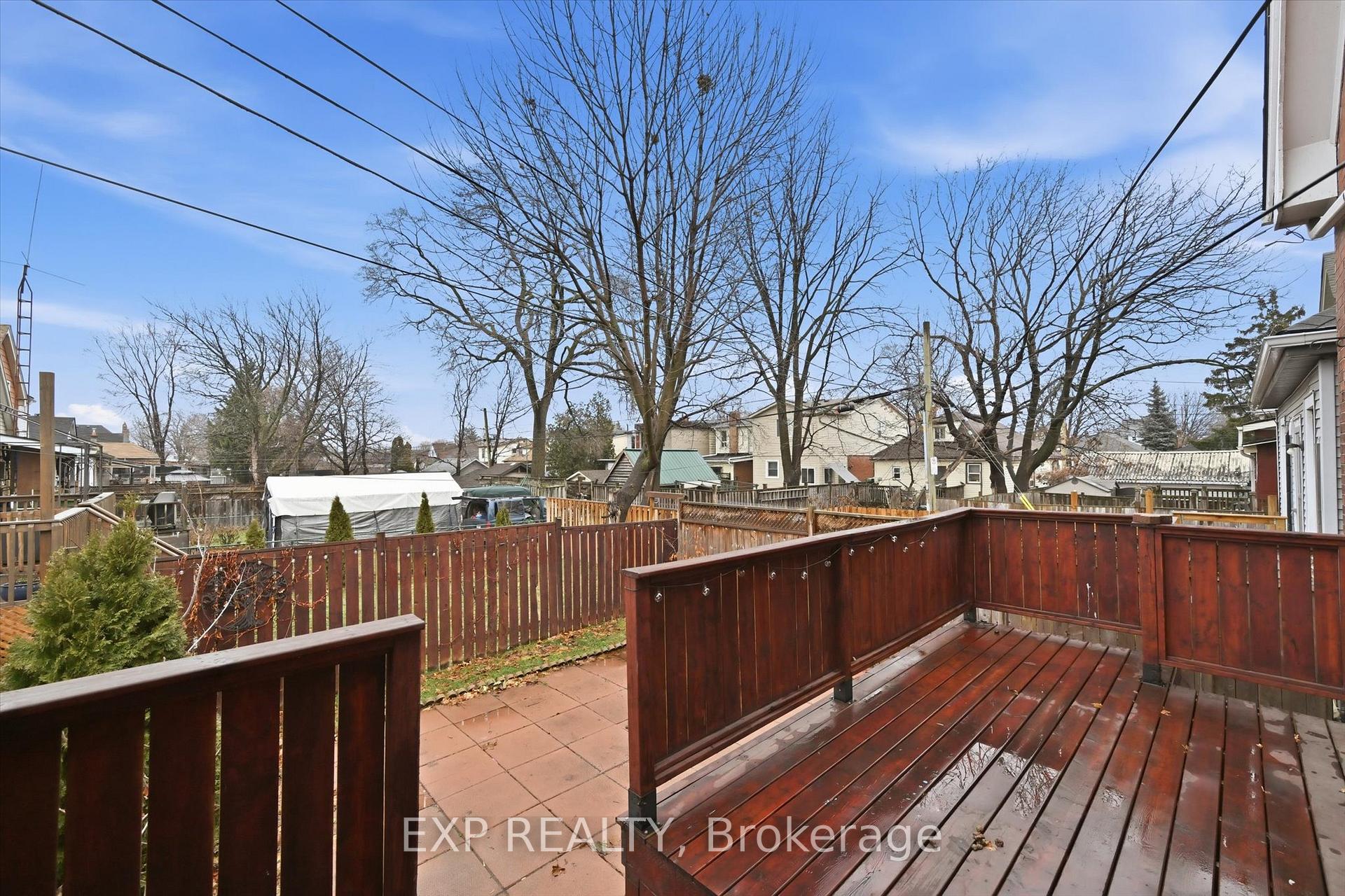 Welcome to this charming all-brick century home in the desirable Crown Point neighbourhood of Hamilton. Offering approximately 1,700 sq. ft. of finished living space, this 3-bedroom, 2-bathroom home seamlessly blends classic character with modern updates.A functional foyer welcomes you into bright living and dining rooms featuring hardwood floors, perfect for everyday living and entertaining. The kitchen boasts white cabinetry, stone countertops, and stainless steel appliances, providing both style and functionality.The primary bedroom is a standout with vaulted ceilings and hardwood flooring, while two additional well-sized bedrooms offer versatility for family, guests, or a home office. The finished basement expands your living space and includes a full 3-piece bathroom, ideal for recreation or extended living needs.Step outside to a newly built deck with built-in storage, perfect for outdoor entertaining and summer enjoyment. Located close to everything Ottawa st has to offer, transit, and local amenities, this Crown Point home delivers timeless appeal, comfort, and convenience.