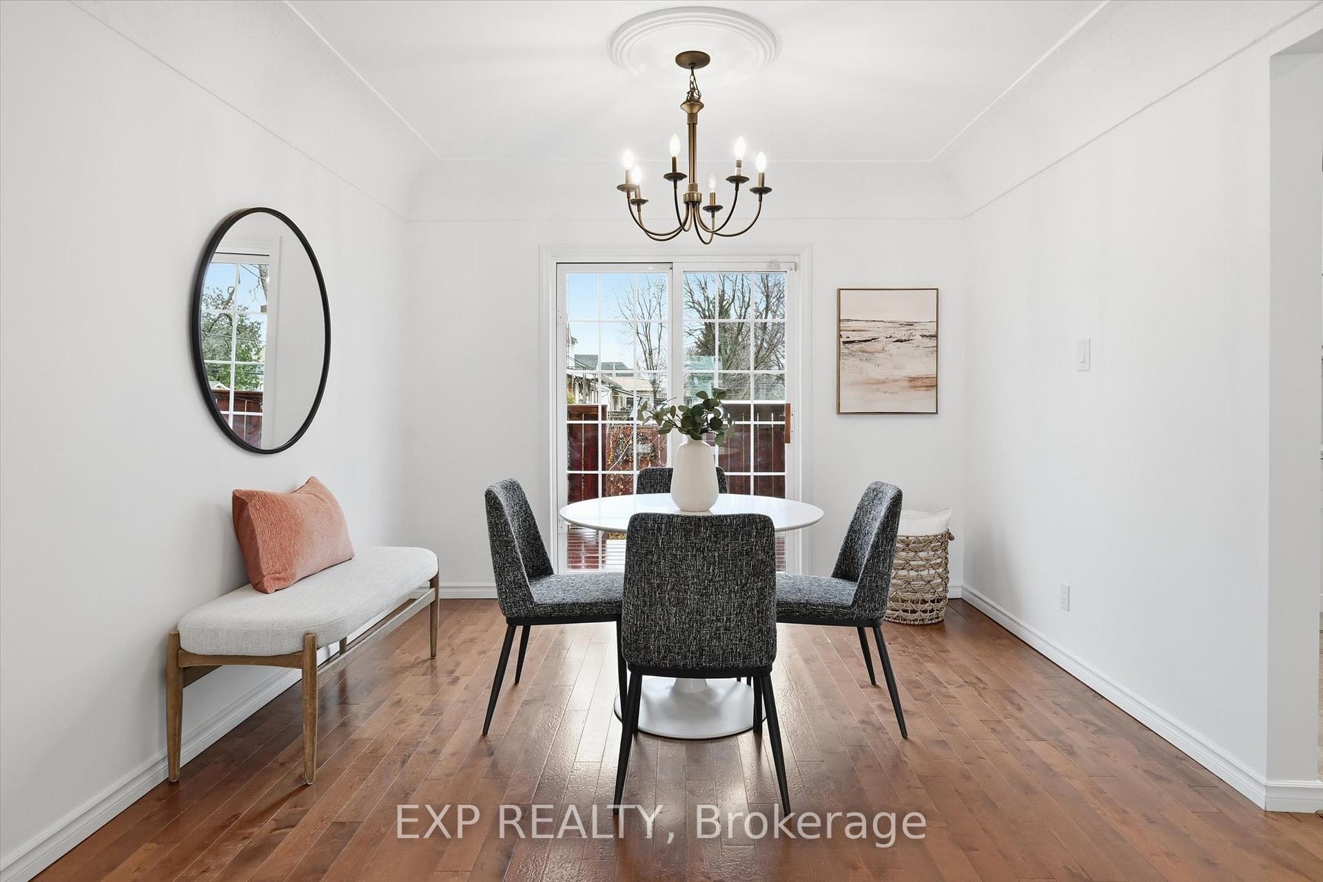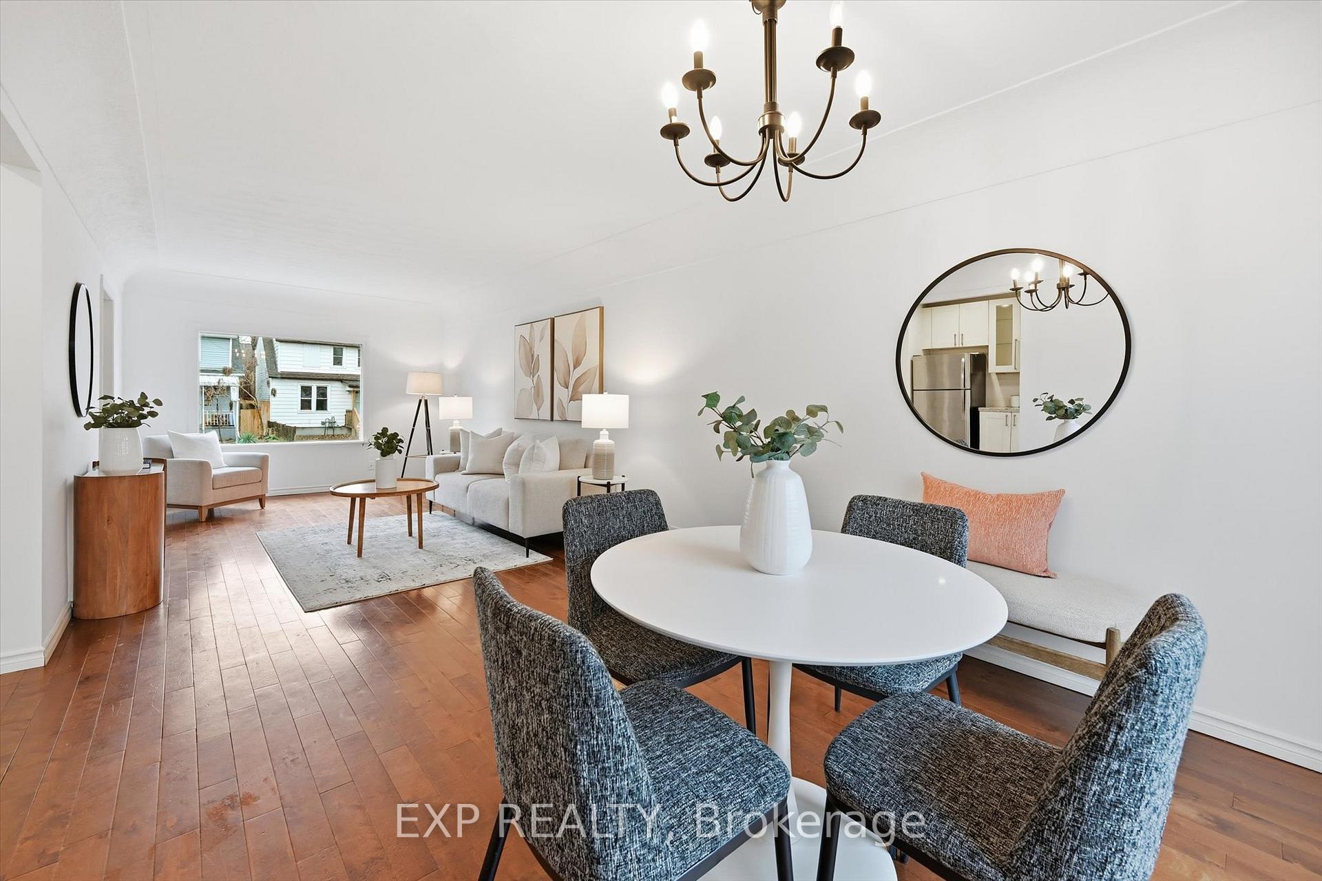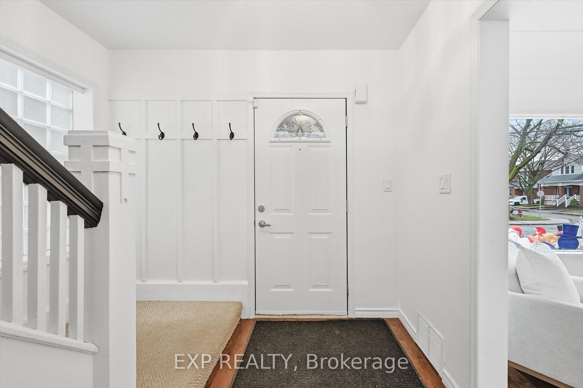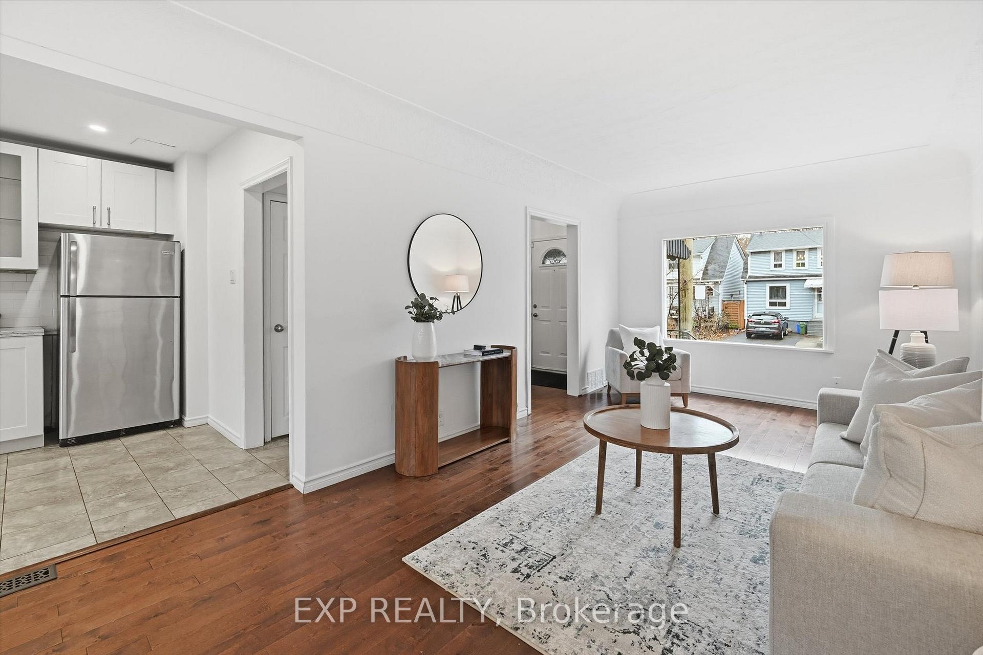 Welcome to this charming all-brick century home in the desirable Crown Point neighbourhood of Hamilton. Offering approximately 1,700 sq. ft. of finished living space, this 3-bedroom, 2-bathroom home seamlessly blends classic character with modern updates.A functional foyer welcomes you into bright living and dining rooms featuring hardwood floors, perfect for everyday living and entertaining. The kitchen boasts white cabinetry, stone countertops, and stainless steel appliances, providing both style and functionality.The primary bedroom is a standout with vaulted ceilings and hardwood flooring, while two additional well-sized bedrooms offer versatility for family, guests, or a home office. The finished basement expands your living space and includes a full 3-piece bathroom, ideal for recreation or extended living needs.Step outside to a newly built deck with built-in storage, perfect for outdoor entertaining and summer enjoyment. Located close to everything Ottawa st has to offer, transit, and local amenities, this Crown Point home delivers timeless appeal, comfort, and convenience.