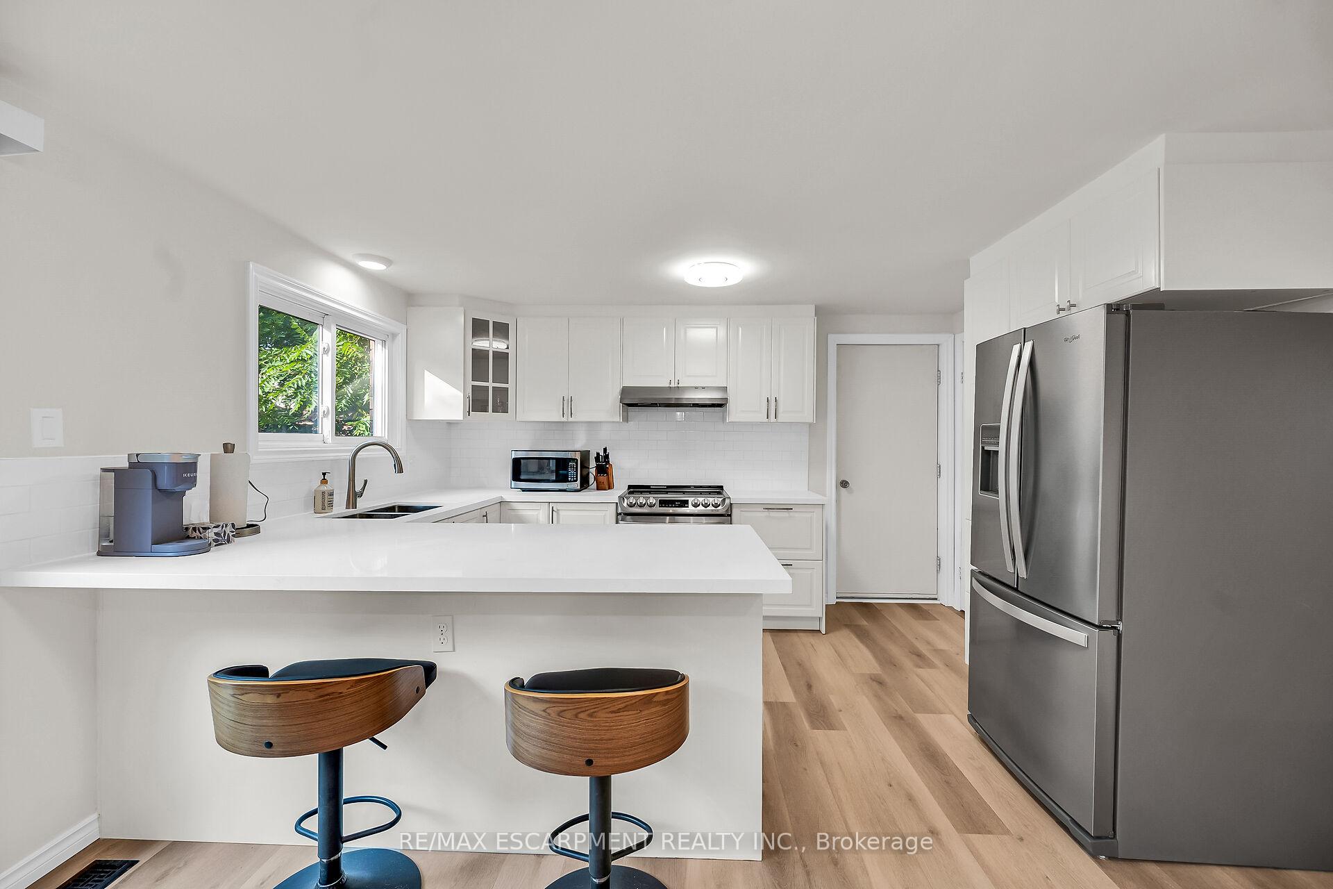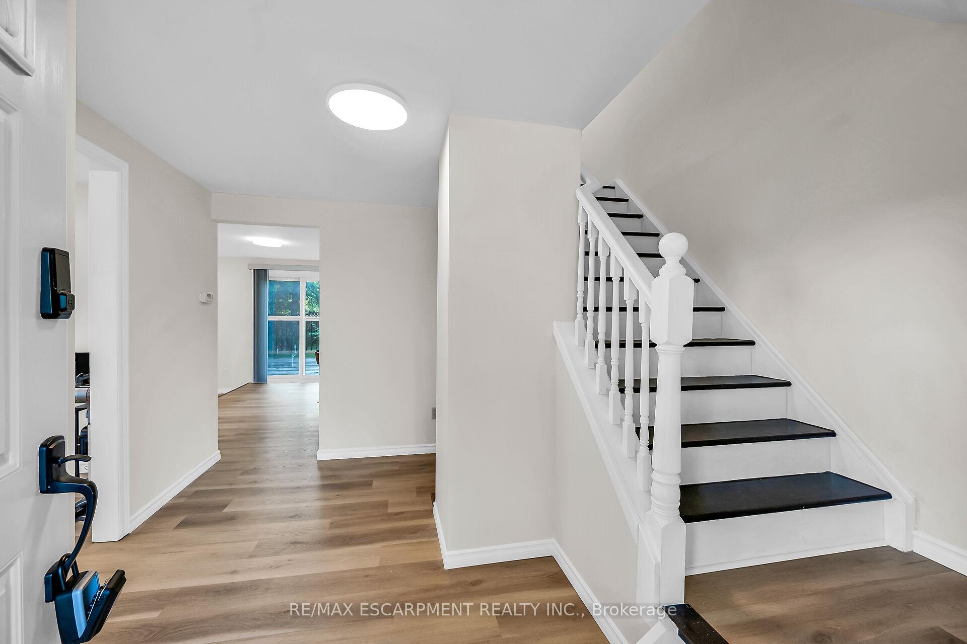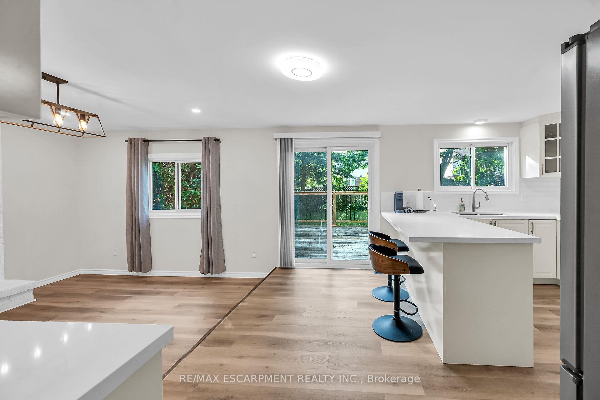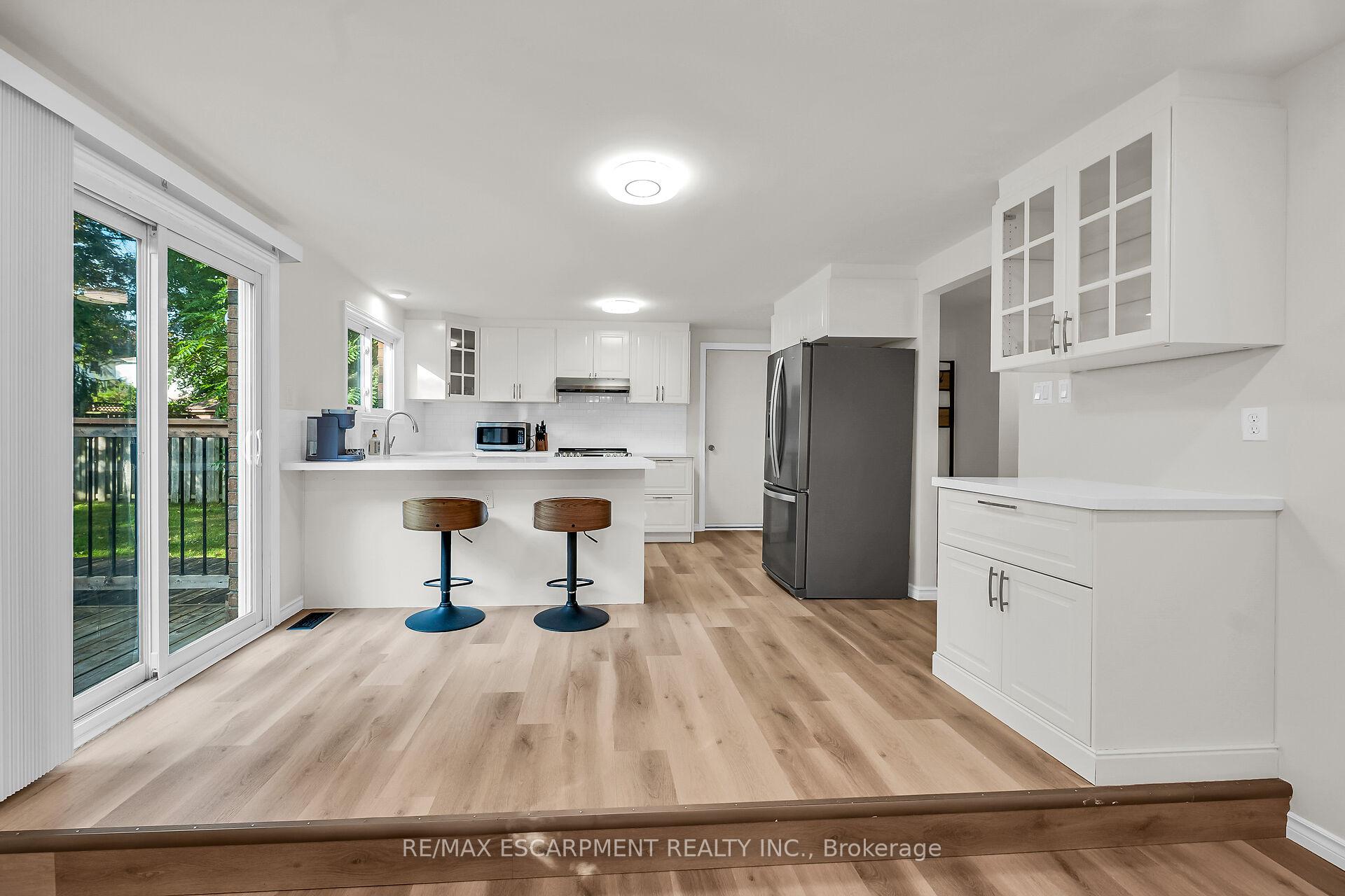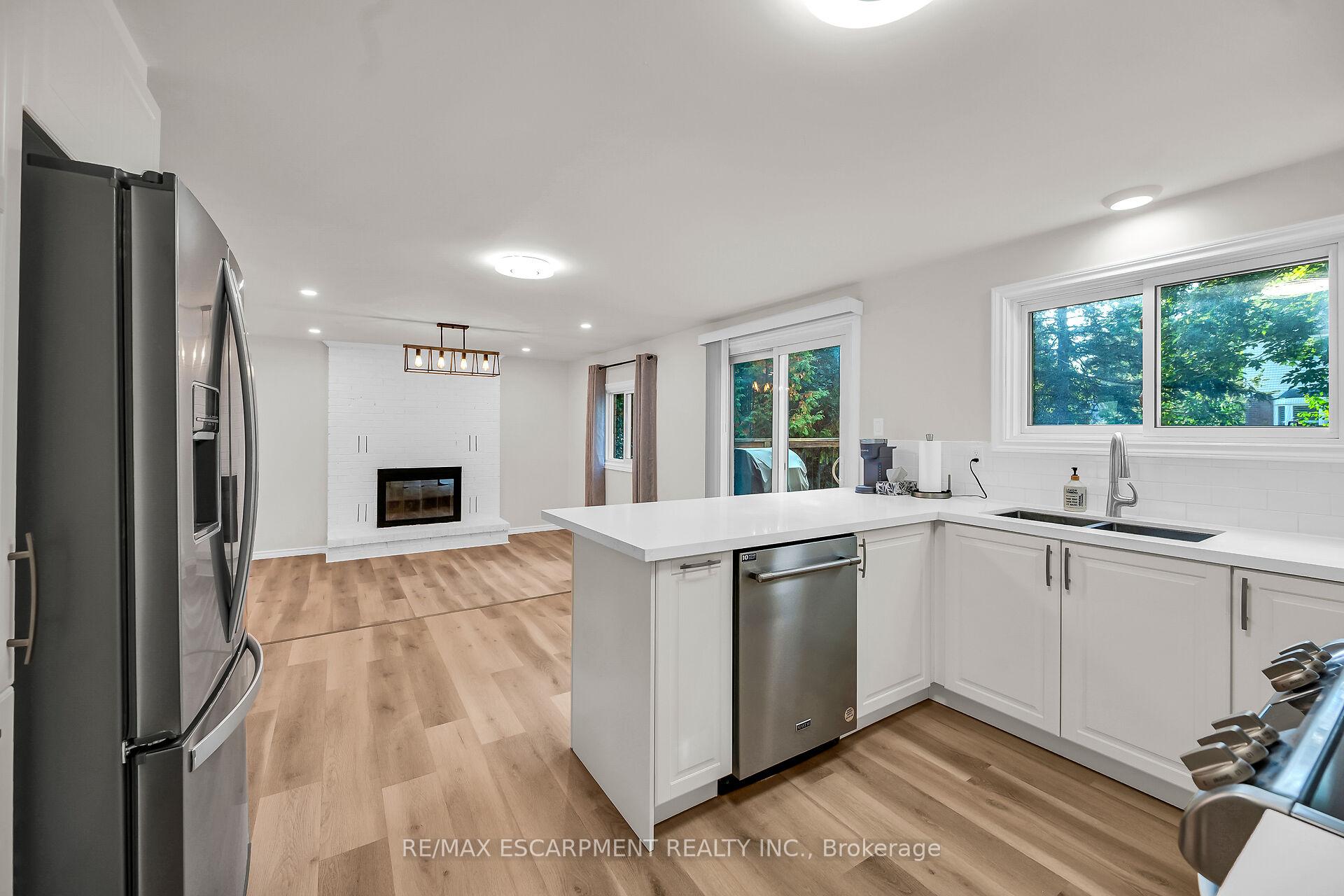Great rental potential! Beautifully upgraded and carpet-free, this home features brand new flooring throughout. The upper level offers 3 spacious bedrooms, including a primary with walk-in closet and private 2-piece ensuite. A 4-piece main bath with double sinks completes the second floor. The open-concept, eat-in kitchen with white cabinetry, and stainless steel appliances flows into a family room with wood-burning fireplace, while a separate living room adds extra space. Sliders from the kitchen lead to a large deck with fully fenced yard. The finished basement offers a 4th bedroom with egress window and 3-piece bath, ideal for students or in-law use. Steps to transit to the University of Guelph, this property is a smart choice for investors. Don’t miss out!