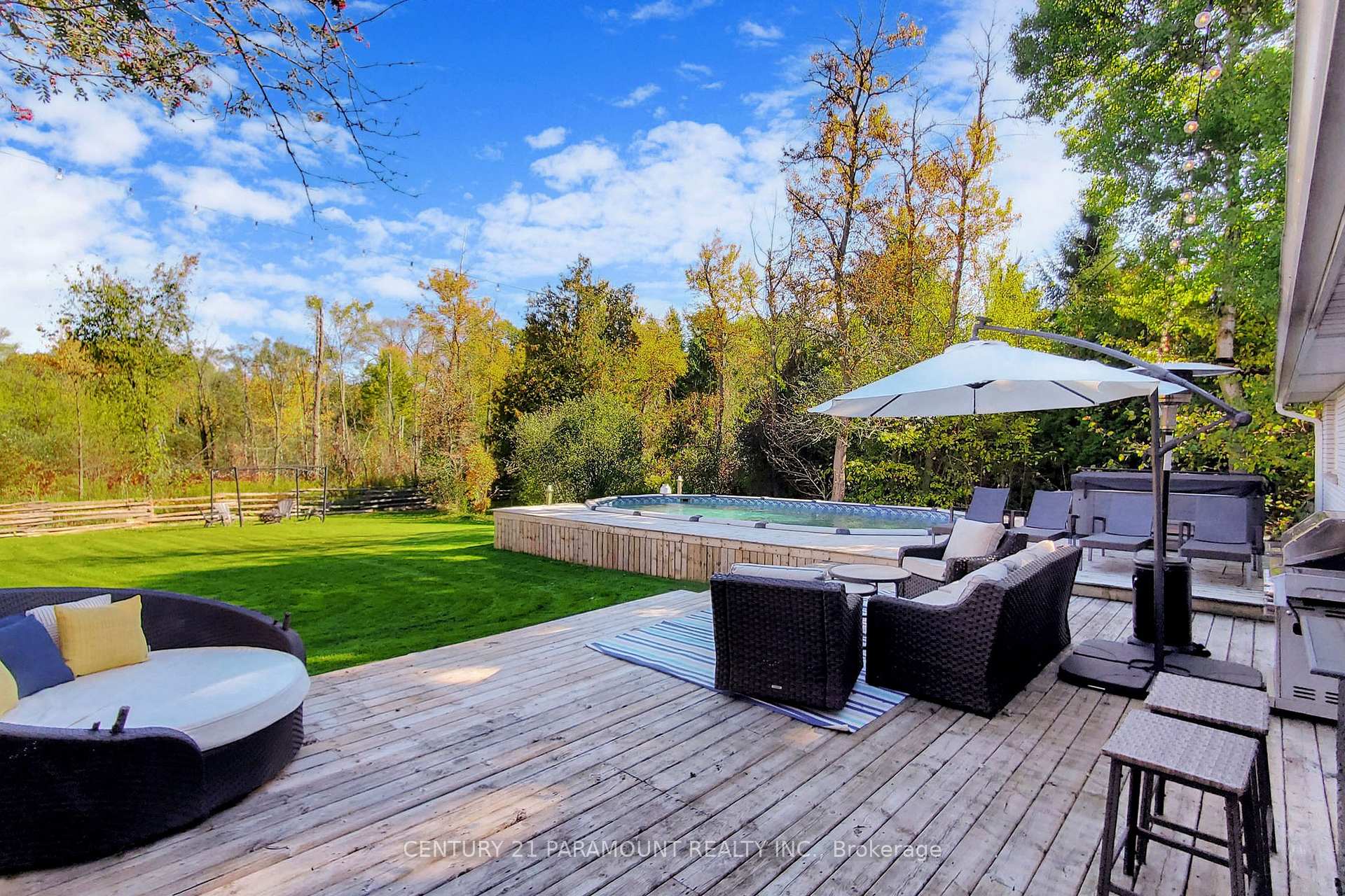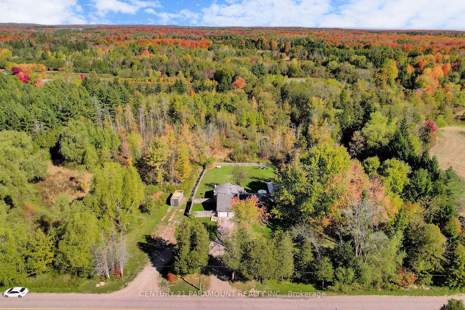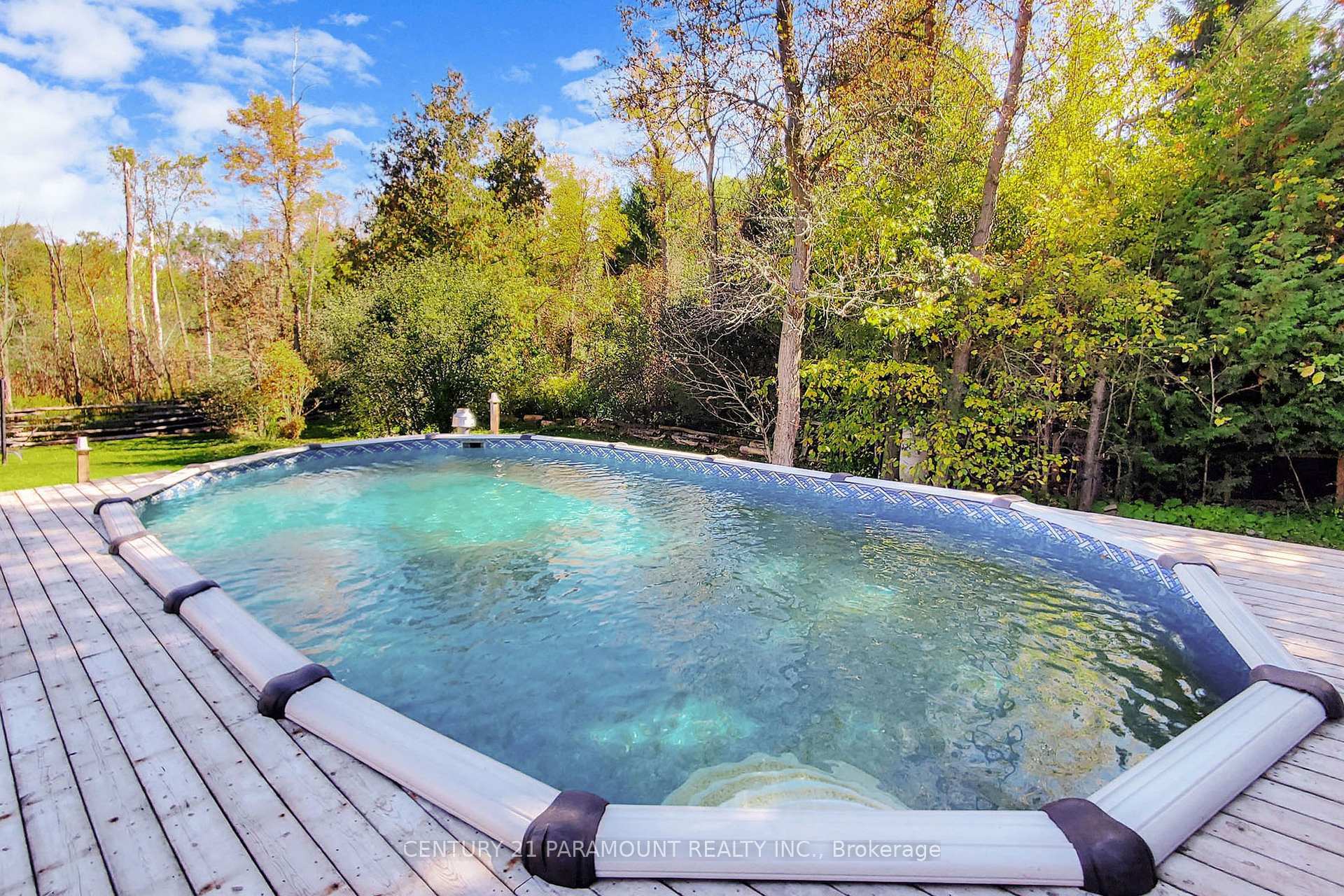 Modern 1800 sq ft (approx) Ranch Style Bungalow for sale in rural Erin. Home sits on a beautiful picturesque, landscaped and private treed lot. Open concept floor plan with many windows that bring in a lot of natural light and which makes the hand-scraped & hardwood floors throughout the home gleam. The modern kitchen has Quartz countertops with a large breakfast bar with pendant lights overtop, lots of storage, undercabinet lighting, gorgeous subway style backsplash, new upgraded stainless steel appliances and a large window that overlooks the backyard and garden. The kitchen faucet has reverse osmosis filter, and blue light filter for water into the home. The home is freshly Painted. The Kitchen overlooks the dining roomcombined with family room that showcases a custom TV/entertainment wall and has a walk-out to the extended deck in the backyard. French Double doors open up to the Living/Media Room thatboasts a rustic propane fireplace, floor to ceiling windows and a reading niche with custom circular window. Smooth ceilings and potlights throughout home. Newly renovated Powder room iscombined with laundry. Newly renovated main bathroom boasts Double shower, soaker tub, and walkout to backyard deck. Fenced and treed backyard boasts an above ground pool and extendeddeck with gazeebo in garden, perfect for entertaining. Google smart thermostat, Fibre highspeed Internet (Standard Broadband), carbon monoxide and smoke detectors. Partial asphalt paved driveway and gravel circular driveway. Keypad entry on front door into home. Garage has agarage door opener, keypad entry and shelving, with entry into home. Storage container/Shed onproperty.Well-maintained home is mere minutes away from Georgetown, all amenities and major highways. Roads/streets to home are plowed and maintained.