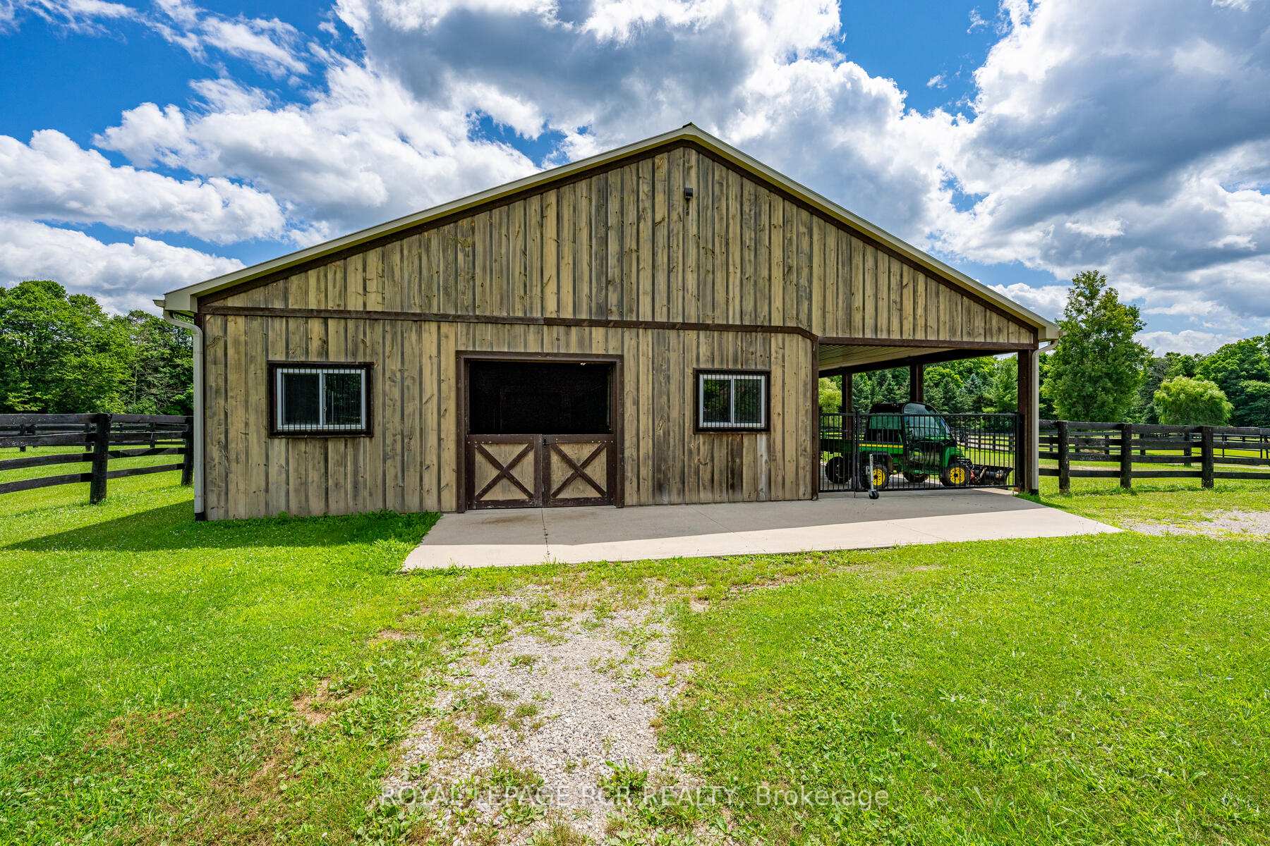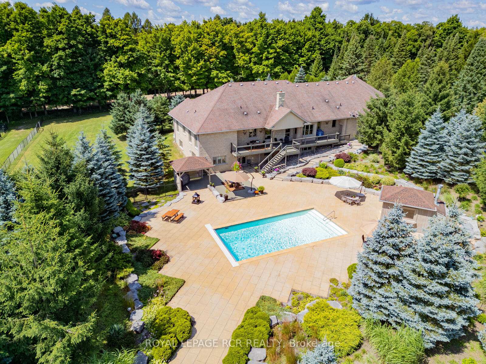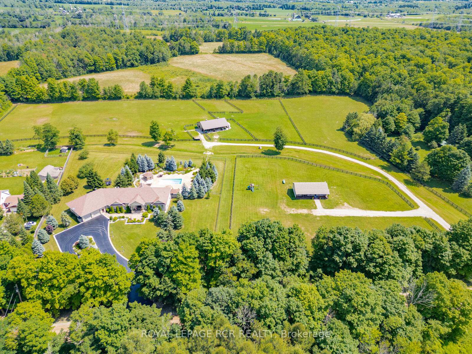 Welcome to this stunning multi-generational country property situated on 44 acres near Acton. Enter the main house through automated electronic front entry gates. Features of the main house include nearly 5000 sq. ft. of luxury living. Maple kitchen w/ granite countertop and backsplash overlooking a large eat-in area with walk-out to large deck overlooking the pool and backyard. Thermador and Miele s/s appliances. Separate and formal open-concept dining room. Open-concept living room w/ cathedral ceiling and wood burning fireplace. Main floor office. Primary bedroom w/ walk-in closet 4 pc ensuite and walk-out to deck overlooking the 18 x 36 heated salt water pool w/ electric pool cover. Main floor laundry and a second laundry in the basement. Huge 9 car attached garage with access to the house and backyard. Fully finished walk-out basement set up as an in-law suite with full kitchen with granite countertop and centre island, large and bright bedroom with 3 pc semi-ensuite bath, , living , dining and games room and tons of storage. Gorgeous backyard with extensive wrought iron fencing. Multiple dining areas. 10 x 10 pool cabana. Approximate 4000 sq. ft. of stone decking with extensive landscaping and stunning gardens. 12 zone, 60 head sprinkler system for front and rear gardens. New roof 2025. 30 x 60 Gara Farm Structures barn with 6 System Fencing stalls, separate tack room and large hay storage area. 5 large oak-board paddocks with room for more and a separate driveway to the barn. Lots of room to add an indoor arena if desired. Updates include new geo-thermal furnace in 2022, new pool pump 2024, new pool heater and chimney 2023, Miele dishwasher 2024, Miele induction stove-top and wine fridge 2023. Generator for the full main house. The secondary dwelling features 3 +2 bedrooms. 2.5 baths, partially finished basement. Main floor laundry. Large eat-in kitchen. Separate septic system and drilled well. Propane furnace & central air conditioning. Built in 2018.