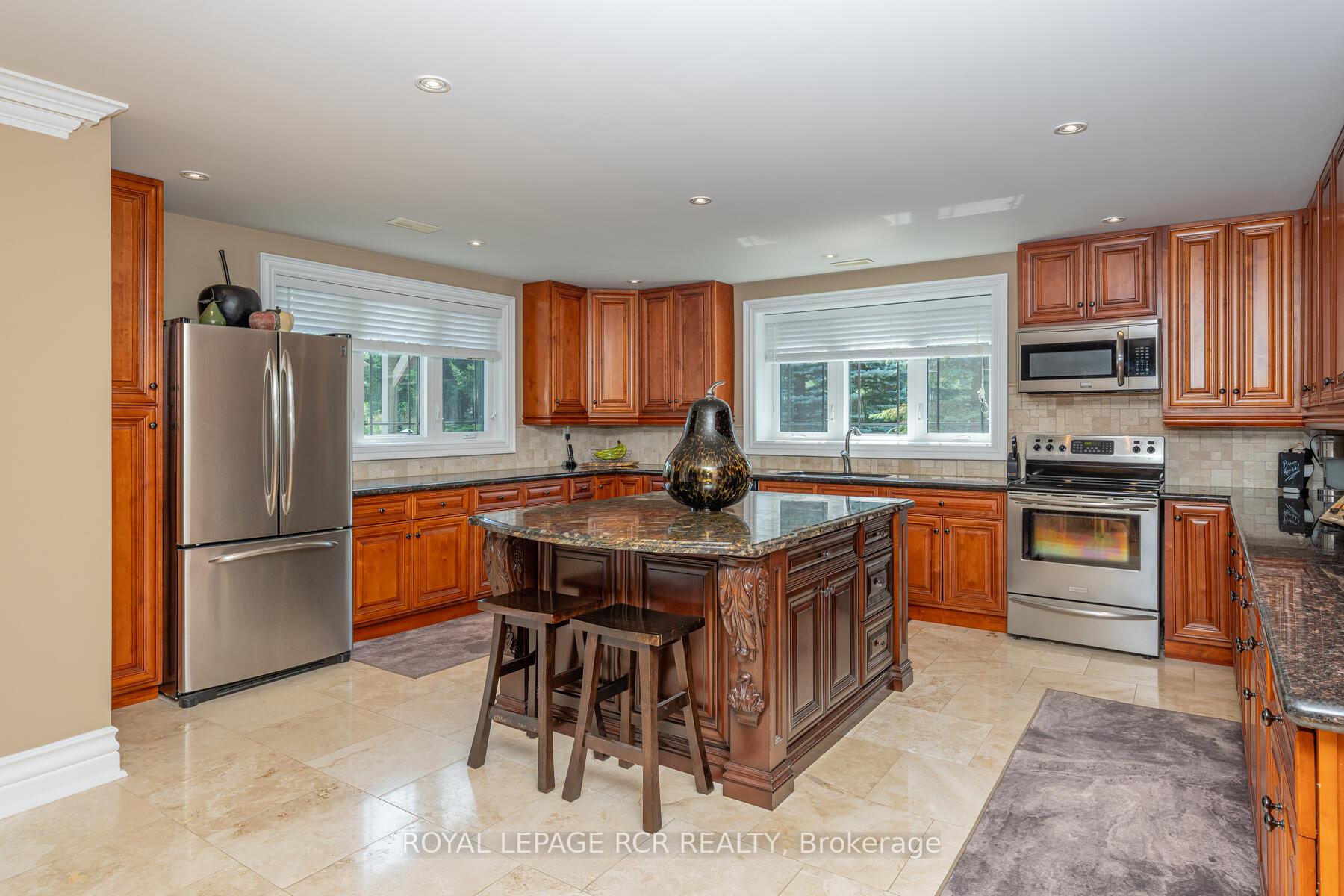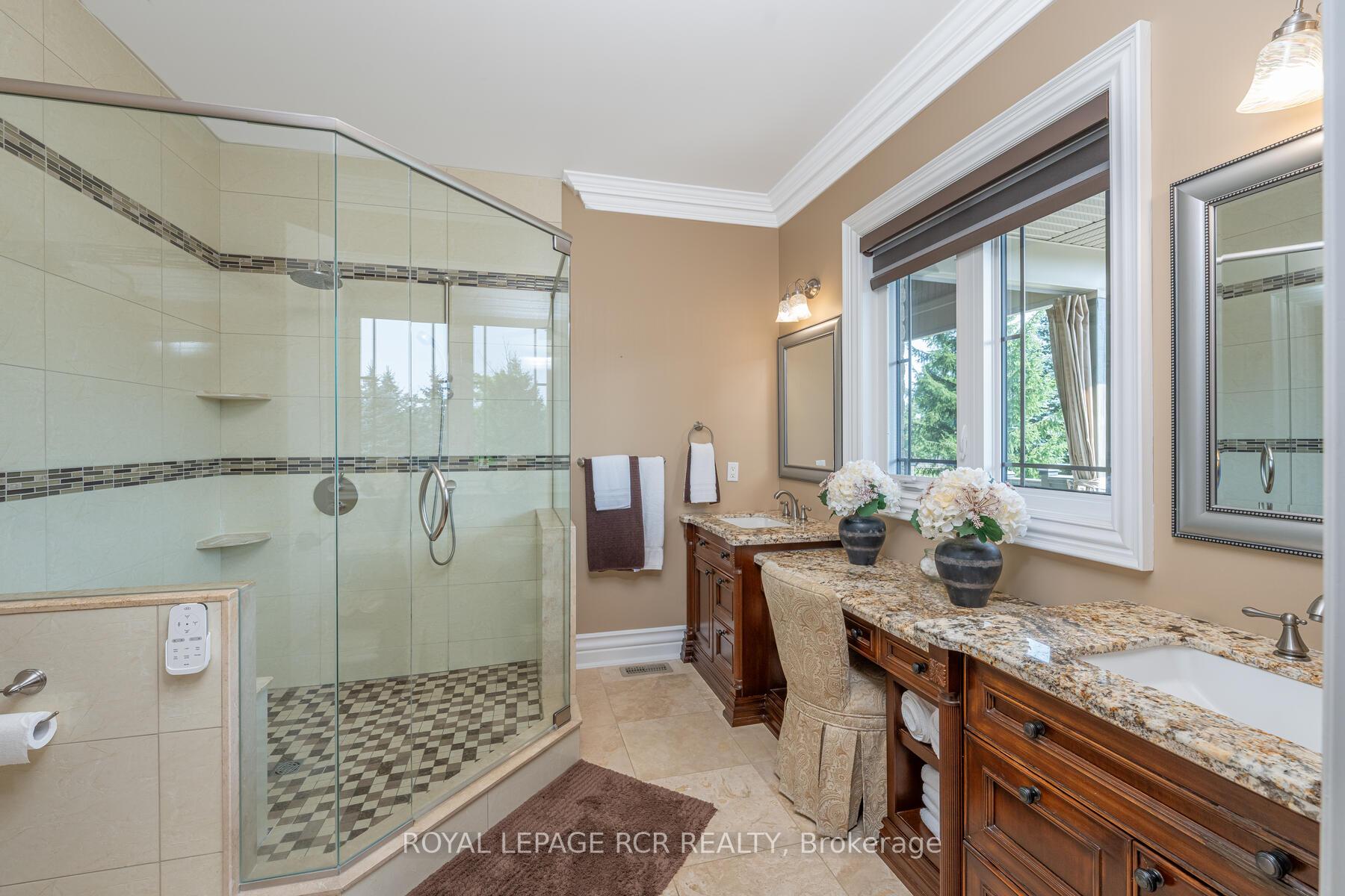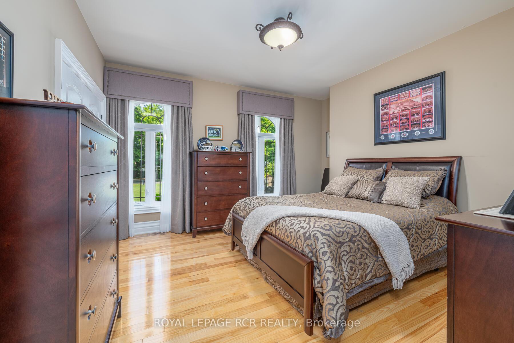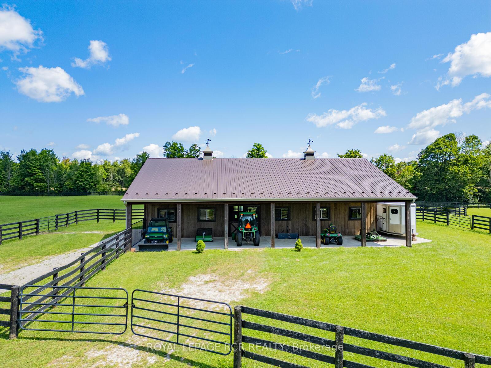 Welcome to this stunning multi-generational country property situated on 44 acres near Acton. Enter the main house through automated electronic front entry gates. Features of the main house include nearly 5000 sq. ft. of luxury living. Maple kitchen w/ granite countertop and backsplash overlooking a large eat-in area with walk-out to large deck overlooking the pool and backyard. Thermador and Miele s/s appliances. Separate and formal open-concept dining room. Open-concept living room w/ cathedral ceiling and wood burning fireplace. Main floor office. Primary bedroom w/ walk-in closet 4 pc ensuite and walk-out to deck overlooking the 18 x 36 heated salt water pool w/ electric pool cover. Main floor laundry and a second laundry in the basement. Huge 9 car attached garage with access to the house and backyard. Fully finished walk-out basement set up as an in-law suite with full kitchen with granite countertop and centre island, large and bright bedroom with 3 pc semi-ensuite bath, , living , dining and games room and tons of storage. Gorgeous backyard with extensive wrought iron fencing. Multiple dining areas. 10 x 10 pool cabana. Approximate 4000 sq. ft. of stone decking with extensive landscaping and stunning gardens. 12 zone, 60 head sprinkler system for front and rear gardens. New roof 2025. 30 x 60 Gara Farm Structures barn with 6 System Fencing stalls, separate tack room and large hay storage area. 5 large oak-board paddocks with room for more and a separate driveway to the barn. Lots of room to add an indoor arena if desired. Updates include new geo-thermal furnace in 2022, new pool pump 2024, new pool heater and chimney 2023, Miele dishwasher 2024, Miele induction stove-top and wine fridge 2023. Generator for the full main house. The secondary dwelling features 3 +2 bedrooms. 2.5 baths, partially finished basement. Main floor laundry. Large eat-in kitchen. Separate septic system and drilled well. Propane furnace & central air conditioning. Built in 2018.