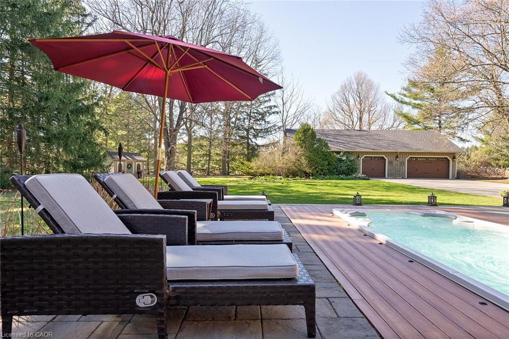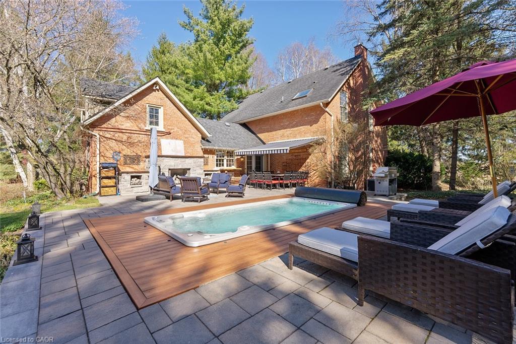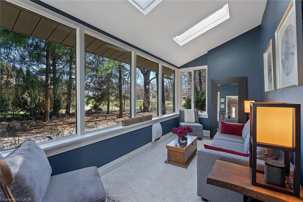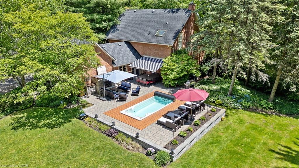 Wake up with the sun in your glass-enclosed sunroom overlooking landscaped perennial gardens that offer a changing display of colour and texture through all four seasons. Step outside into your own backyard retreat, complete with a built-in spa and a propane fireplace—perfect for cozy evenings under the stars.