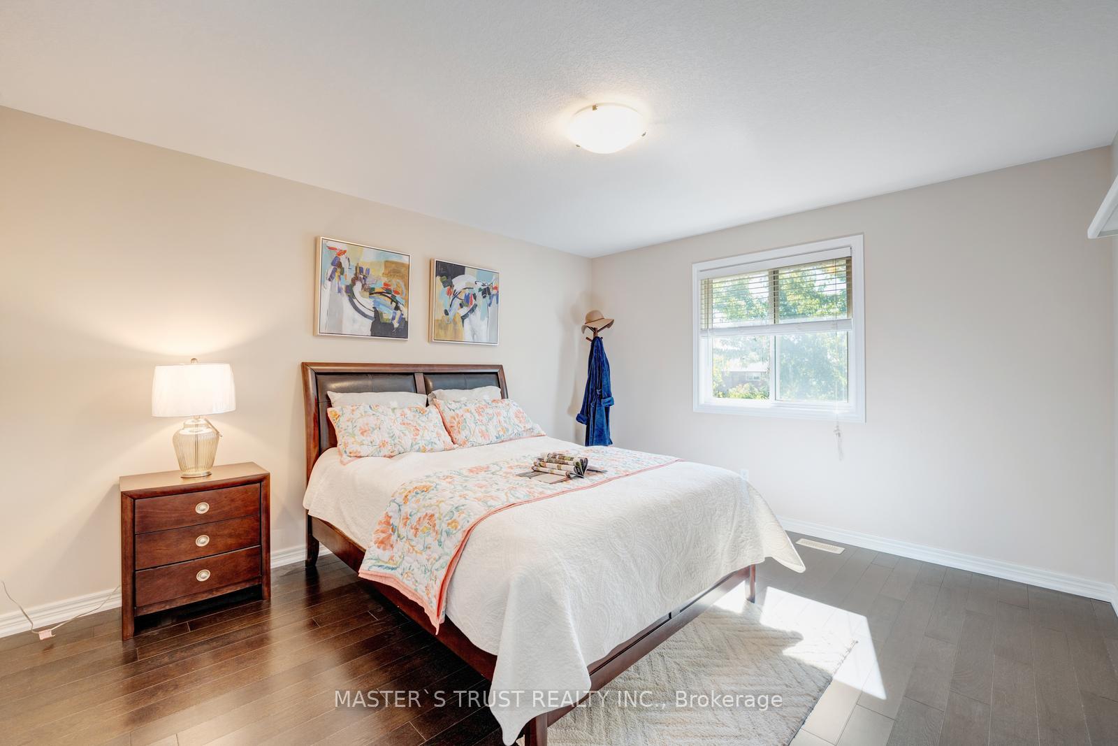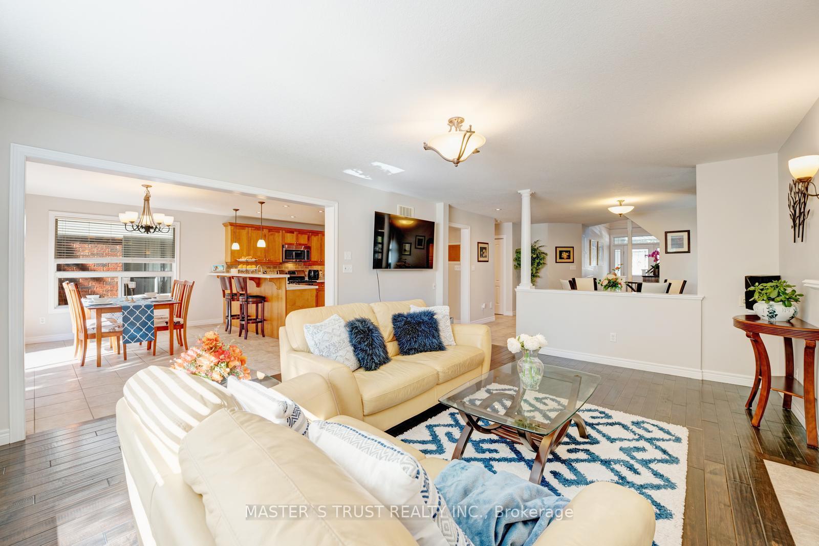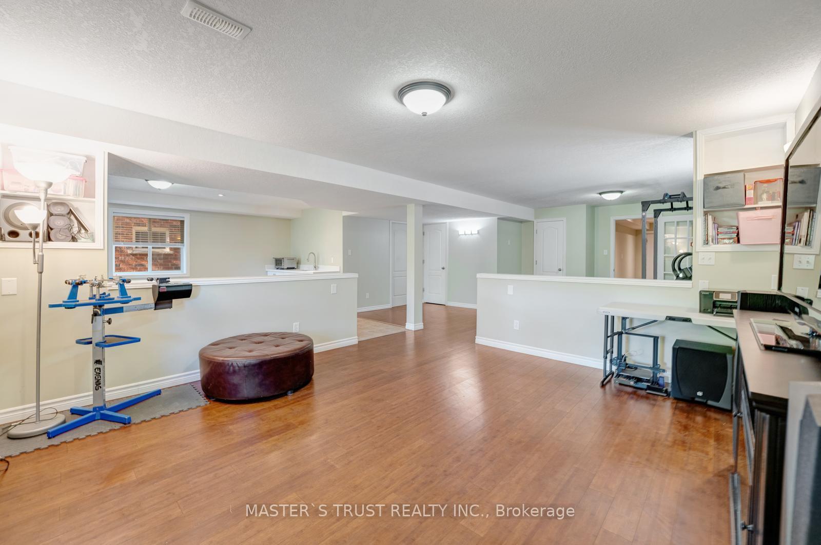 Welcome to 5 Howden Crescent! This 4-bedroom, 4-bathroom CARPET-FREE double garage home is beautifully finished on all levels and located in the desirable family-friendly neighborhood of Pineridge/Westminister Woods. Steps to Sir Isaac Brock public school, parks and the new High School scheduled to open in 2026-2027. Short drive to the University of Guelph, Hwy 401 and all major amenities. Situated on a quiet crescent BACKING ONTO GREEN SPACE. 4 spacious bedrooms upstairs including a master bedroom with his and hers walk-in closets and a four-piece ensuite bathroom. Bright kitchen with quartz countertop and stainless steel appliances. Gas line available on deck for BBQ. Finished WALKOUT BASEMENT with a kitchenette and three-piece bathroom. With a large back deck facing green space, this is the home you have been waiting! Upgrades include: Hardwood Stairs (2017), Roof (2019), Second Level Hardwood Floor (2023), Owned Water Heater (2023), Heat Pump (2023), New Paint (2023), Basement Kitchenette (2023), Dishwasher (2024).