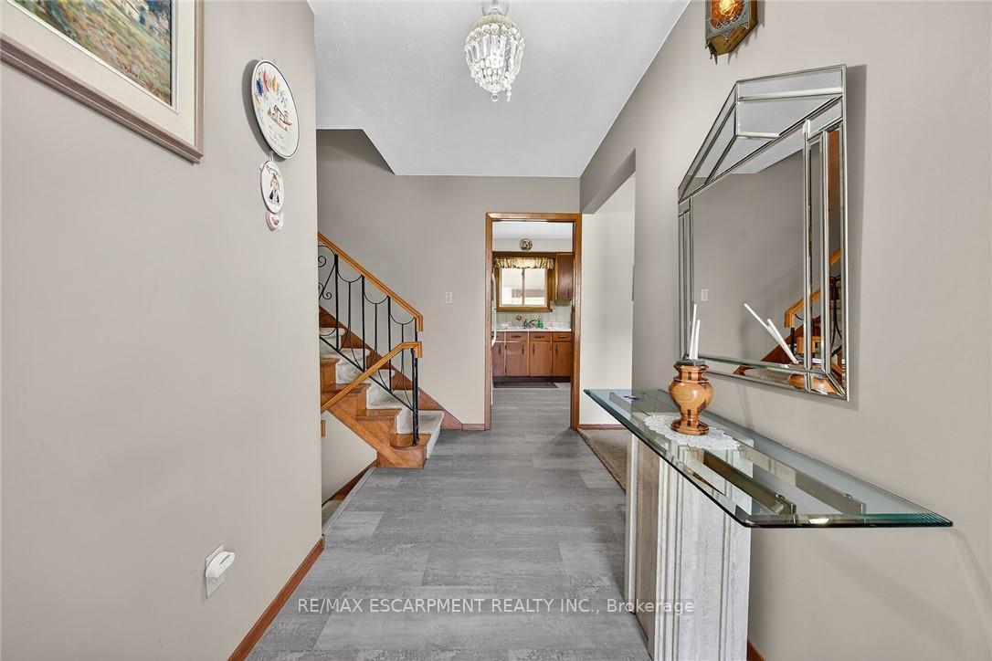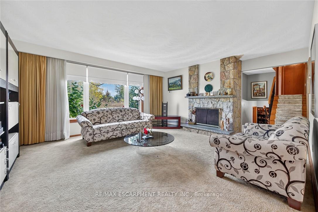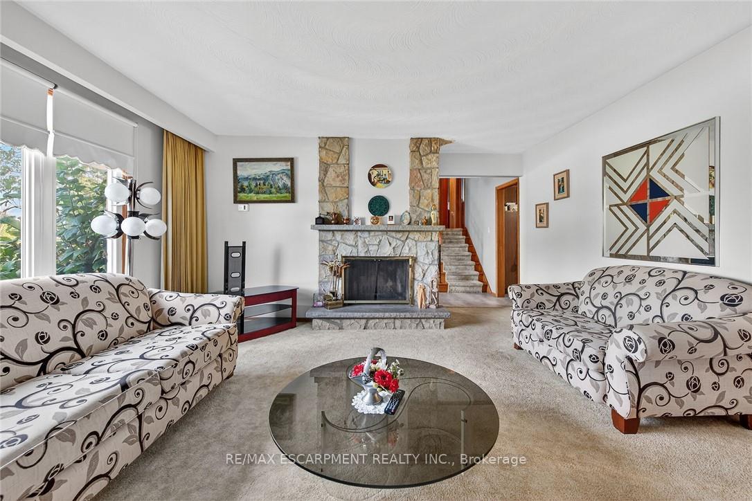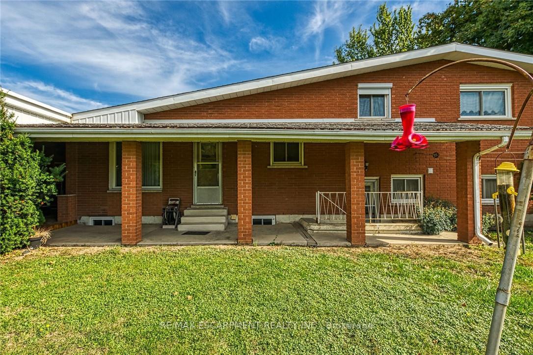 Welcome to beautiful side-split at 5 Third Road E, Stoney Creek. A rare opportunity to own unique property in rural Stoney Creek by escaping city traffic, while staying just minutes from city conveniences. Gorgeous home features 3 + 1 bedrooms with hardwood flooring, kitchen, dining room, living room, 2 full bathrooms, humongous family room with fp. Unfinished basement awaits for new buyer and their tasteful touches. Step outside to humongous family friendly side/back yard, with large covered sitting area for enjoyment and entertainment of summer days/nights. Standout feature of this property is huge corner lot. Endless possibilities are here. Property offers the ideal combination of function, comfort, and accessibility. Single car garage with driveway up to 5 cars. 173×131 (irregular lot). RSA