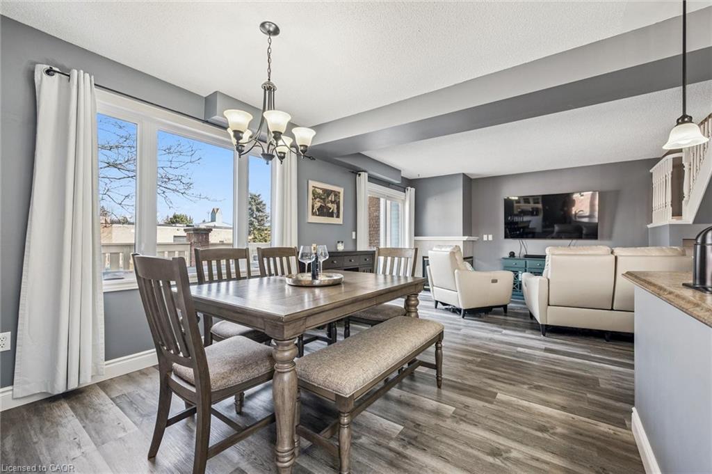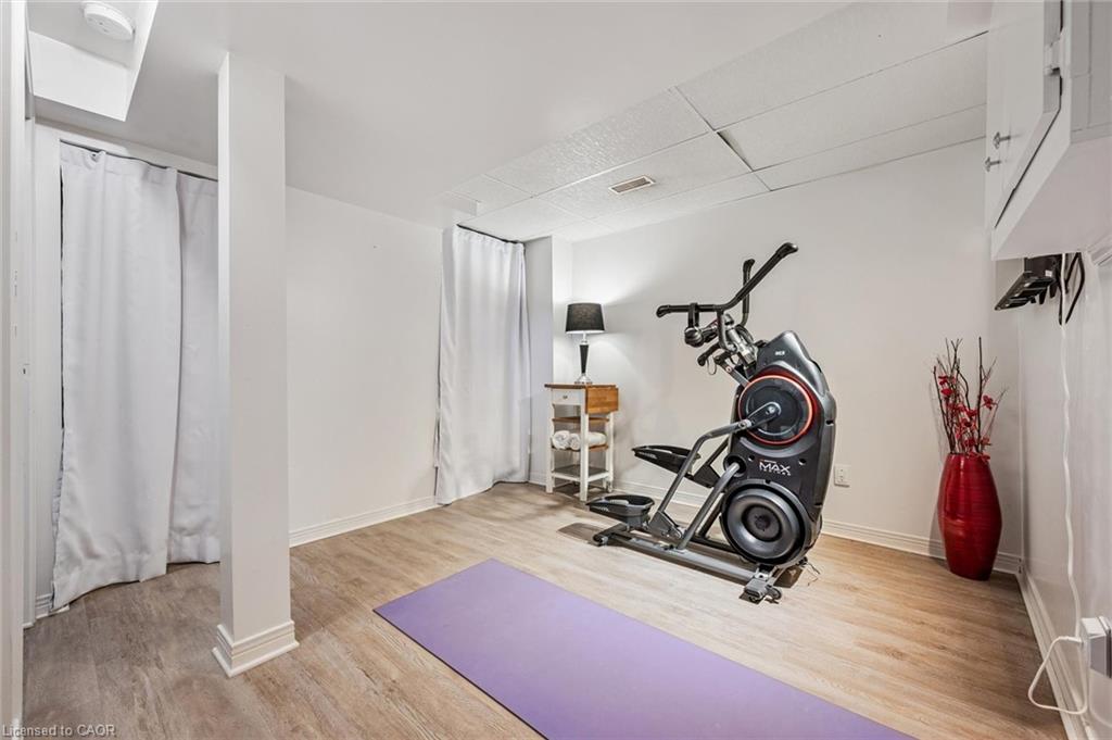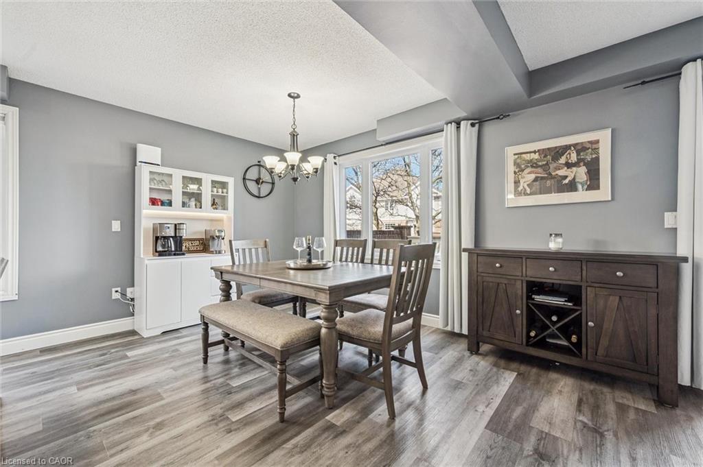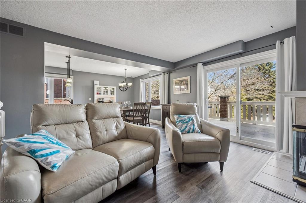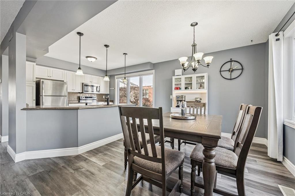 Little maintenance. 3 bedrooms. More living. 1487sf. of total livable space. Rare three bedroom opportunity at Parc Place. Tired of snow shovels & lawn mowing? This home offers a simpler way to live. Welcome to Parc Place, a sought-after community where the exterior work is handled for you. Snow removal, lawn care & building maintenance are covered by the condominium, freeing up your time to enjoy life instead of maintaining a home. Spend summer afternoons at the private pool and sauna, challenge friends to a match on the tennis or pickleball courts, or simply relax on your own outdoor retreat. The oversized 266sf terrace feels more like a private courtyard than a typical condo patio, with plenty of space for lounging, dining & summer evenings with friends, a rare amount of outdoor space for a condo townhome. Inside, this bright townhouse benefits from large windows that fill the home with natural light. The main floor features a welcoming open layout where the kitchen, dining & living areas flow naturally together, ideal for everyday living & entertaining. The kitchen’s angled peninsula offers generous counter space & breakfast bar seating, keeping the cook connected to the conversation, while the living room with corner gas fireplace opens directly onto the terrace, creating seamless indoor-outdoor living. A major advantage here is the rare three bedroom layout, something many units in the complex simply do not offer, perfect for family, guests or a home office. The primary bedroom includes a walk-in closet & private ensuite, while two additional bedrooms & another full bathroom complete the level. The finished lower level adds flexible space for a family room, gym, or media area, along with laundry, storage & direct access to the garage. Set within a quiet, well-managed community known for its mature landscaping & resort-style amenities, the home is steps from Manhattan’s Bistro & minutes from the University of Guelph, parks & abundant shopping.