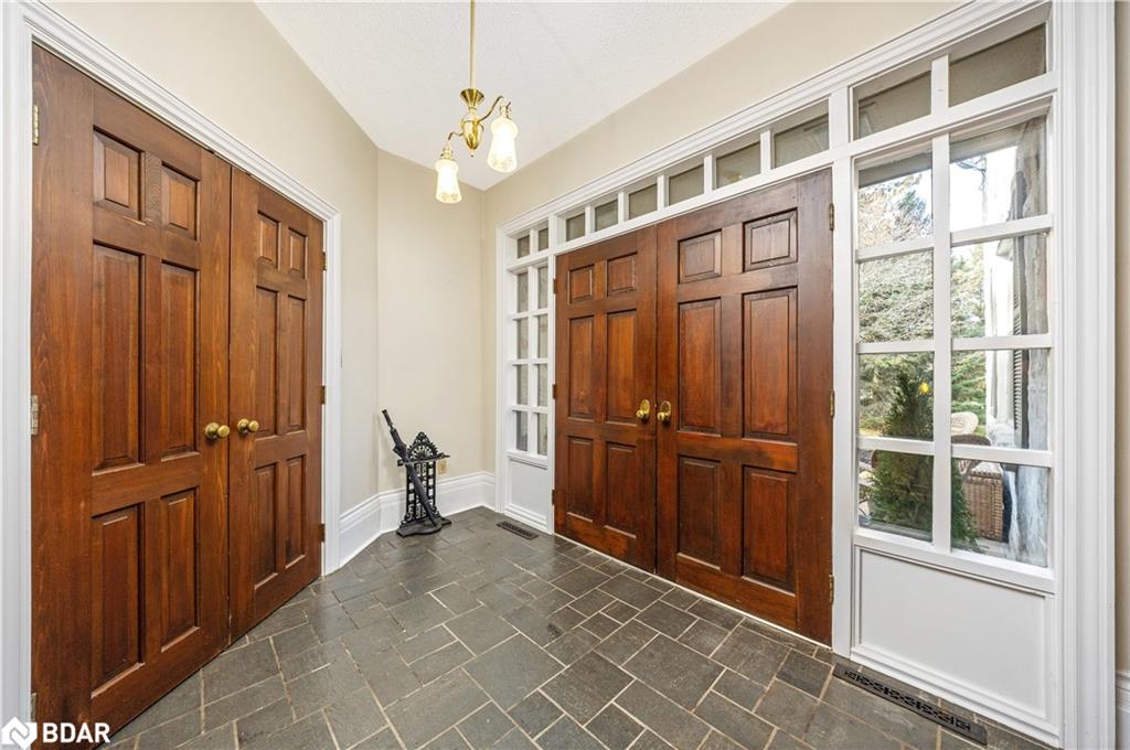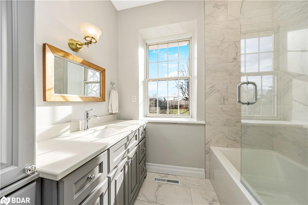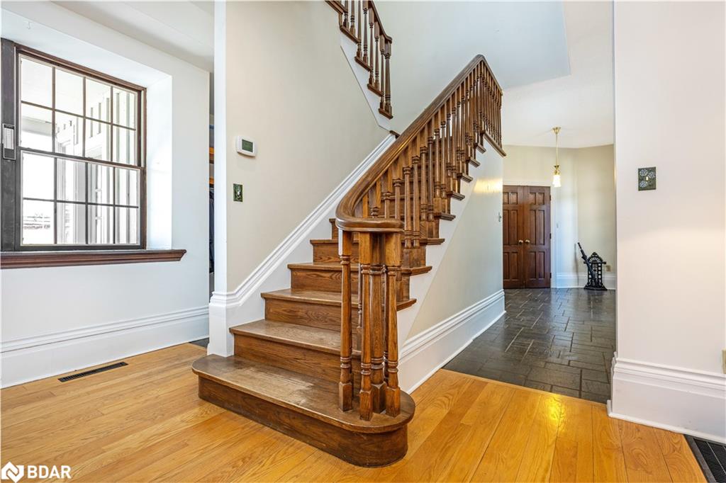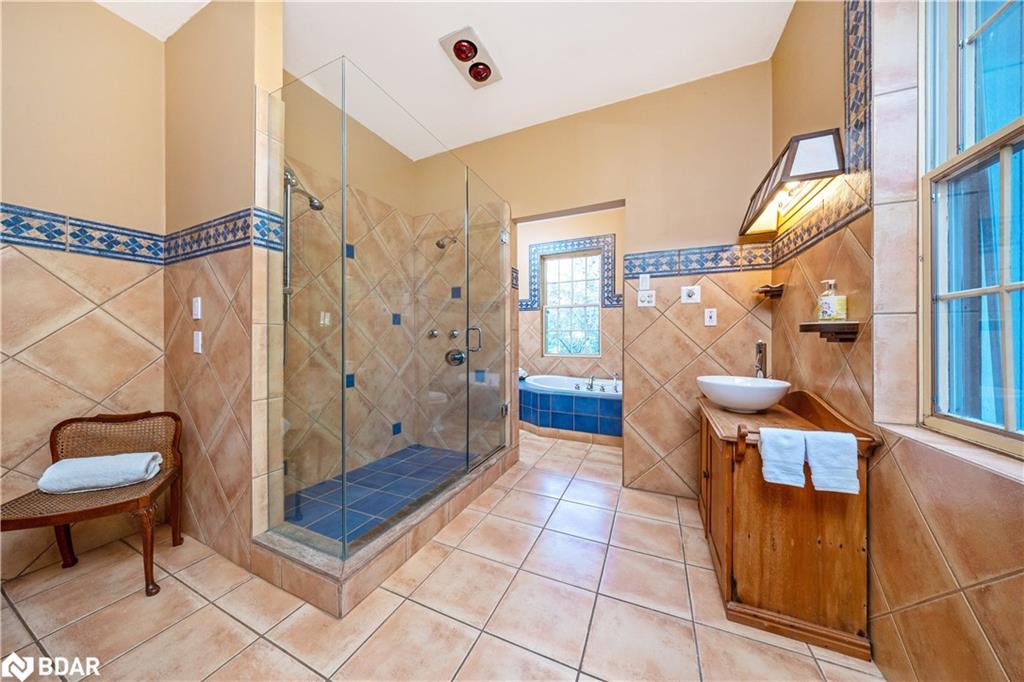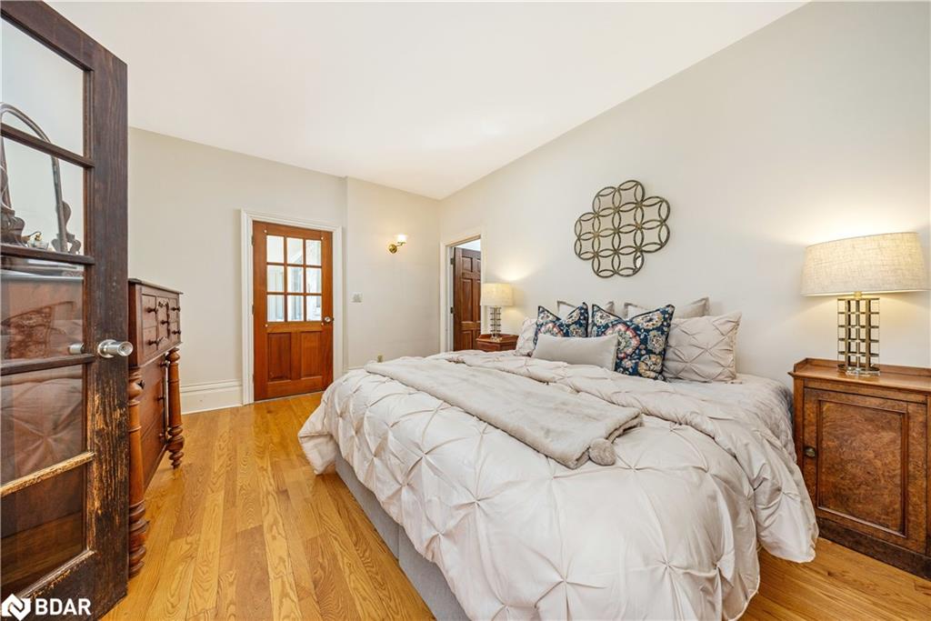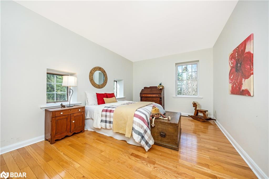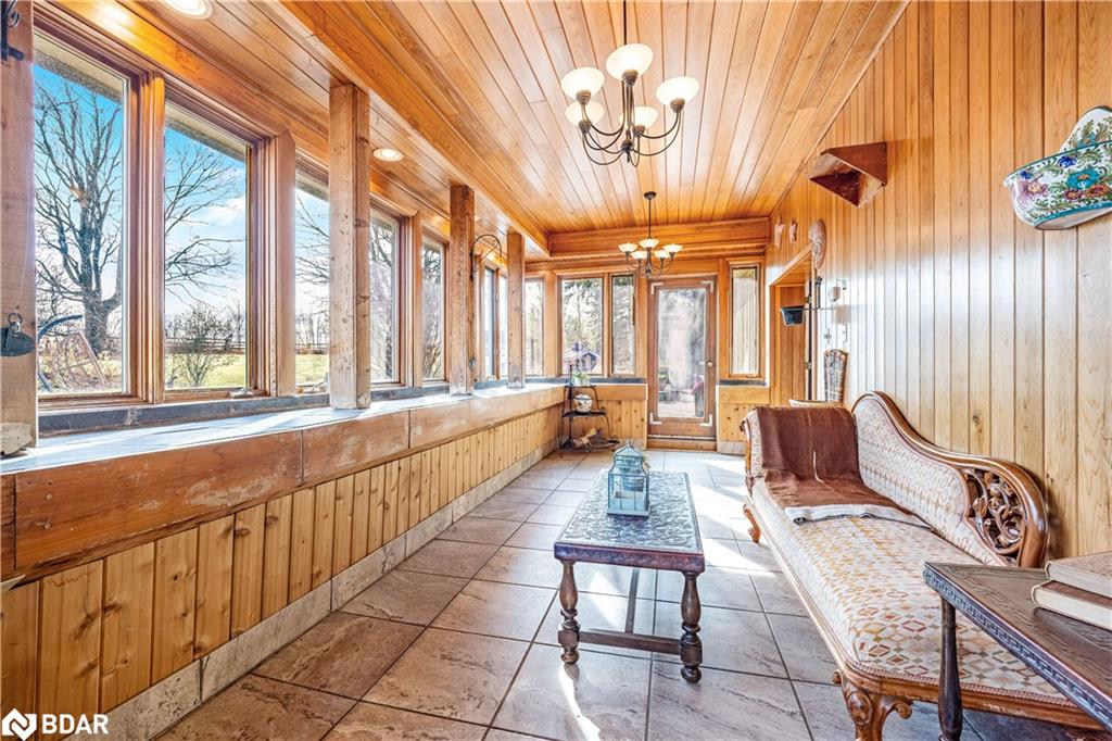 This circa 1875 fieldstone farmhouse has been thoughtfully redesigned by architect Grant A. Whatmough and is set on approximately 99 acres behind a gated entry. Maintaining classic charm and modern convenience, this property is ready for a new family to carry on the tradition. The main floor welcomes you with a double door entry leading into a spacious open concept kitchen and large living area highlighted by a stone fireplace and deep windowsills. The kitchen features Corian counters, stainless steel appliances, a center island, and walkout access to a covered stone patio and in ground pool. Enjoy cozy breakfasts by the wood burning fireplace or host larger gatherings in the formal dining room. A rare main floor primary suite offers hardwood floors and a walkout through double French doors to a sunroom with heated floors overlooking the perennial filled backyard and pool. The spa style ensuite includes heated tile floors, a double glass shower, and a soaker tub. Upstairs, you will find four bright and spacious bedrooms, each with closets and windows overlooking the private property. Along with the added ceiling height, this level features two updated baths, upper level laundry, and generous closet space. Outdoor living is highlighted by a 20 x 40 geothermal heated marbelite pool with diving board, a flagstone patio, and a covered entertainment area complete with a pizza oven and cooking space. A heritage post and beam barn with hayloft, a secondary garage or shed, and a silo enhance the property’s charm. Mechanically, the home offers dual geothermal systems for the house and pool, radiant in floor heating, two drilled wells, and an active lease on approximately 52 workable acres. Trails and a 21 acre woodlot provide endless opportunities for exploration. This one of a kind rural retreat is just minutes from town amenities and ready for its next family to enjoy.