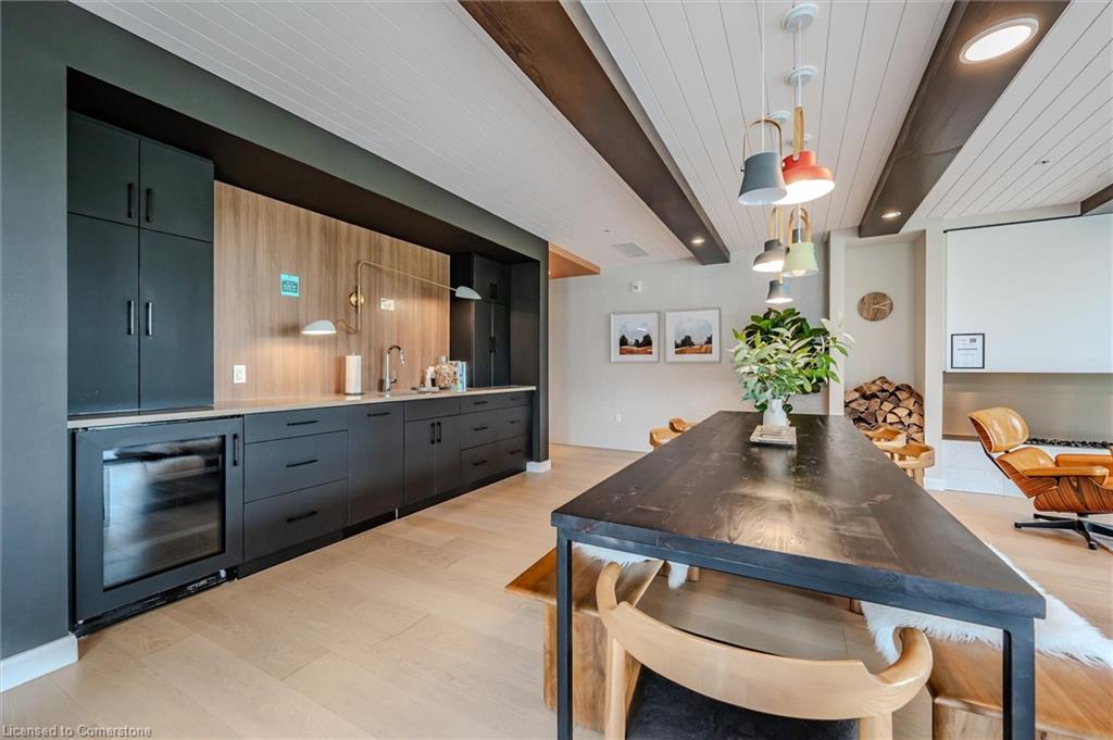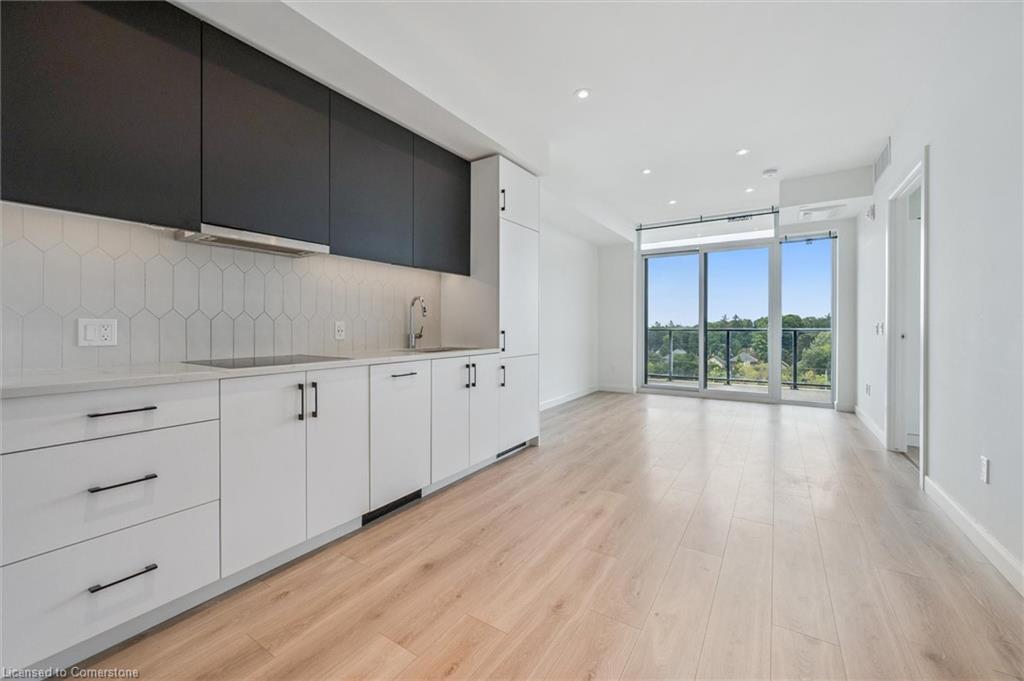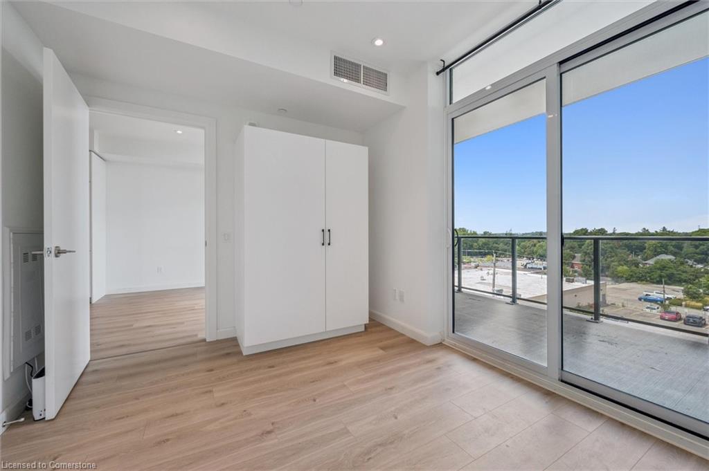 Welcome to 501-741 King St. W., Kitchener – where modern luxury meets Scandinavian-inspired design in this newer condominium development. Just a short walk from the LRT ION Grand River Hospital stop, this location offers exceptional convenience along the LRT line. With a local supermarket right across the street, grocery shopping is a breeze. Plus, being within walking distance to Uptown Waterloo, you’re close to all the amenities you need. Step into this beautifully designed 2-bedroom, 1-bathroom unit featuring heated bathroom floors, a spacious terrace, and an open-concept layout that defines contemporary living. Enjoy the added convenience of one parking spot (EV-ready via ChargePoint) and a dedicated storage locker. This smart condo is equipped with the innovative InCHARGE system platform offering cutting-edge technology for modern urban living. Custom closets, sleek finishes, and expansive balconies/terraces provide both style and functionality. The building’s amenities are second to none: • A cozy “Hygge” lounge with a café, library, fireplaces, and intimate seating areas • A vibrant outdoor terrace featuring two saunas, an outdoor kitchen/bar, lounge space, a grand communal table, and shaded trellis areas • An elegant party room and additional sauna for relaxing or entertaining • Ground-level amenities including public and private patios • A linear parkette and art walk that enhance the community charm With easy access to parks, public transit, and highways, this location is as convenient as it is stylish. Every detail of this residence is designed to offer comfort, sophistication, and smart city living.