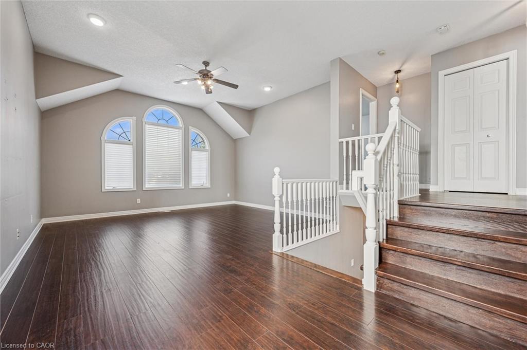 Prime Eastbridge Location The Perfect Family Home with Room to Grow! Welcome to this beautifully maintained home in the heart of Eastbridge, one of Waterloos most desirable family-friendly neighborhoods. Offering plenty of space, comfort, and charm, this home is designed for both everyday living and entertaining. The main floor features a bright, open-concept layout with a spacious living room highlighted by a cozy center fireplace and Palladium windows that flood the space with natural light. The carpet-free design adds a clean, modern touch throughout. The expansive kitchen boasts ample cabinetry, including a full pantry wall, and an adjoining dining area with a walkout to a large deck perfect for family dinners or weekend barbecues. Upstairs, you’ll find a welcoming family room with oversized windows, offering the ideal spot for movie nights or kids playtime. The second floor includes three generous bedrooms, including a primary suite complete with a walk-in closet and a private ensuite bathroom. The basement is mostly finished, offering a spacious recreation room, games area, laundry, and ample storage givingyour family even more room to grow and play. Step outside to enjoy the oversized deck with a charming gazebo, overlooking a large fenced yard