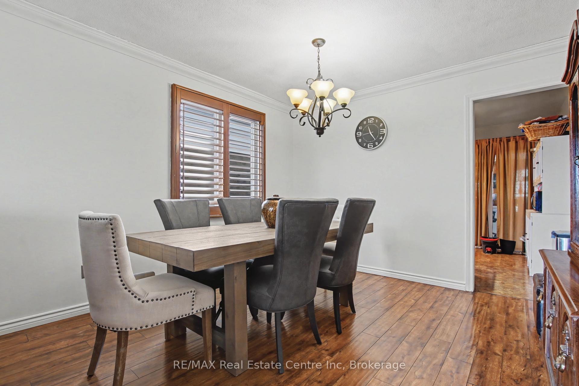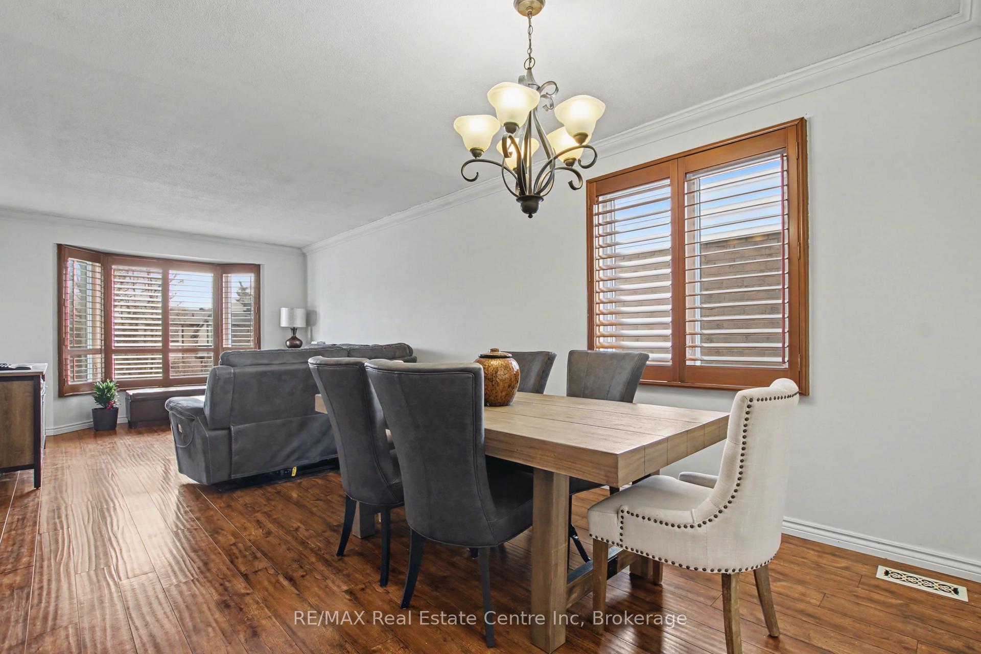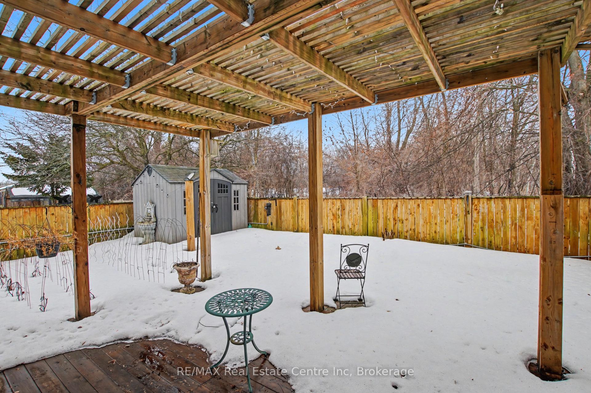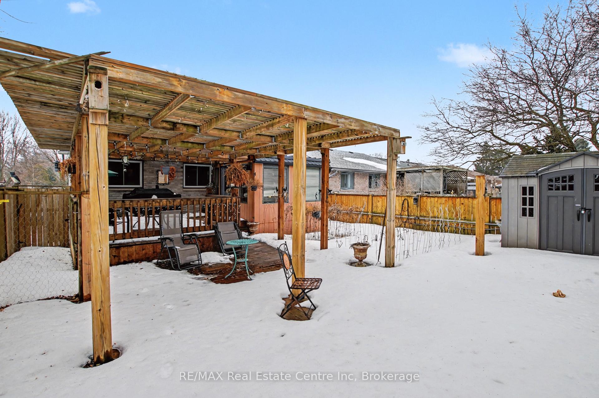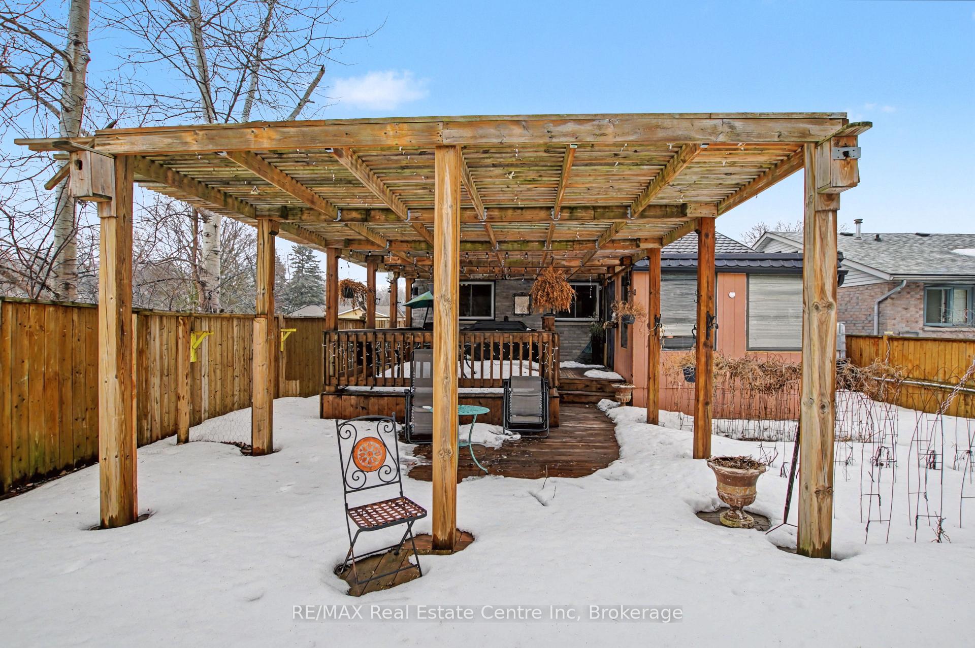 Beauty and Privacy. This house offers one of the nicest curb appeals in the area. From the interlocking driveway to the armour stone steps that lead to the front door and the white brick that is accented but the metal roof, this raised bungalow is saying home even before you enter. At night the front is lit up by it’s many pot lights. The main living space offers an open concept living and dining rooms with laminate floors. The windows are fitted with shutters for privacy but can also open to allow light to stream in. The kitchen leads to a 3 season sun room (insulated but not heated) and from there you’ll find sliding doors to the massive deck and pergola. The custom backyard is done up to allow tranquility to enjoy the stunning sunsets. The main floor also has 3 generous bedrooms with custom California closet organizers and a 4 piece bath. For additional comfort, there is a fully finished basement with a large rec room perfect for movie night or entertaining, 2 piece bath and an extra bedroom for your teenager or out-of-town guests. There is also an entrance from the garage to the house to make it easy to bring in your groceries! The central air conditioner was new in 2024. Located close to highway 24 and the Hanlon for easy commuting. Just a steps to Whitelaw Gardens Park and a short drive to Costco, Zehrs and the West End Rec Centre. *basement bedroom has been virtually staged.