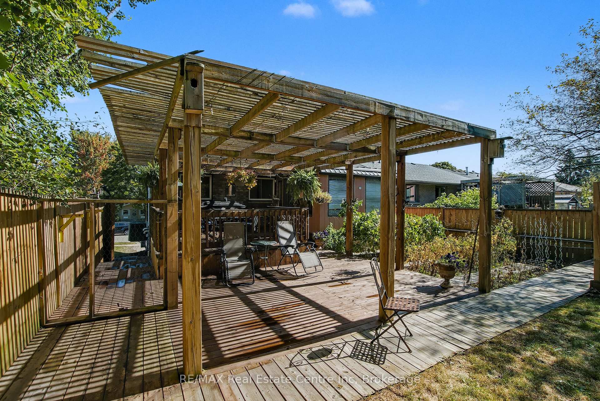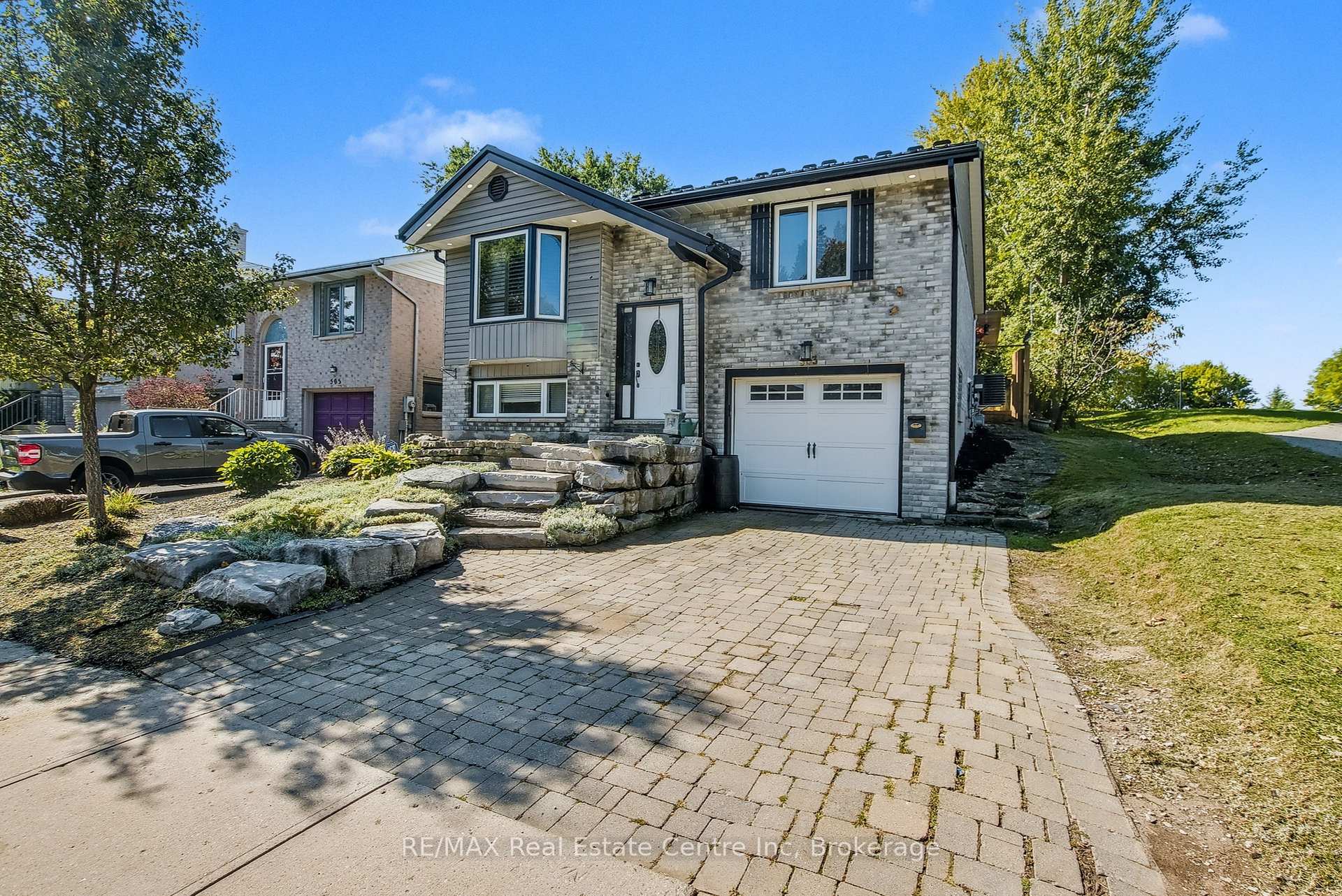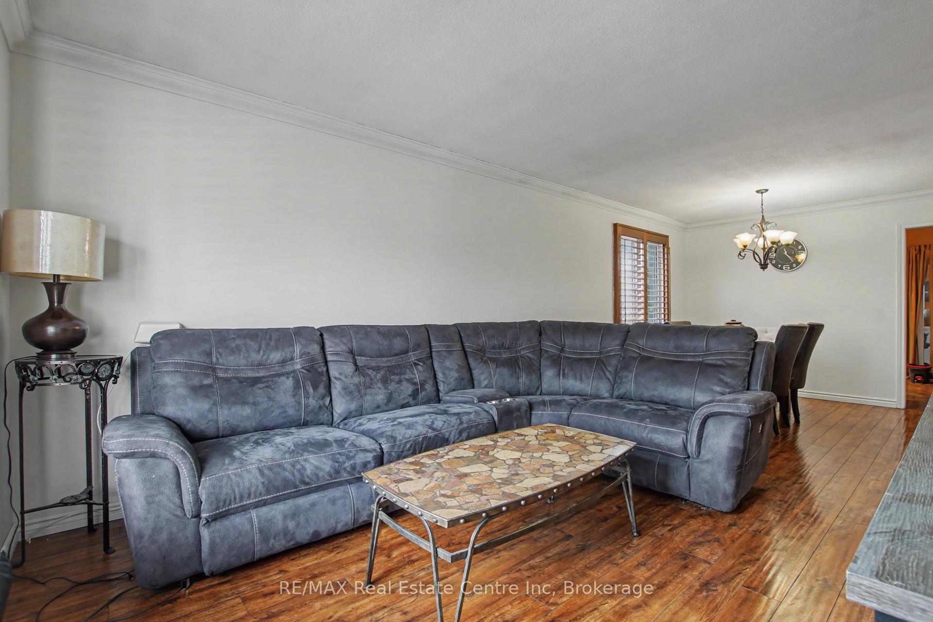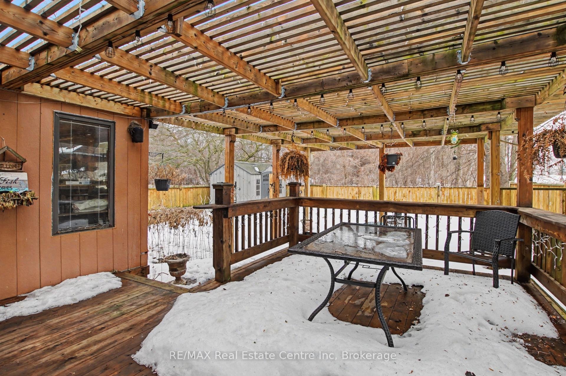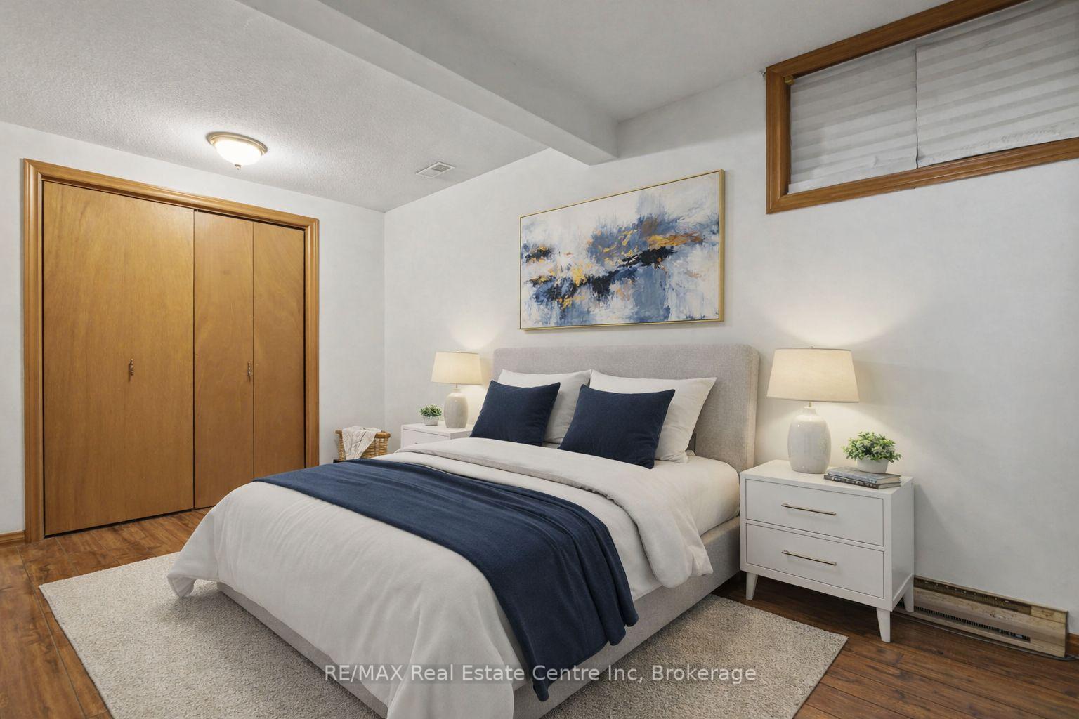 Beauty and Privacy. This house offers one of the nicest curb appeals in the area. From the interlocking driveway to the armour stone steps that lead to the front door and the white brick that is accented but the metal roof, this raised bungalow is saying home even before you enter. At night the front is lit up by it’s many pot lights. The main living space offers an open concept living and dining rooms with laminate floors. The windows are fitted with shutters for privacy but can also open to allow light to stream in. The kitchen leads to a 3 season sun room (insulated but not heated) and from there you’ll find sliding doors to the massive deck and pergola. The custom backyard is done up to allow tranquility to enjoy the stunning sunsets. The main floor also has 3 generous bedrooms with custom California closet organizers and a 4 piece bath. For additional comfort, there is a fully finished basement with a large rec room perfect for movie night or entertaining, 2 piece bath and an extra bedroom for your teenager or out-of-town guests. There is also an entrance from the garage to the house to make it easy to bring in your groceries! The central air conditioner was new in 2024. Located close to highway 24 and the Hanlon for easy commuting. Just a steps to Whitelaw Gardens Park and a short drive to Costco, Zehrs and the West End Rec Centre. *basement bedroom has been virtually staged.