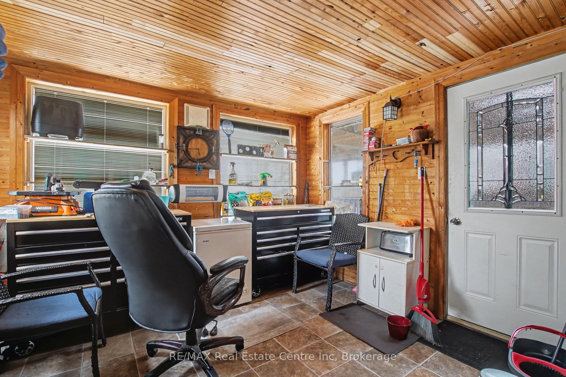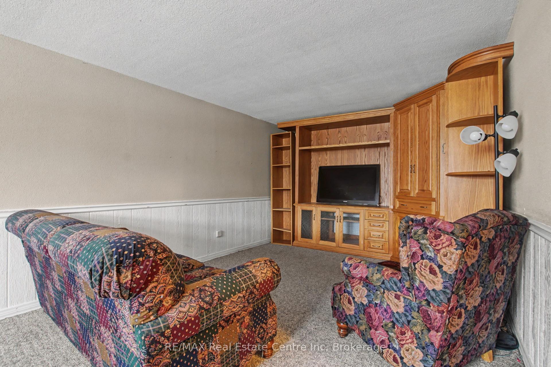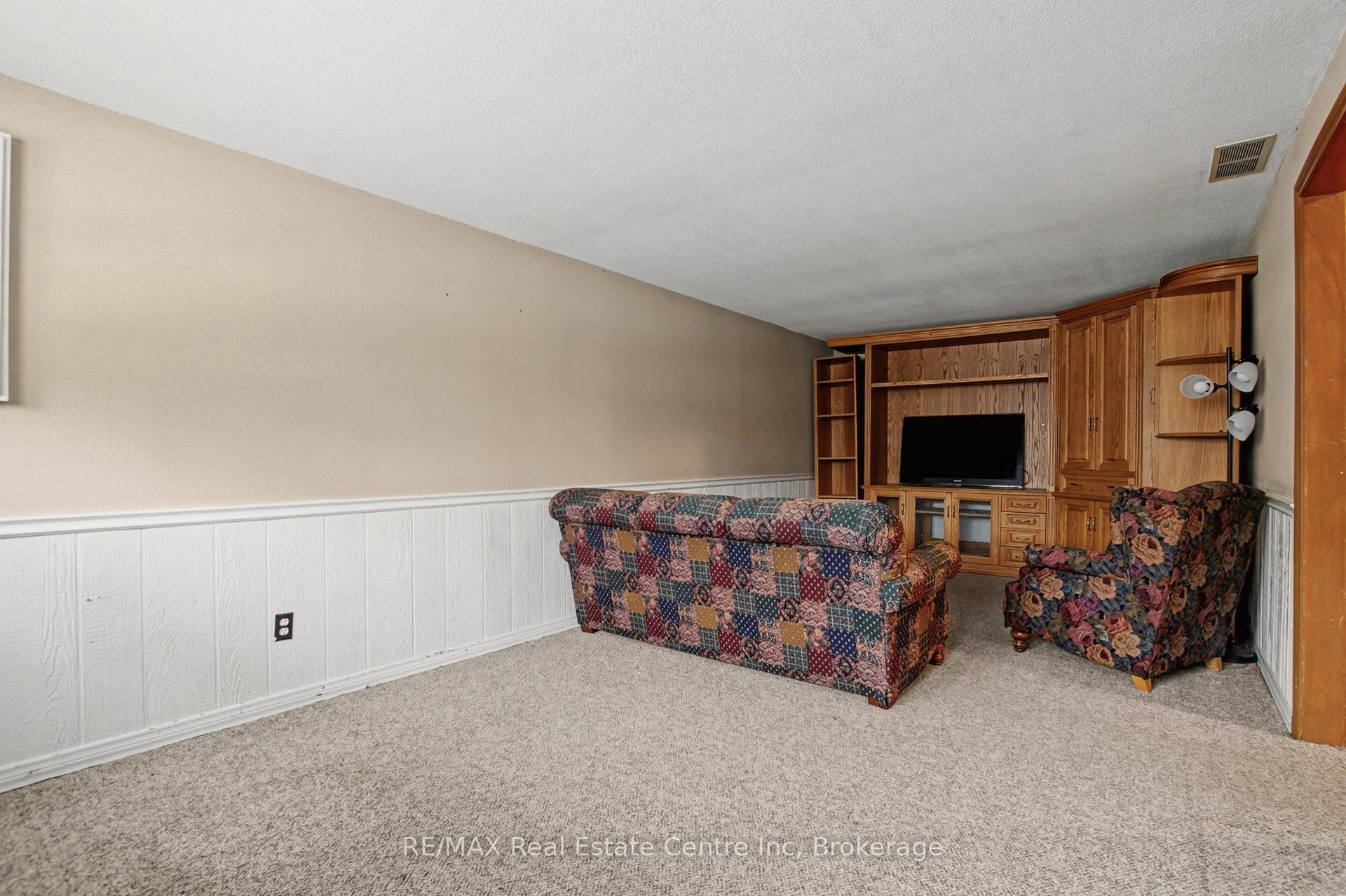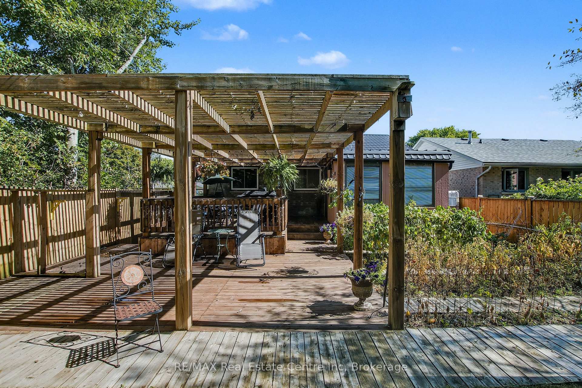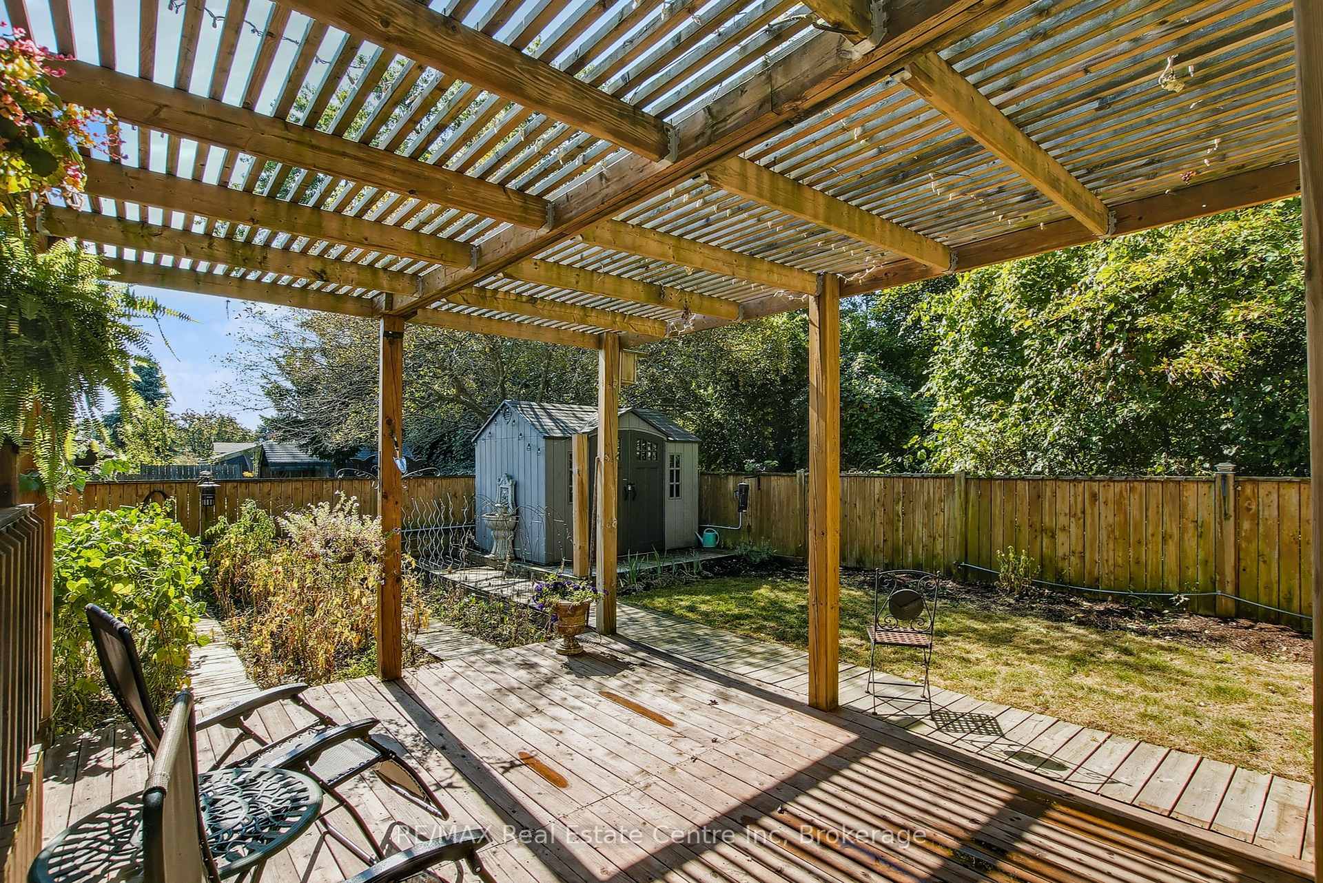 Beauty and Privacy. This house offers one of the nicest curb appeals in the area. From the interlocking driveway to the armour stone steps that lead to the front door and the white brick that is accented but the metal roof, this raised bungalow is saying home even before you enter. At night the front is lit up by it’s many pot lights. The main living space offers an open concept living and dining rooms with laminate floors. The windows are fitted with shutters for privacy but can also open to allow light to stream in. The kitchen leads to a 3 season sun room (insulated but not heated) and from there you’ll find sliding doors to the massive deck and pergola. The custom backyard is done up to allow tranquility to enjoy the stunning sunsets. The main floor also has 3 generous bedrooms with custom California closet organizers and a 4 piece bath. For additional comfort, there is a fully finished basement with a large rec room perfect for movie night or entertaining, 2 piece bath and an extra bedroom for your teenager or out-of-town guests. There is also an entrance from the garage to the house to make it easy to bring in your groceries! The central air conditioner was new in 2024. Located close to highway 24 and the Hanlon for easy commuting. Just a steps to Whitelaw Gardens Park and a short drive to Costco, Zehrs and the West End Rec Centre. *basement bedroom has been virtually staged.