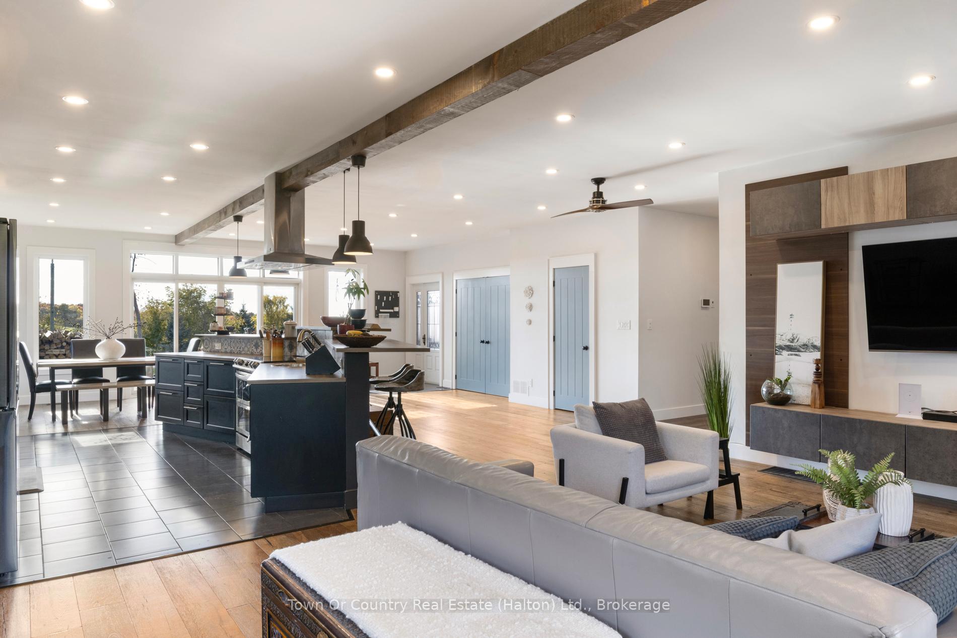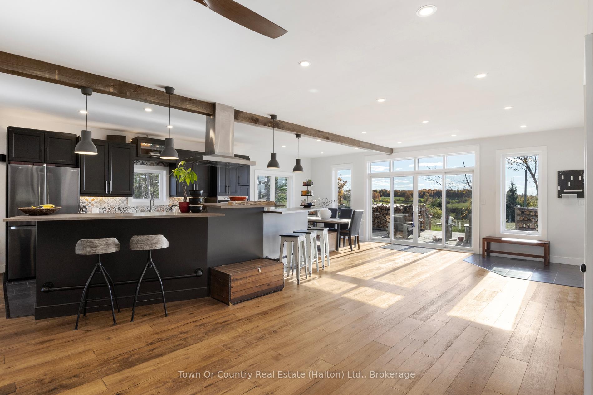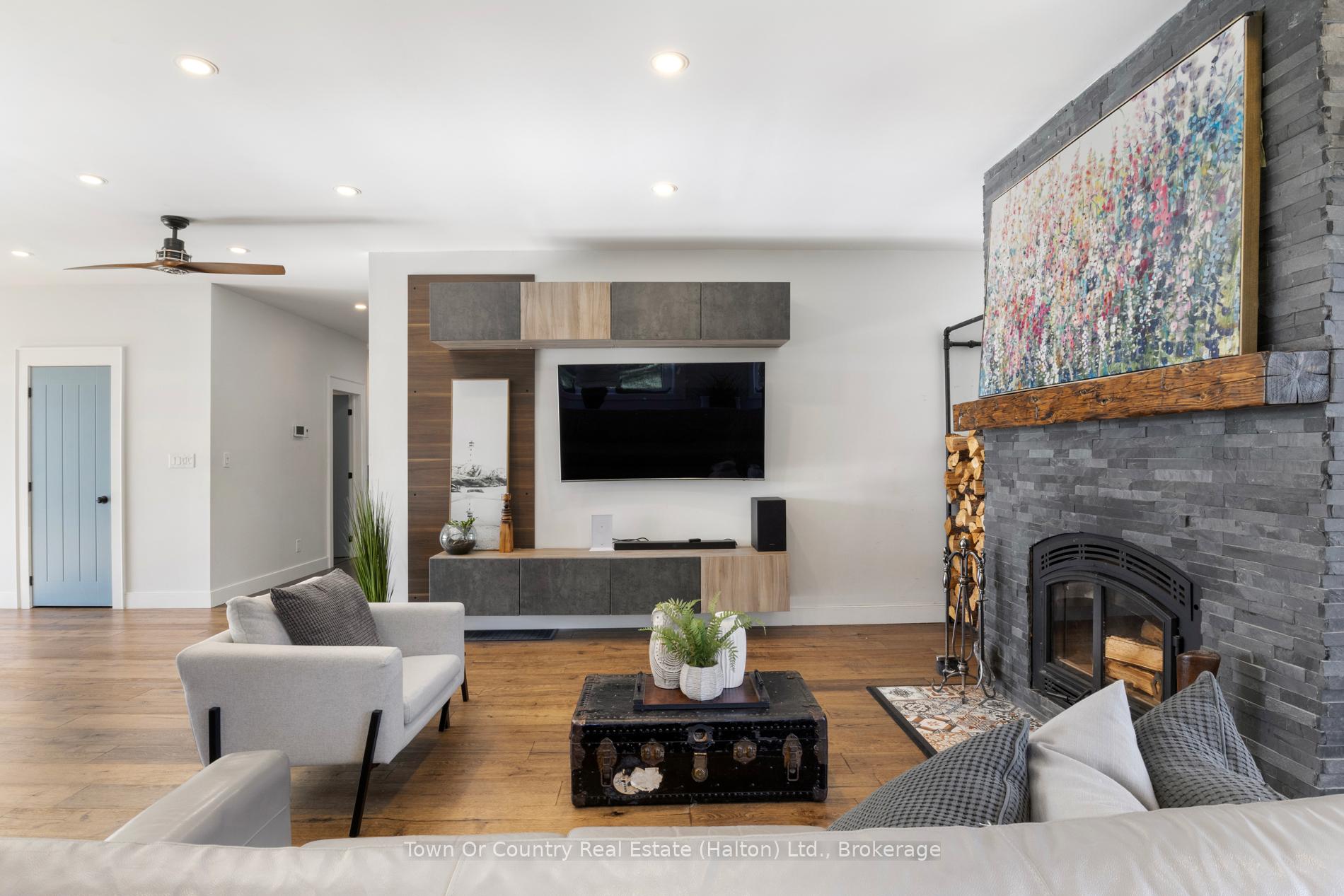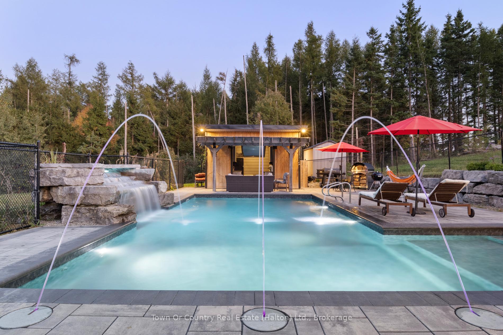 Welcome to 5041 Third Line in the south end of Erin – a custom-built 2017 bungalow set on a private 1.4-acre retreat surrounded by nature. Designed for both everyday comfort and effortless entertaining, this home offers a rare blend of space, privacy, and thoughtful design. The main floor bungalow layout is bright and open, with oversized windows that flood the home with natural light and frame peaceful views of the backyard. With 3 bedrooms, a dedicated office, and 3.5 bathrooms, the floor plan balances functionality with warmth. A striking floor-to-ceiling wood-burning fireplace, ducted into the central air system, adds both character and efficient heat. The kitchen and dining area are made for gatherings, featuring sleek appliances and room for a large family table. The fully finished walk-out basement extends the living space and functions like a second home. Complete with a family room, private office, generous storage, and a separate entrance to the side yard, it’s ideal for multi-generational living, a future in-law suite, or relaxed game and movie nights. Step outside to your own resort-style escape. The landscaped pool with rock waterfall is the centre piece of a backyard designed for both entertaining and quiet moments. Stone interlock lounging areas, a firepit, terraced hardscaping, and mature trees create exceptional privacy and a true connection to nature. Additional highlights include a heated 3-car garage and a peaceful setting that feels worlds away – yet remains just 10 minutes to groceries, shops, trails, and Tim Hortons. Whether you’re looking for a custom bungalow with a walk-out basement, a private property with a pool, or a home that adapts beautifully to changing life stages, 5041 Third Line offers a lifestyle that’s hard to replace.