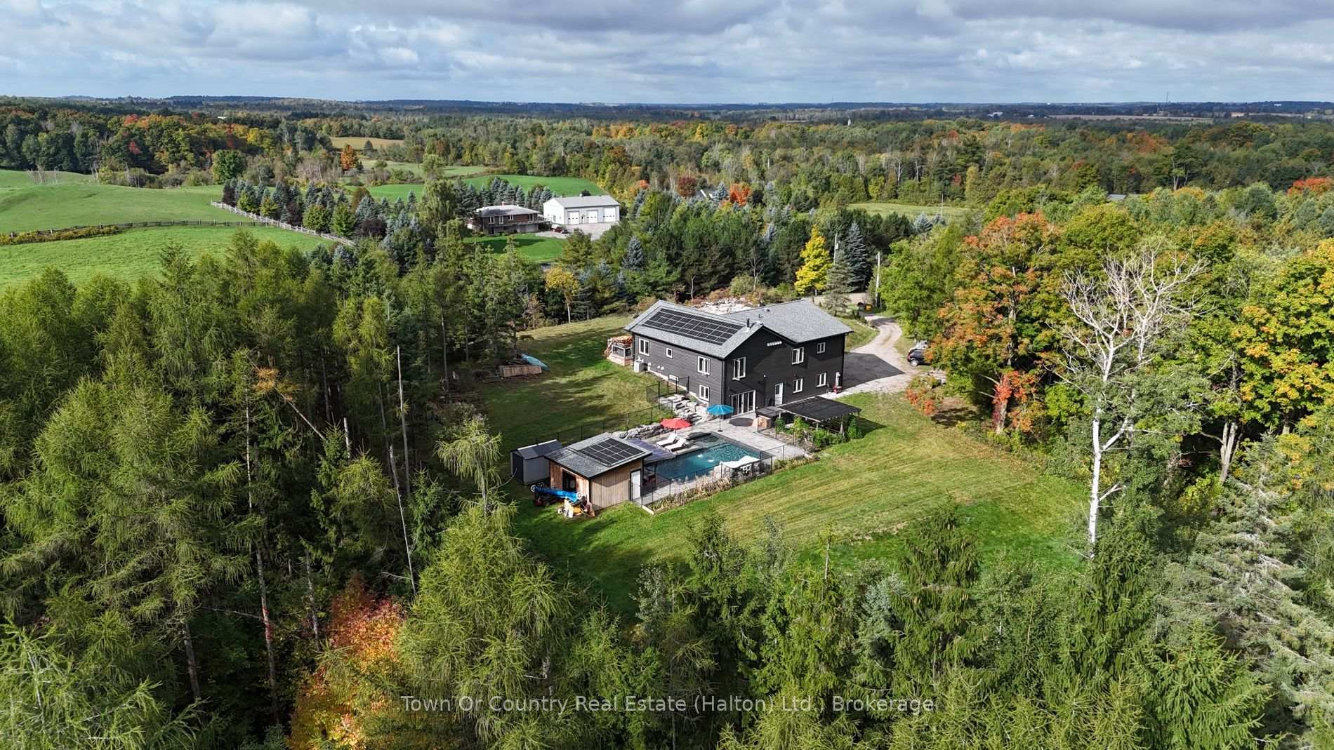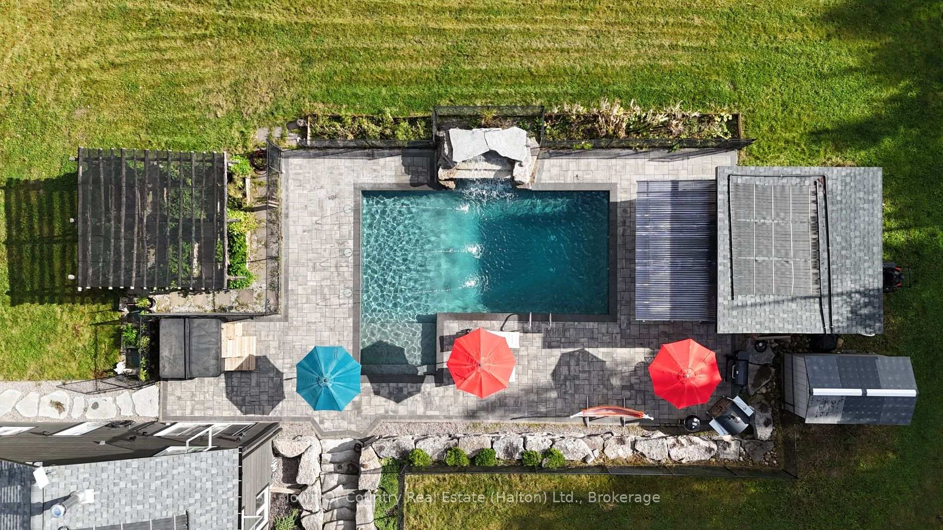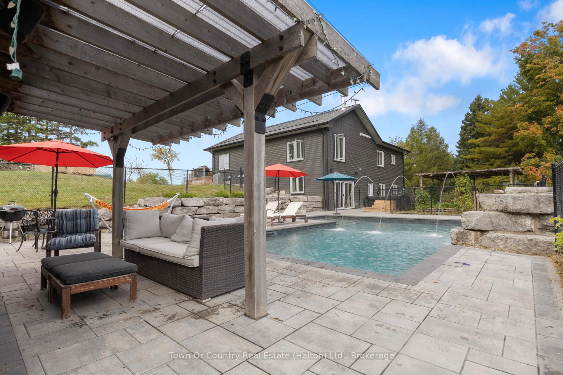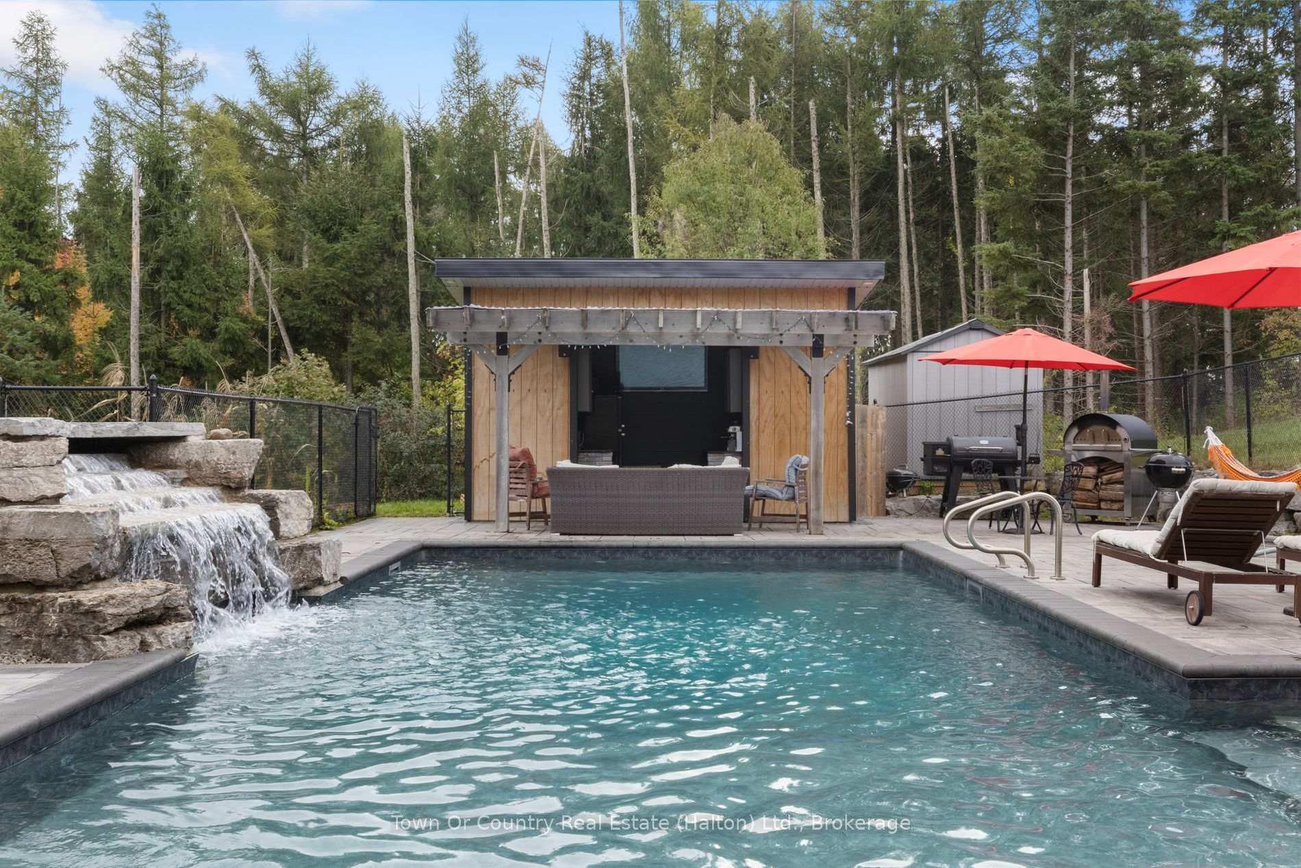 Welcome to 5041 Third Line in the south end of Erin – where comfort, style, and serenity come together on a sprawling 1.4-acre homestead tucked into nature. This custom-built 2017 bungalow blends modern elegance with warmth. With 3 bedrooms, an office, and 3.5 baths, the layout offers both space and intimacy. The main floor is bright and open, featuring oversized windows that flood the home with natural light and frame views of the private backyard. A floor-to-ceiling wood-burning fireplace, ducted into the central air, offers cozy charm and efficient heat. The kitchen and dining area are perfect for gatherings, with sleek appliances and space for an oversized family table. Downstairs, the fully finished walk-out basement feels like a home of its own – complete with a family room, private office, generous storage, and a separate entrance to the side yard. Ideal for multi-generational living, games nights, or a future in-law suite. Outside is your own private retreat: a landscaped pool with a rock waterfall, stone interlock lounging areas, and a firepit surrounded by trees. Terraced hardscaping and wooded privacy make the backyard perfect for entertaining or quiet reflection. The heated 3-car garage offers space and comfort year-round. And while this peaceful retreat feels far from it all, you’re only 10 minutes from groceries, shops, trails, and your daily coffee at Tim Hortons. Whether you’re seeking space to grow, room to host, or just a quiet place to unwind – this home truly has it all. See attachments for survey, floor plans and property details.