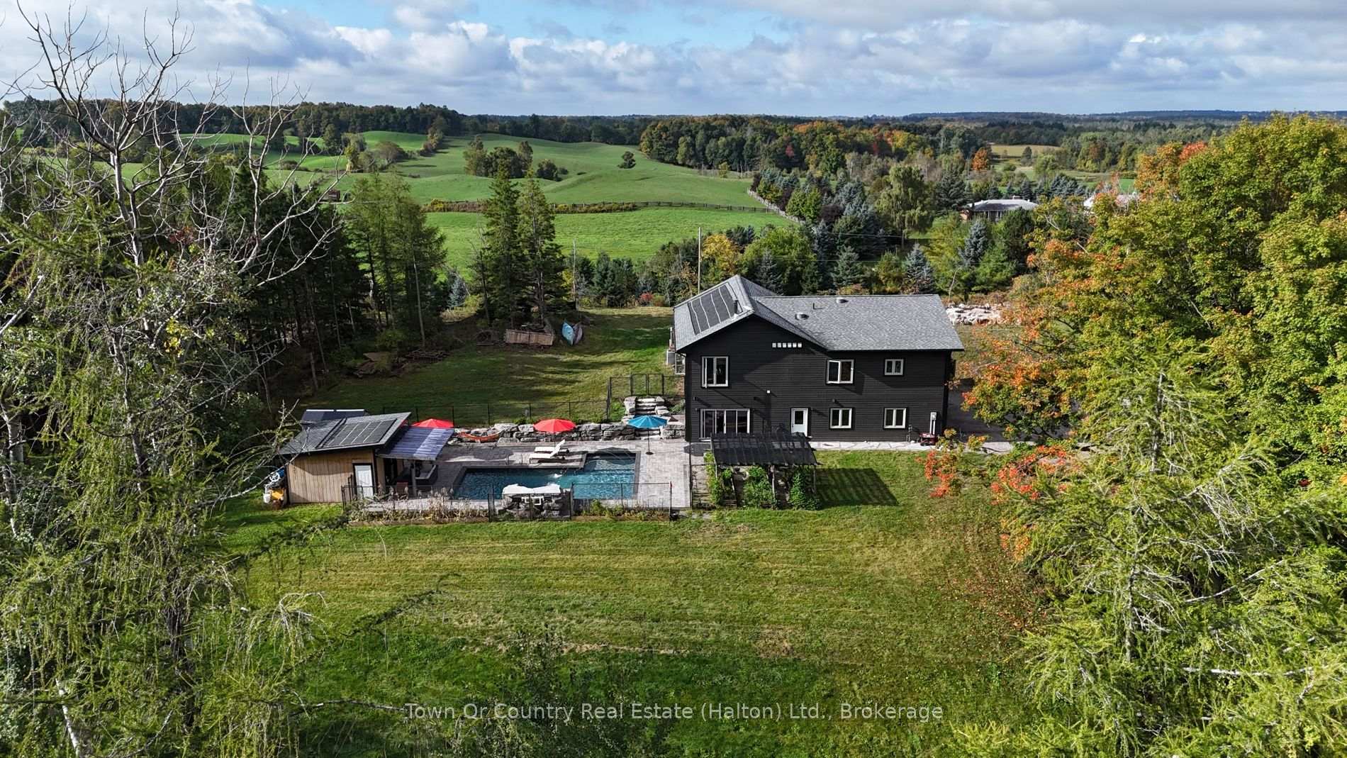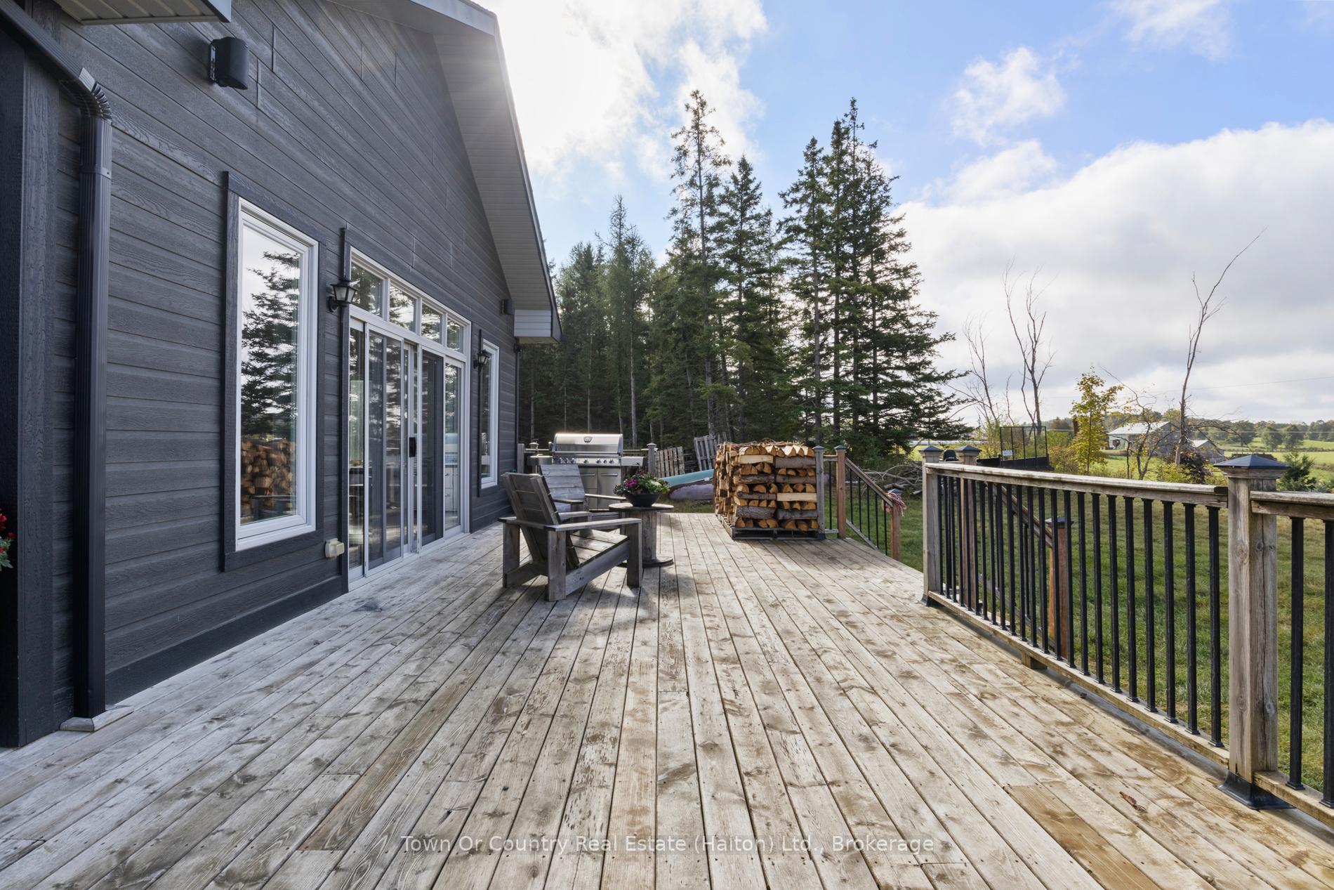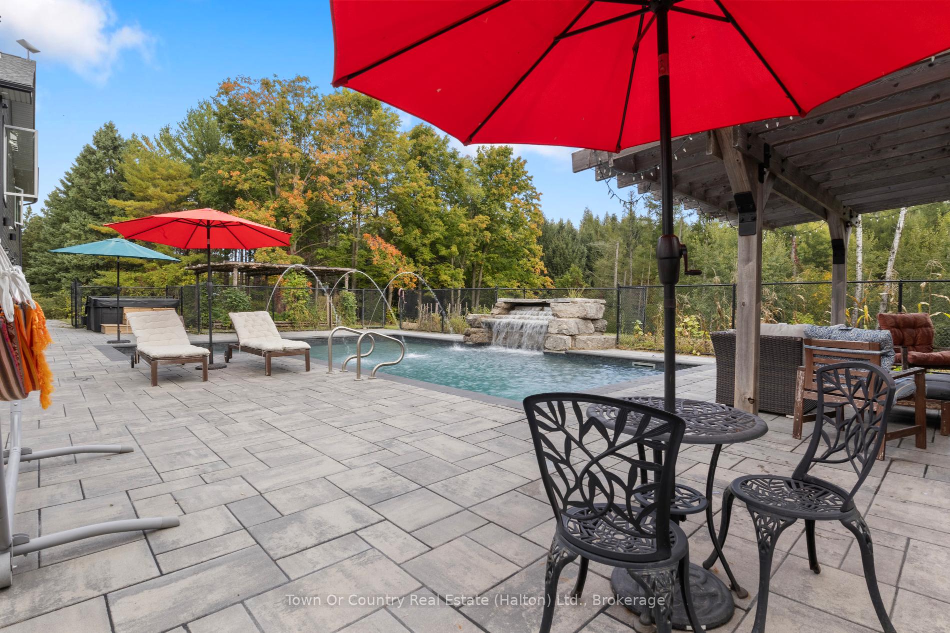 Welcome to 5041 Third Line in the south end of Erin – where comfort, style, and serenity come together on a sprawling 1.4-acre homestead tucked into nature. This custom-built 2017 bungalow blends modern elegance with warmth. With 3 bedrooms, an office, and 3.5 baths, the layout offers both space and intimacy. The main floor is bright and open, featuring oversized windows that flood the home with natural light and frame views of the private backyard. A floor-to-ceiling wood-burning fireplace, ducted into the central air, offers cozy charm and efficient heat. The kitchen and dining area are perfect for gatherings, with sleek appliances and space for an oversized family table. Downstairs, the fully finished walk-out basement feels like a home of its own – complete with a family room, private office, generous storage, and a separate entrance to the side yard. Ideal for multi-generational living, games nights, or a future in-law suite. Outside is your own private retreat: a landscaped pool with a rock waterfall, stone interlock lounging areas, and a firepit surrounded by trees. Terraced hardscaping and wooded privacy make the backyard perfect for entertaining or quiet reflection. The heated 3-car garage offers space and comfort year-round. And while this peaceful retreat feels far from it all, you’re only 10 minutes from groceries, shops, trails, and your daily coffee at Tim Hortons. Whether you’re seeking space to grow, room to host, or just a quiet place to unwind – this home truly has it all. See attachments for survey, floor plans and property details.
