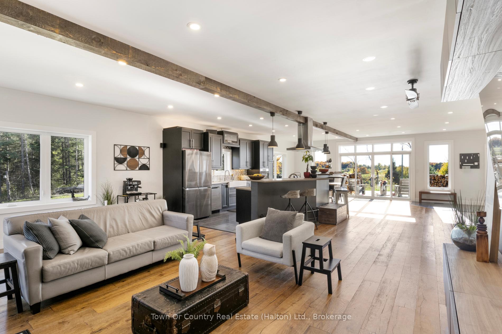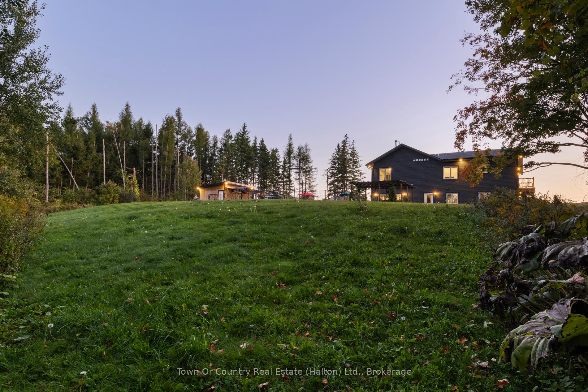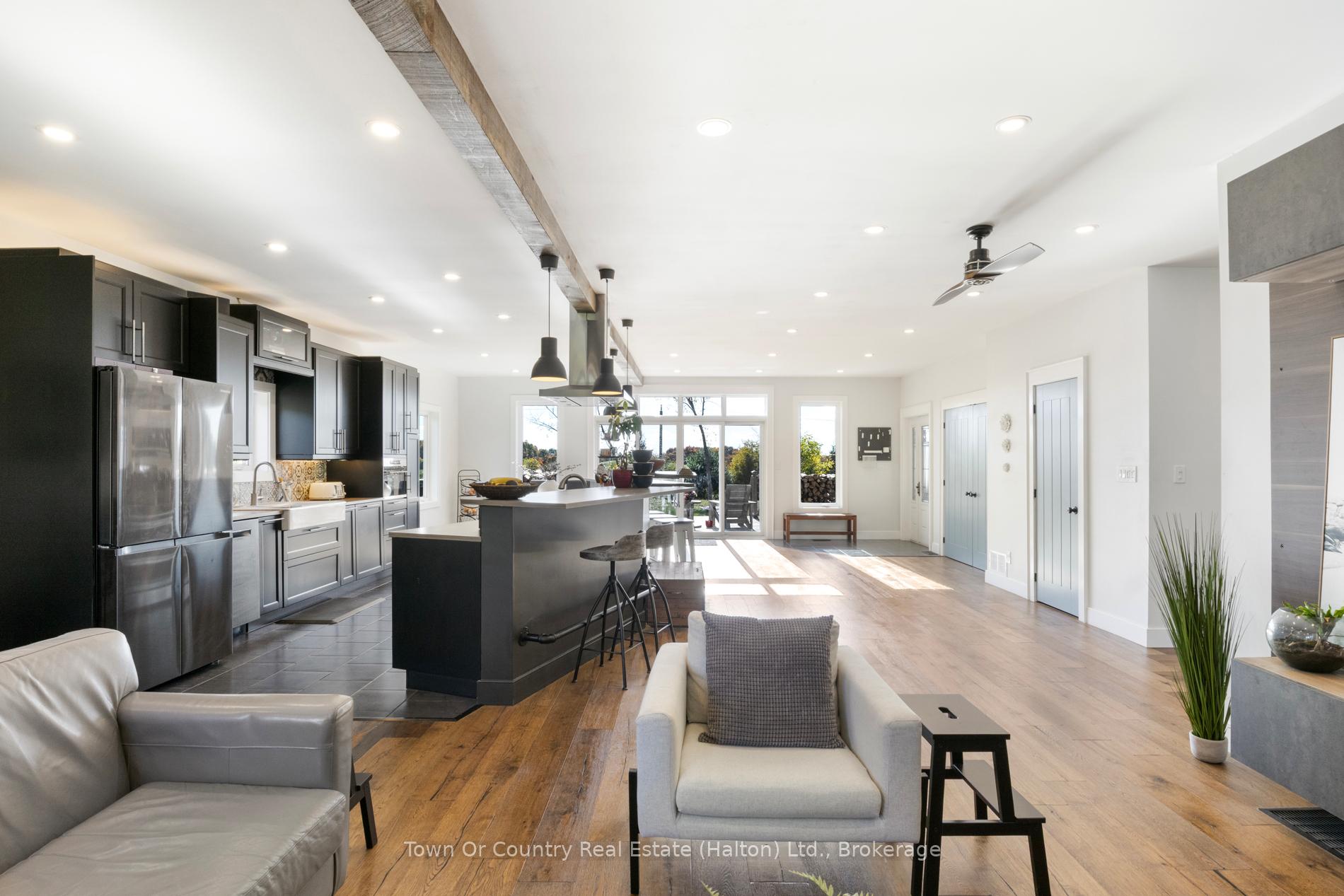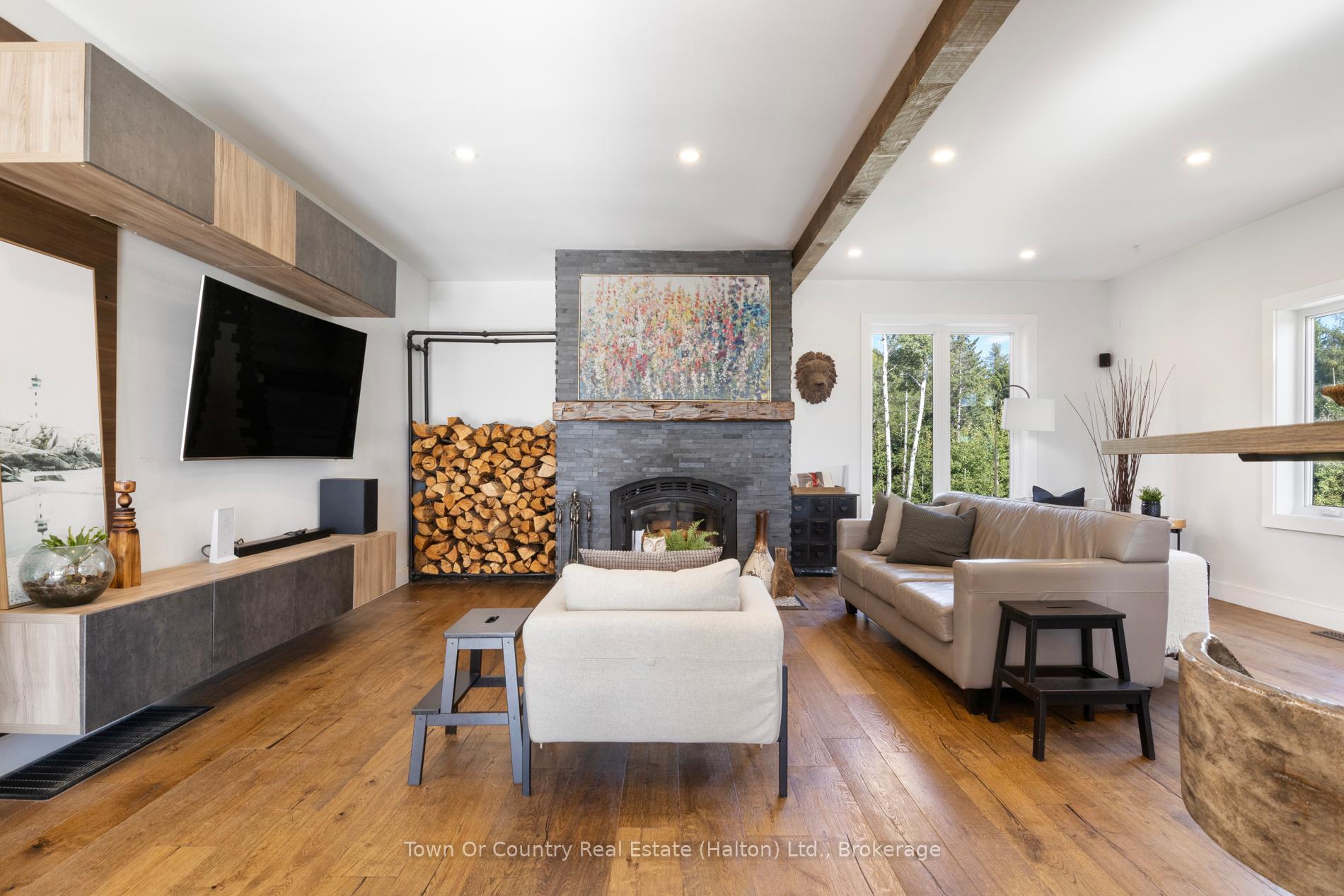 Welcome to 5041 Third Line in the south end of Erin – where comfort, style, and serenity come together on a sprawling 1.4-acre homestead tucked into nature. This custom-built 2017 bungalow blends modern elegance with warmth. With 3 bedrooms, an office, and 3.5 baths, the layout offers both space and intimacy. The main floor is bright and open, featuring oversized windows that flood the home with natural light and frame views of the private backyard. A floor-to-ceiling wood-burning fireplace, ducted into the central air, offers cozy charm and efficient heat. The kitchen and dining area are perfect for gatherings, with sleek appliances and space for an oversized family table. Downstairs, the fully finished walk-out basement feels like a home of its own – complete with a family room, private office, generous storage, and a separate entrance to the side yard. Ideal for multi-generational living, games nights, or a future in-law suite. Outside is your own private retreat: a landscaped pool with a rock waterfall, stone interlock lounging areas, and a firepit surrounded by trees. Terraced hardscaping and wooded privacy make the backyard perfect for entertaining or quiet reflection. The heated 3-car garage offers space and comfort year-round. And while this peaceful retreat feels far from it all, you’re only 10 minutes from groceries, shops, trails, and your daily coffee at Tim Hortons. Whether you’re seeking space to grow, room to host, or just a quiet place to unwind – this home truly has it all. See attachments for survey, floor plans and property details.