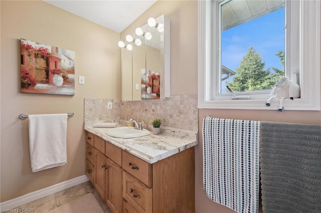 Discover perfect blend of country serenity & city convenience at 5044 Whitelaw Rd! Charming 3+3 bdrm custom-built Deterco brick bungalow on 1.26 acres W/long tree-lined driveway guiding you to a home perfect for large or multi-generational families. Step through dbl front doors into grand foyer W/soaring ceilings, elegant lighting & dbl closet. Expansive eat-in kitchen W/newer S/S appliances, abundant cabinetry, breakfast bar seating & seamless flow into dining area W/vaulted ceilings & wall-to-wall windows offering countryside views. Living room W/hardwood, wood beam accent & natural light streaming through oversized windows. Primary bdrm W/hardwood, multiple windows & 4pc ensuite. 2 add’l bdrms share 4pc bath while main-floor laundry & 2pc bath add everyday convenience. Finished bsmt (2017) expands living space W/3 more bdrms, modern 4pc bath, rec room & sauna W/sep entrance, making it ideal for multi-generational living or potential to convert into an income suite! Outside enjoy a fenced (2021) above-ground 24ft pool surrounded by expansive decking overlooking open fields. Add’l 10 X 16ft deck for BBQs and dining & (2020) concrete exposed stone patio & walkway. Ample parking W/extra-deep 21 X 24ft garage W/sep entrance to bsmt & owned 18 X 160ft laneway. Parking in front of shed is rented for $355/mth for add’l income. Upgrades: rangehood 2025, floors in kitchen, living & dining refinished 2025, dining & foyer chandeliers 2025, septic cleaned 2024, kitchen sink & faucet 2023, kitchen lighting 2022, water softener 2022, water filtration 2022, dishwasher 2021, front door, sliding door, master window, office window 2020, AC 2019, rest of appliances 2017, add’l electrical panel 2017, roof 2016. Home offers VanEE air exchanger & fully covered well protected against the elements. Less than 5-min to Costco, West End Rec Centre, restaurants & more. 10-min to downtown, 15-min to Cambridge & quick 401 access. Perfect blend of country living W/every amenity close at hand!