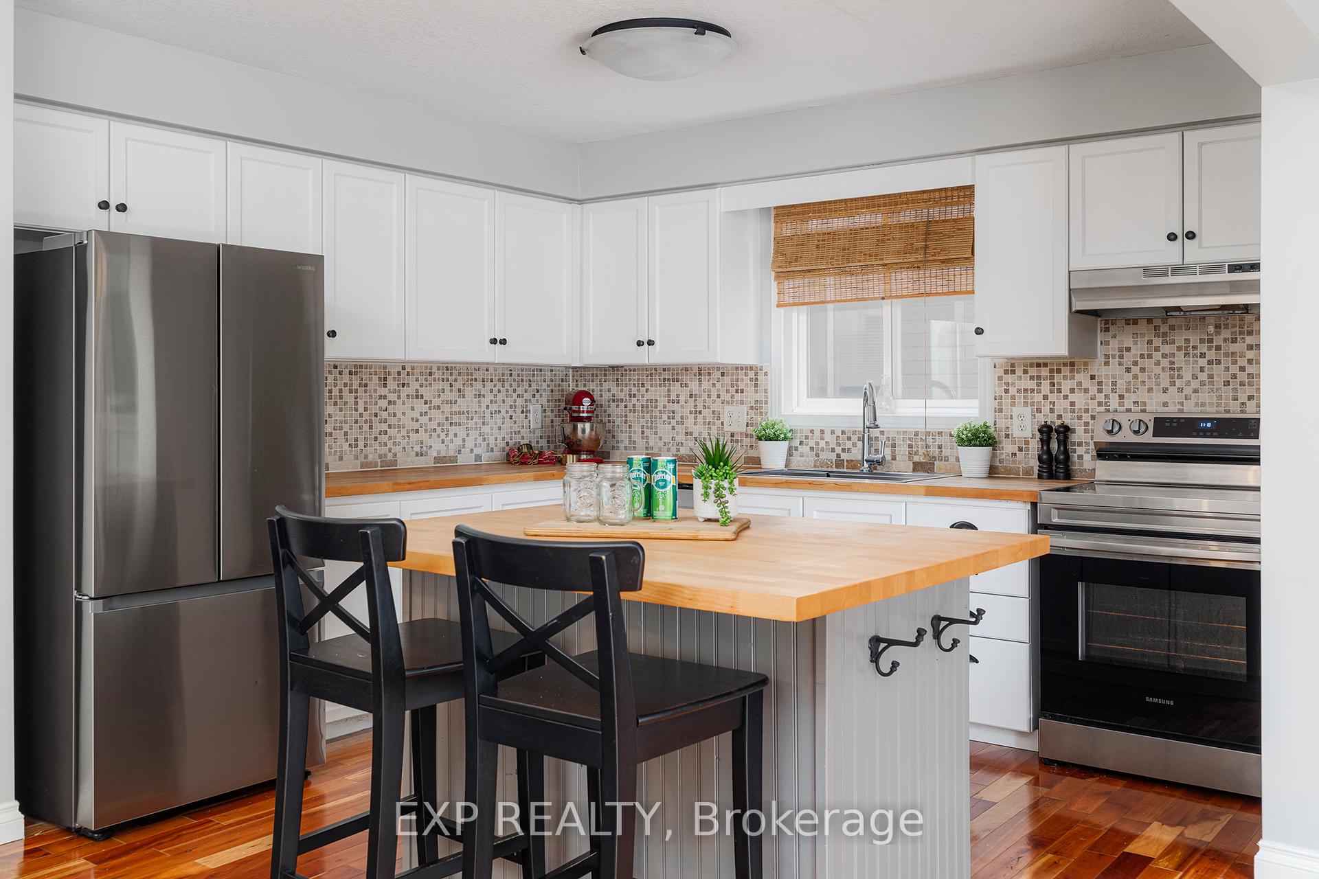 A Rare Find in Laurelwood, Waterloo Nestled on a quiet crescent in one of Waterloos most sought-after family neighbourhoods, this beautifully maintained detached home in Laurelwood is a must-see. Located just steps from top-rated schools Laurel Heights Secondary, Laurelwood P.S., and St. Nicholas and minutes to both Wilfrid Laurier and the University of Waterloo, its ideal for families and professionals alike. Step inside to a warm, functional layout featuring custom built-in storage in the entry, a refreshed 2-piece bath, and garage access. The open-concept main floor impresses with brand-new stainless steel appliances (2022), new countertops, and a central island that flows into a sunlit dining area. The cozy living room boasts custom wall-to-wall bookcases, a fireplace, and large windows leading to a private backyard oasis. The outdoor space is truly special a deep, landscaped lot with mature trees and shrubs offers a peaceful retreat. Enjoy summer evenings on the spacious 20×16 wood deck, perfect for entertaining or unwinding. An 8×12 pine shed provides extra storage or workshop potential. Nature enthusiasts will love being close to Laurel Creek Conservation Area offering trails, swimming, campsites, and picnic spots year-round. Upstairs, the vaulted-ceiling primary bedroom features double closets, while second-floor laundry adds everyday convenience. The finished basement extends the living space with a generous family room and an updated 2-piece bath. With nearly 2,000 sq. ft. of finished living space, 2017 roof, insulated garage, and thoughtful updates throughout, this lovingly cared-for home checks every box.