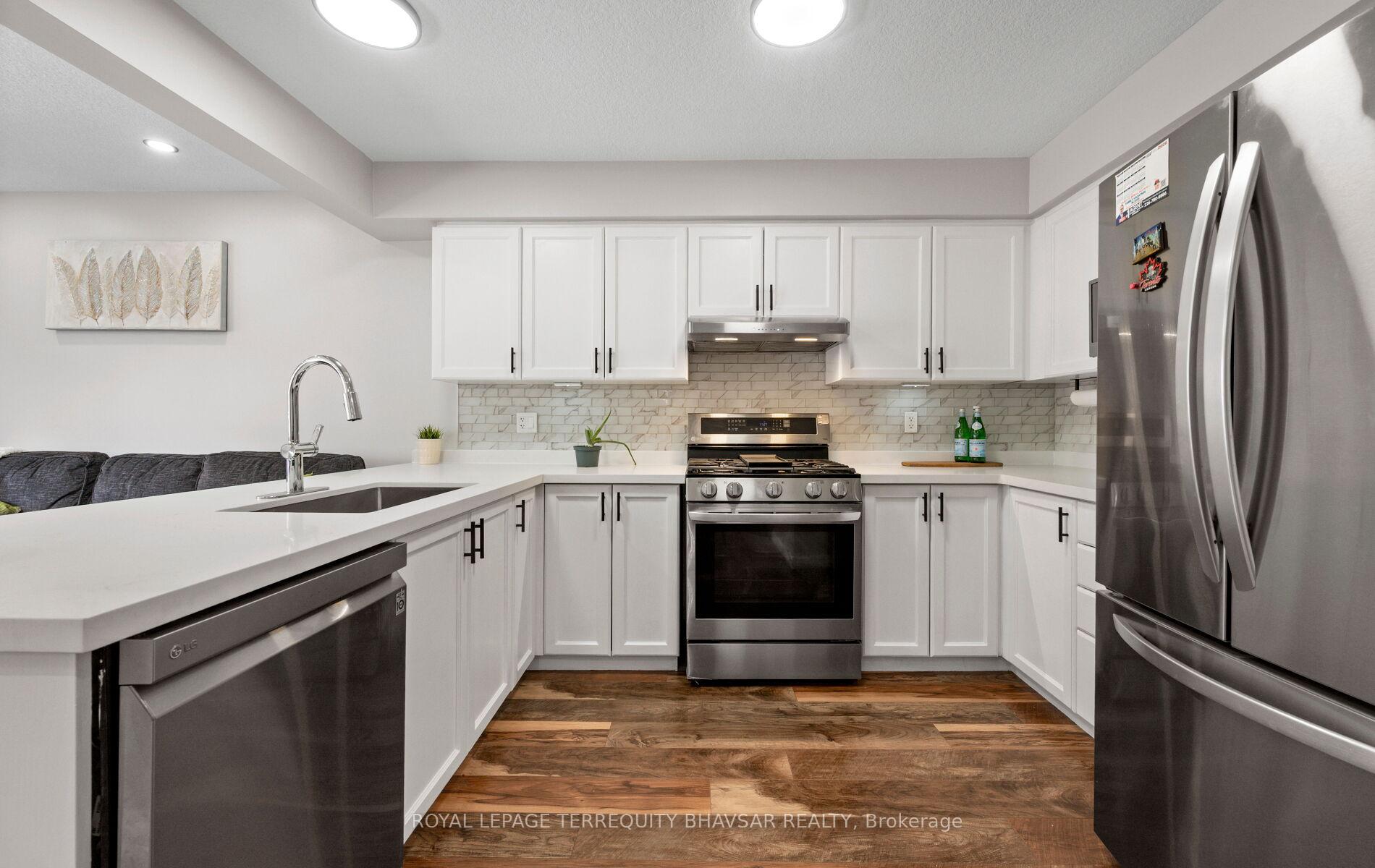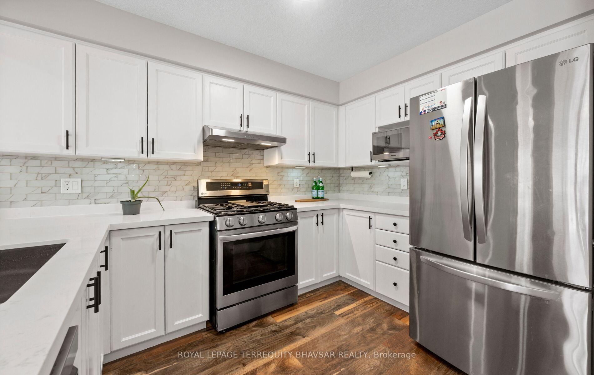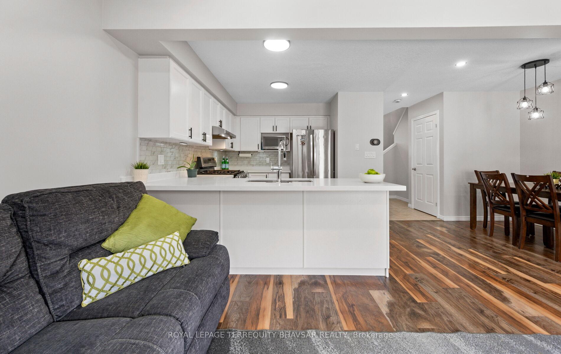 Welcome to this beautifully updated freehold townhouse in the heart of Kitchener-where style, comfort, and convenience come together effortlessly. Professionally cleaned and freshly painted, this 3-bedroom, 3-bathroom home is truly move-in ready. The brand new renovated kitchen is a showstopper, featuring elegant quartz countertops, sleek stainless steel appliances, and a gas stove that will impress any home chef. Wide plank laminate flooring flows seamlessly across the main floor, enhanced by new LED lighting and modern pot lights that create a bright and inviting atmosphere. The open-concept living and dining area is filled with natural light from large windows throughout, offering the perfect space for entertaining or relaxing with family. Step out from the main floor to a lovely backyard deck-ideal for summer BBQs or morning coffee. A welcoming front porch adds charm and curb appeal, while the foyer provides direct access to the garage for everyday convenience. Upstairs, you’ll find spacious bedrooms designed with comfort in mind. The primary suite features a walk-in closet and a private ensuite bath, creating the perfect retreat at the end of the day. The well-lit, generously sized basement offers endless possibilities-home gym, office, rec room, or all three if you’re feeling ambitious. Located just minutes from parks, top-rated schools, shopping plazas, the hospital, public transit, and major highways, this home checks every box for families, professionals, and investors alike. A turnkey opportunity in a fantastic location-just unpack and start living.