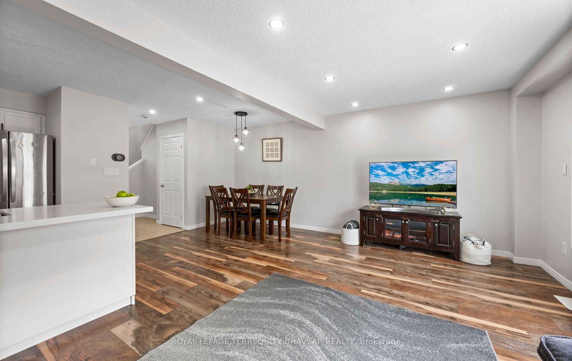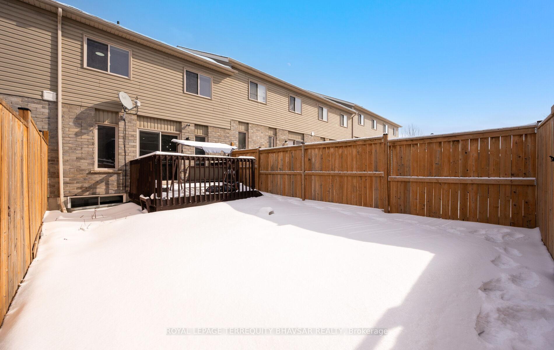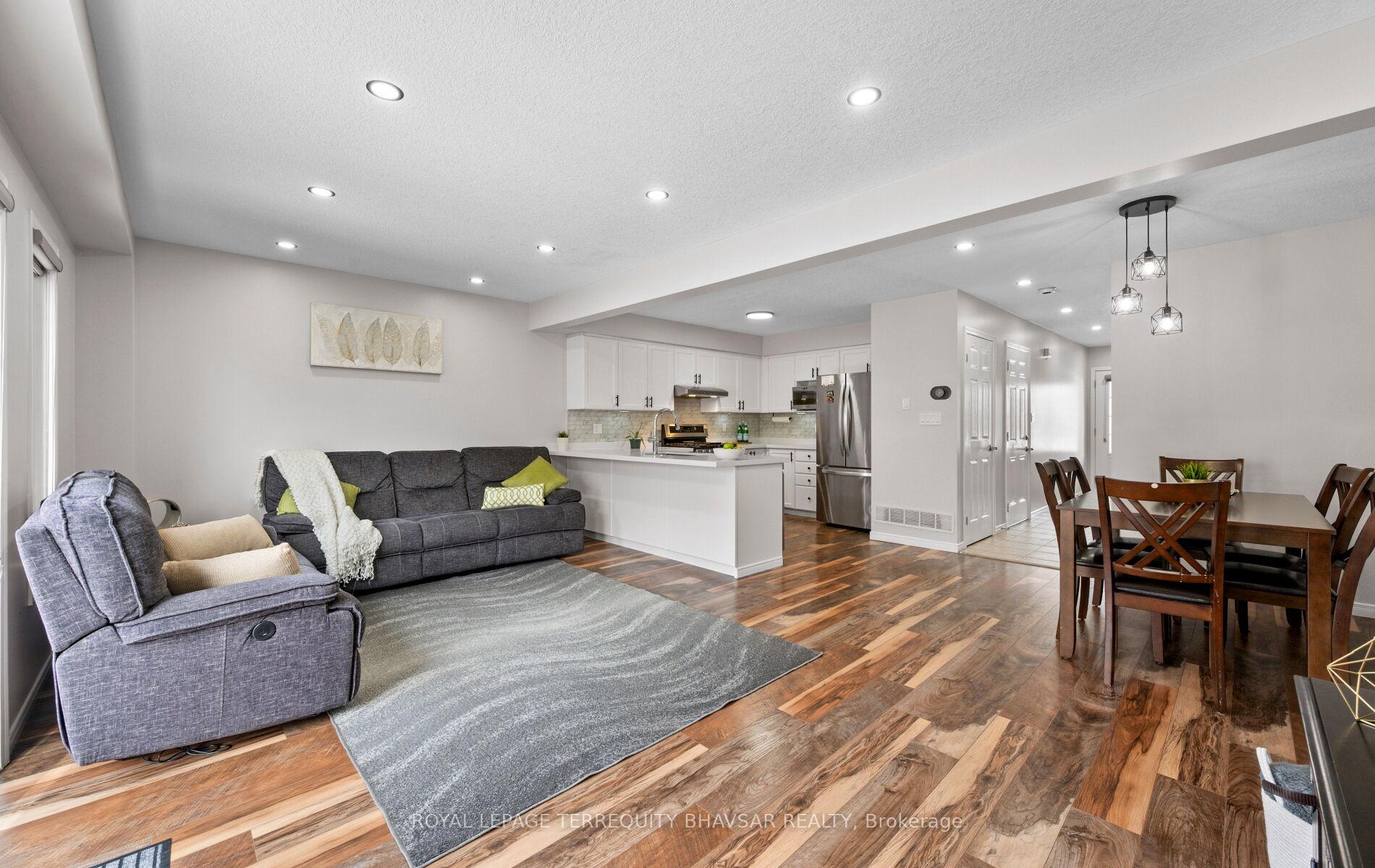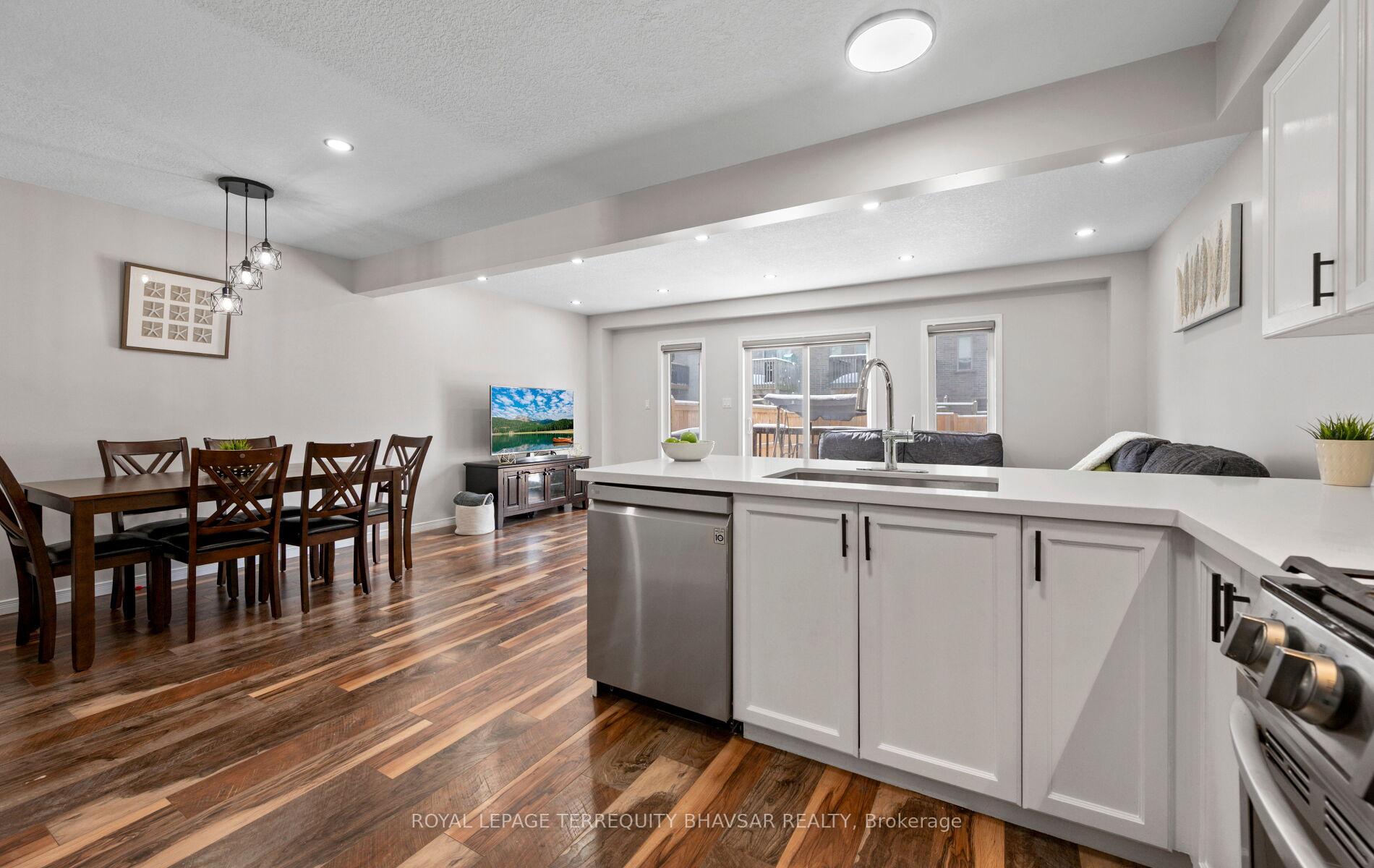 Welcome to this beautifully updated freehold townhouse in the heart of Kitchener-where style, comfort, and convenience come together effortlessly. Professionally cleaned and freshly painted, this 3-bedroom, 3-bathroom home is truly move-in ready. The brand new renovated kitchen is a showstopper, featuring elegant quartz countertops, sleek stainless steel appliances, and a gas stove that will impress any home chef. Wide plank laminate flooring flows seamlessly across the main floor, enhanced by new LED lighting and modern pot lights that create a bright and inviting atmosphere. The open-concept living and dining area is filled with natural light from large windows throughout, offering the perfect space for entertaining or relaxing with family. Step out from the main floor to a lovely backyard deck-ideal for summer BBQs or morning coffee. A welcoming front porch adds charm and curb appeal, while the foyer provides direct access to the garage for everyday convenience. Upstairs, you’ll find spacious bedrooms designed with comfort in mind. The primary suite features a walk-in closet and a private ensuite bath, creating the perfect retreat at the end of the day. The well-lit, generously sized basement offers endless possibilities-home gym, office, rec room, or all three if you’re feeling ambitious. Located just minutes from parks, top-rated schools, shopping plazas, the hospital, public transit, and major highways, this home checks every box for families, professionals, and investors alike. A turnkey opportunity in a fantastic location-just unpack and start living.