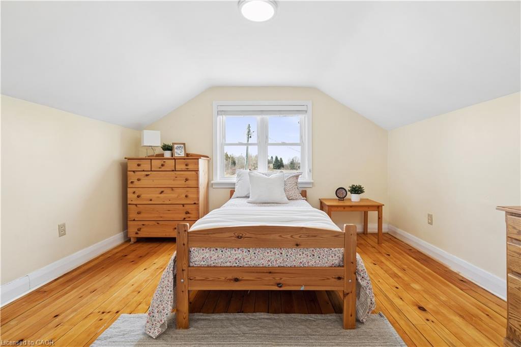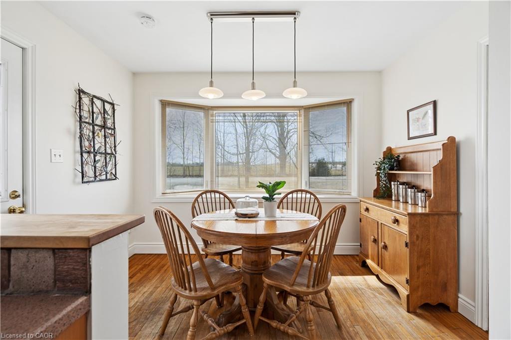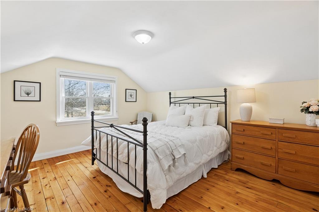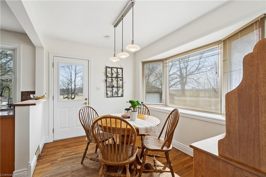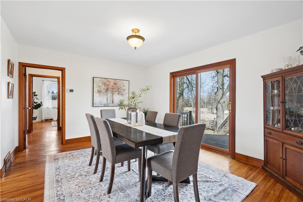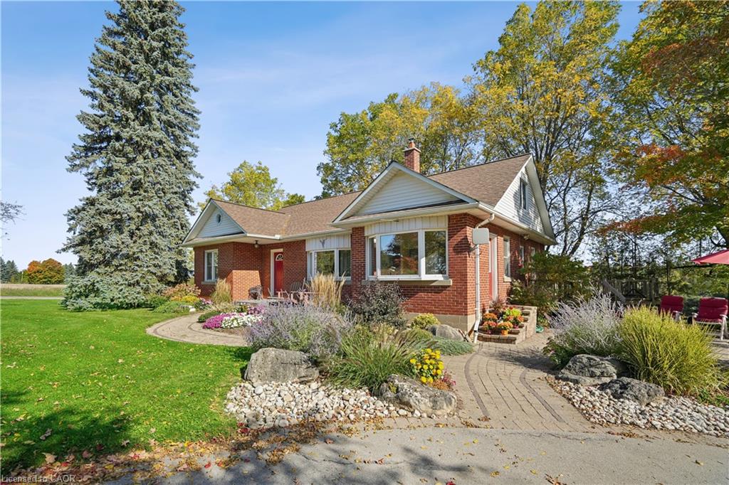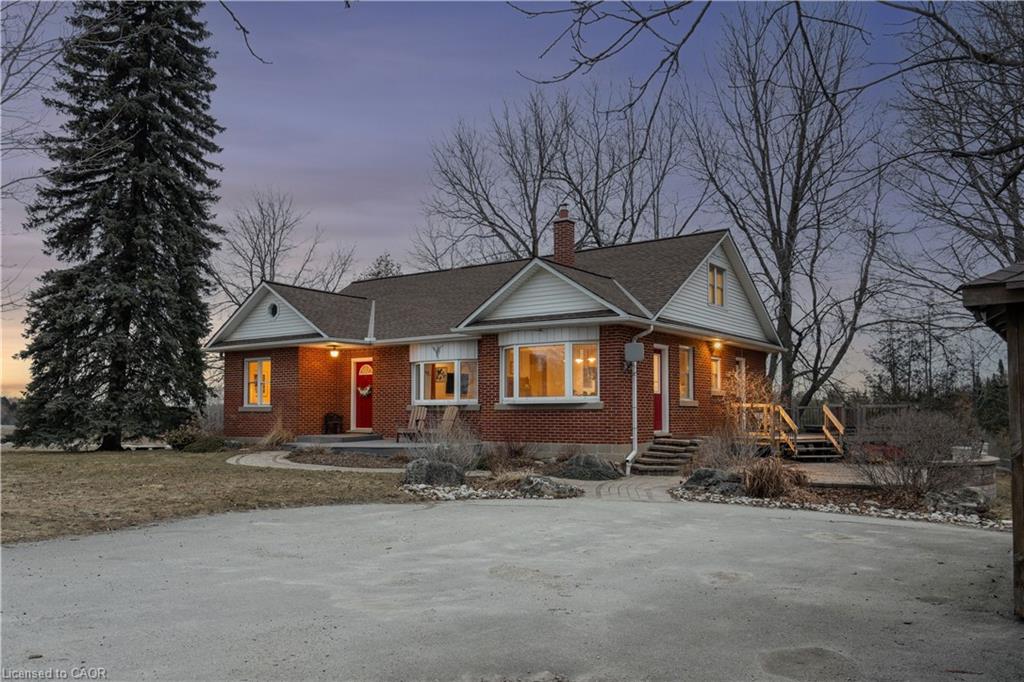 Looking for a peaceful country home with space to grow, without sacrificing convenience? This is it. Welcome to 5099 First Line in Erin, a beautifully maintained 4-bedroom home set on a picturesque 0.50-acre corner lot, offering the perfect blend of rural charm and commuter-friendly access. Ideally located just minutes to Acton, 20 minutes to Highway 401, and 20 minutes to Guelph, this home delivers the lifestyle you’ve been searching for without giving up connectivity. Originally built in 1950 and freshly painted throughout, this home combines timeless character with modern comfort. Step inside to find warm hardwood floors, sun-filled living spaces, and a functional layout designed for everyday family living. The main floor features two spacious bedrooms, a bright 3-piece bathroom, and a welcoming living room with pot lights and a beautiful bay window. The eat-in kitchen is the heart of the home, offering generous cabinetry, a charming bay window, and convenient side entrance access. Just off the kitchen, the dining area walks out to the deck, creating the perfect space for gatherings and indoor-outdoor entertaining. Upstairs, you’ll find two additional bedrooms with hardwood flooring, a cozy reading nook, and a 2-piece bathroom, ideal for growing families or guests. Outside, enjoy the space and privacy that only country living can offer. The half-acre lot provides endless possibilities, from gardening to entertaining, while the stone patio and deck create inviting outdoor living areas. A detached garage and parking for three vehicles add everyday convenience. Additional highlights include: Energy-efficient geothermal heating and cooling system, Well and septic for rural independence, Unfinished basement ready for your customization and Quiet corner lot with scenic surroundings. Live the lifestyle you’ve been dreaming of. Peaceful mornings, open space, and quick access to everything you need.