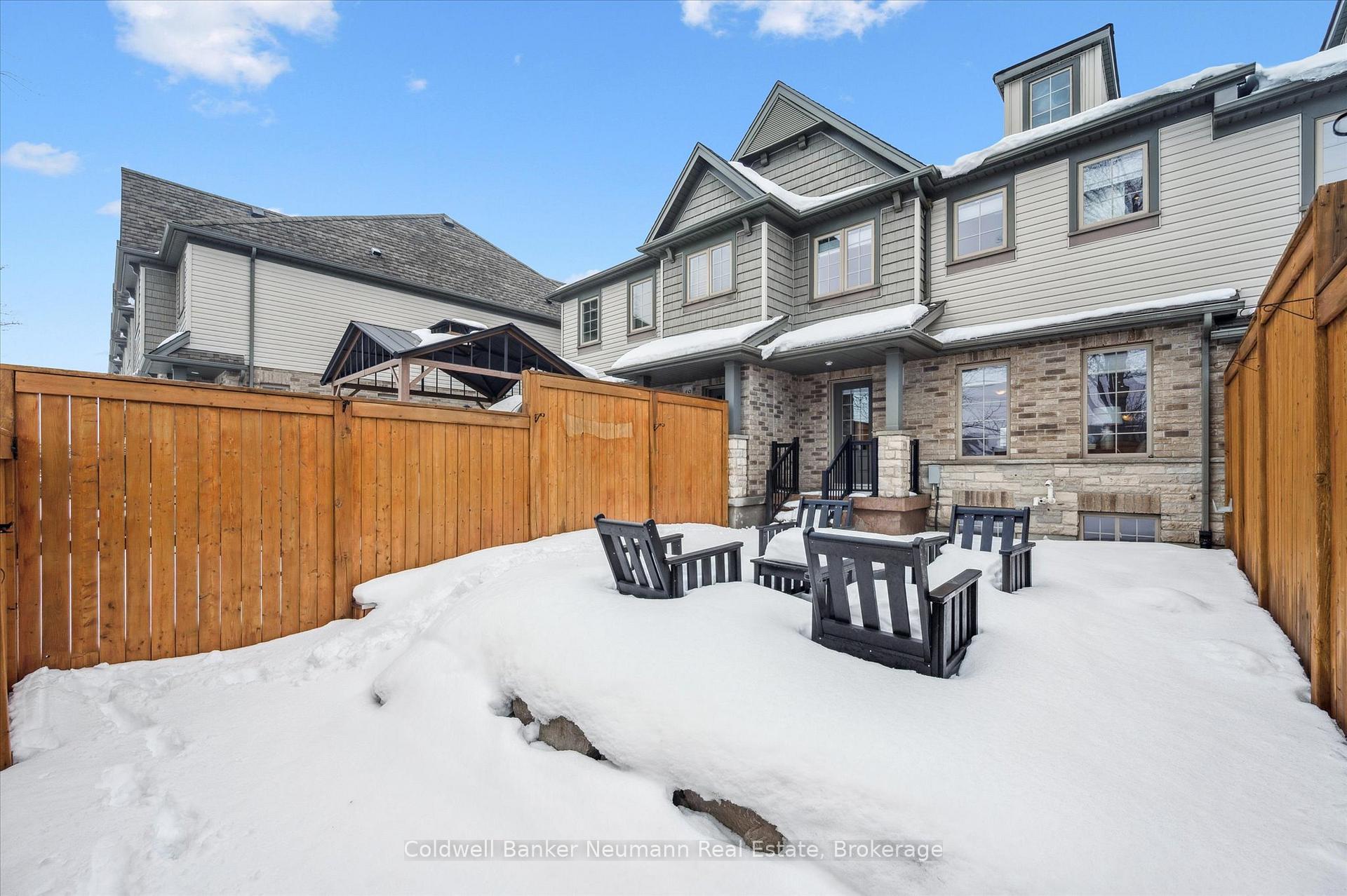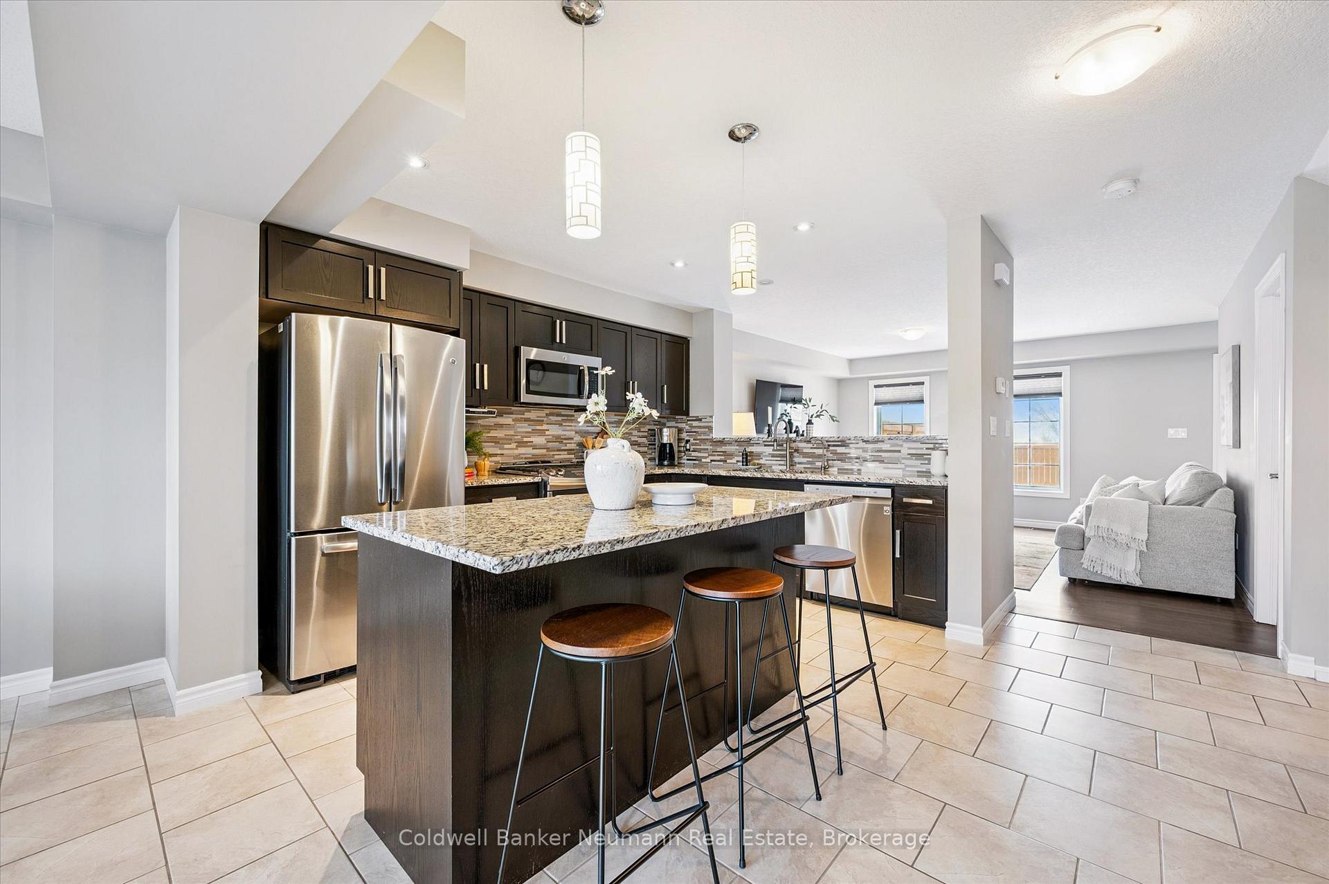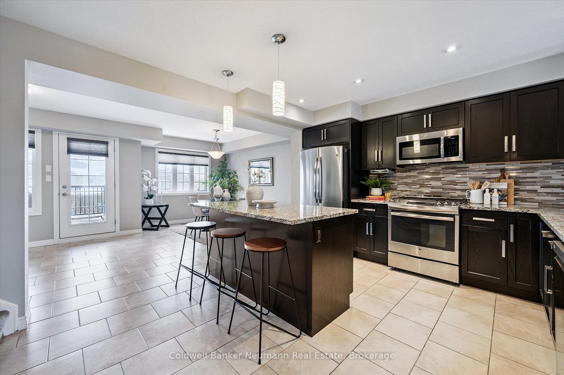 Welcome to this beautifully finished executive freehold townhouse that blends modern style with everyday comfort. Designed with intention and upgraded throughout, this home offers a polished, turnkey lifestyle with spaces that feel both inviting and functional .At the heart of the home is a thoughtfully designed gourmet kitchen featuring granite countertops, custom soft-close cabinetry with maple interiors, an undermount sink, pantry storage, pot lighting, and a sleek over-the-range microwave/rangehood combo. The oversized island creates a natural gathering place and opens seamlessly into the living area with a built-in electric fireplace, along with a flexible dining or den space ideal for entertaining or relaxing. The upper level offers three spacious bedrooms and two full bathrooms, providing comfort and privacy for family or guests. Additional powder rooms add convenience across multiple levels, making the layout as practical as it is appealing. Outdoor living is just as impressive. The fully fenced backyard has been carefully designed to feel private and refined, highlighted by a patterned concrete patio and armour stone retaining wall – an ideal setting for quiet evenings or hosting friends. Standout features include custom Levelor top-down/bottom-up blinds, upgraded 200-amp electrical service, a gas BBQ line, balcony access from the dining area, and a long list of quality finishes that elevate the entire home. This is a standout property offering upgraded living, thoughtful design, and exceptional indoor-outdoor flow – ready to be enjoyed from day one.