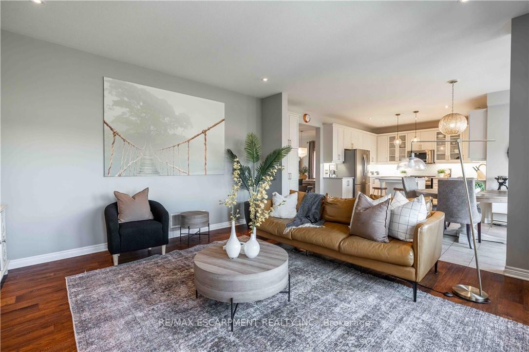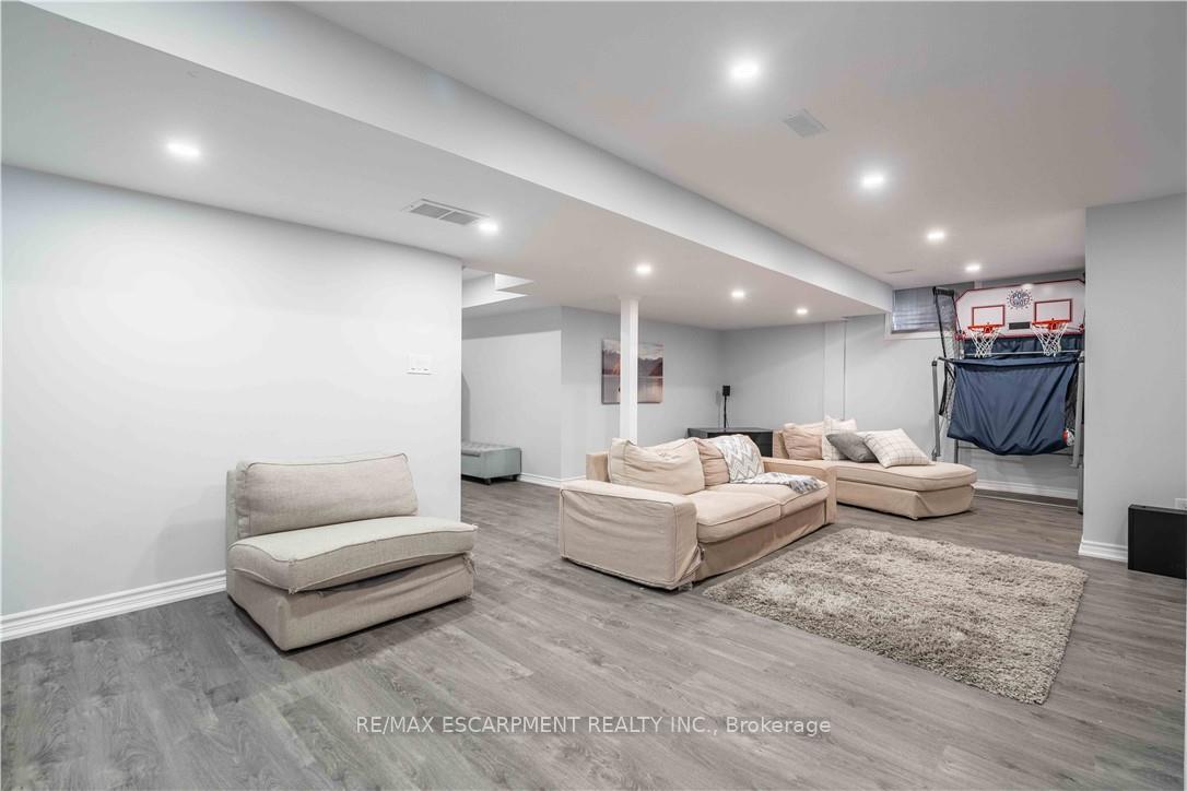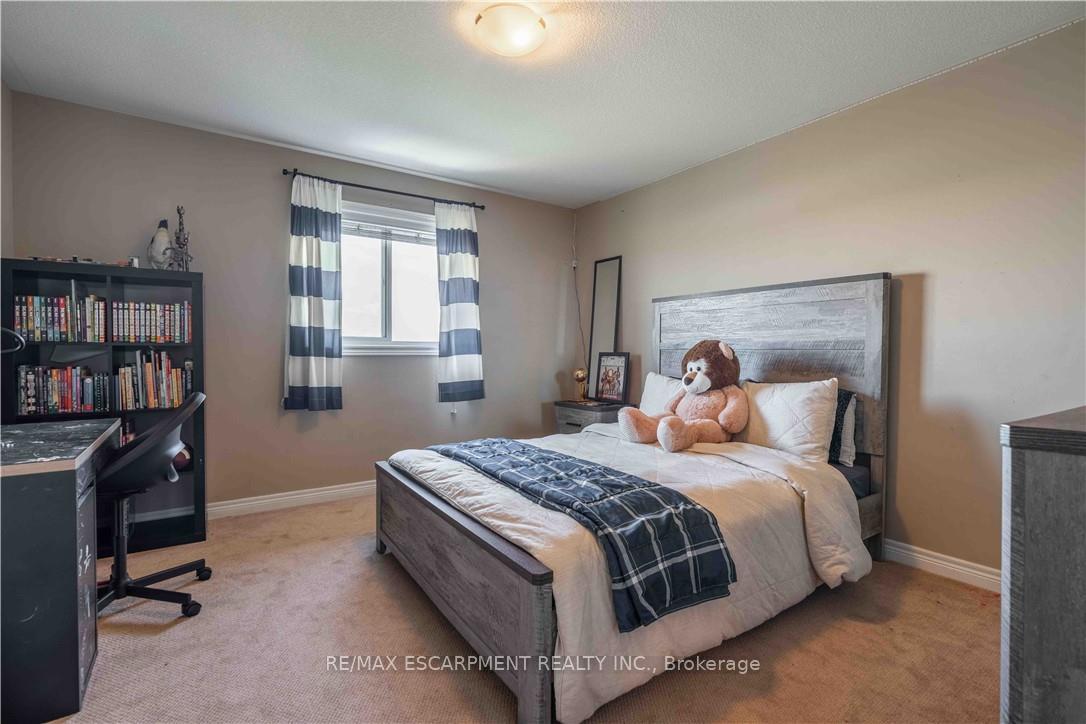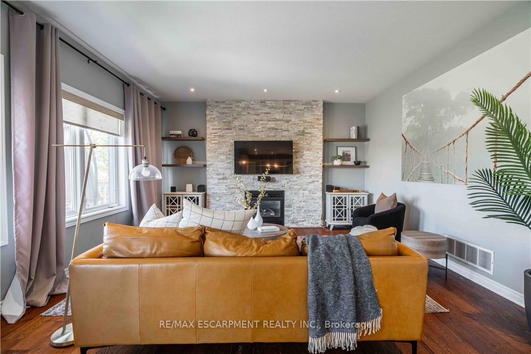 Location! Location! Prepare to be impressed with the beautiful family home in Summit Park, backing ontoschool playground areas (no rear neighbours!), this sought-after home is expertly finished top-to-bottominside and out. Crafted by DeSantis Multi-Area Developments in 2011, this spacious home features newlysurfaced double car drive, excellent curb appeal and a shiny steel roof! Step in to the home majestic frontporch entry accented with exposed aggregate to experience soaring ceilings, central staircase and openconcept main level. Main level presents is open concept with soaring ceilings, generous rooms, gasfireplace in Family Room and huge windows to experience the greenspace beyond. Chefs kitchen boastscentre island, stainless appliances, ample counter space and more. Lovely family-sized deck is accessedfrom the dinette area. completing this level are laundry room, powder room and access to garage. Upperlevel features 4 large bedrooms with oversized Primary Bedroom complete with 4 piece bath (soaker tub)and walk-in closet. 3 other bedrooms share the main 4-pc bath. Basement is fully finished with FamilyRoom, 3-pc bath, bedroom, Storage and utility areas. Home is fenced and borders community walk-wayto school/park areas. An ideal blend of luxury, style and functionality for the discerning buyer family. Justminutes to schools, shops, dining, and the Red Hill Expressway. It has it all – ready for you!