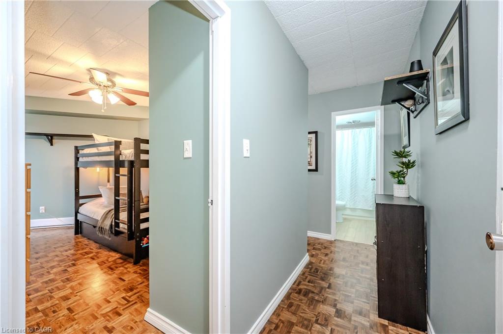 Welcome to Unit #511 at 105 Conroy Crescent in Guelph, a charming and well-kept condominium offering 823 square feet of comfortable living space. Nestled within a friendly, vibrant community, this unit is ideal for those seeking both convenience and tranquility. Inside, you’ll find warm hardwood flooring throughout, creating a cozy and inviting ambiance all year round. The kitchen is thoughtfully equipped with stainless steel appliances, including a built-in microwave hood fan, dishwasher, refrigerator, and a double oven/stove perfect for everyday cooking or entertaining guests. Step out onto your private balcony to enjoy a quiet moment or unwind at the end of the day. The building also provides convenient access to laundry facilities and plenty of parking. Monthly condo fees include essential services and maintenance, ensuring stress-free living. Located in a desirable neighbourhood, this home is surrounded by lush green spaces, scenic trails, shopping, schools, and excellent public transit options. Whether you’re a first-time homebuyer or looking to downsize, this welcoming unit offers a wonderful opportunity to enjoy both nature and city amenities. Don’t miss your chance to make it yours!