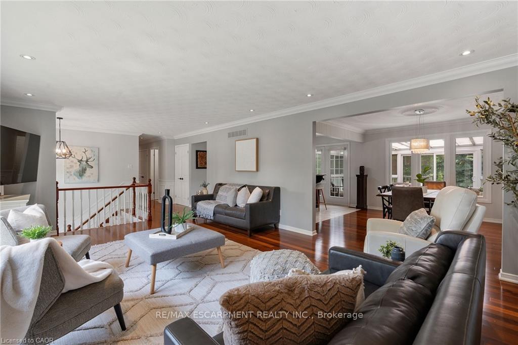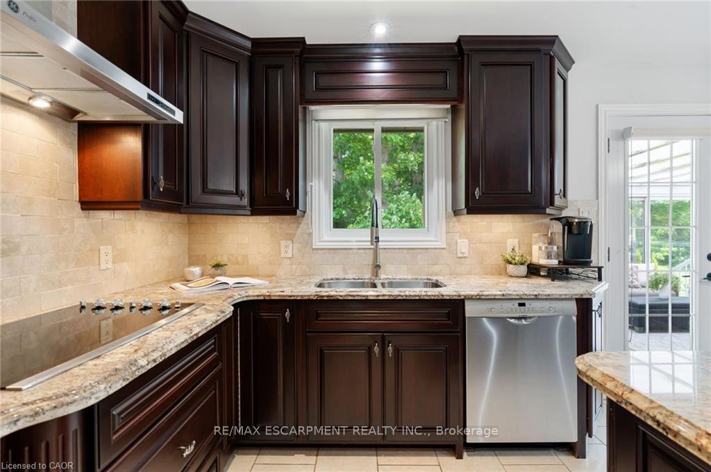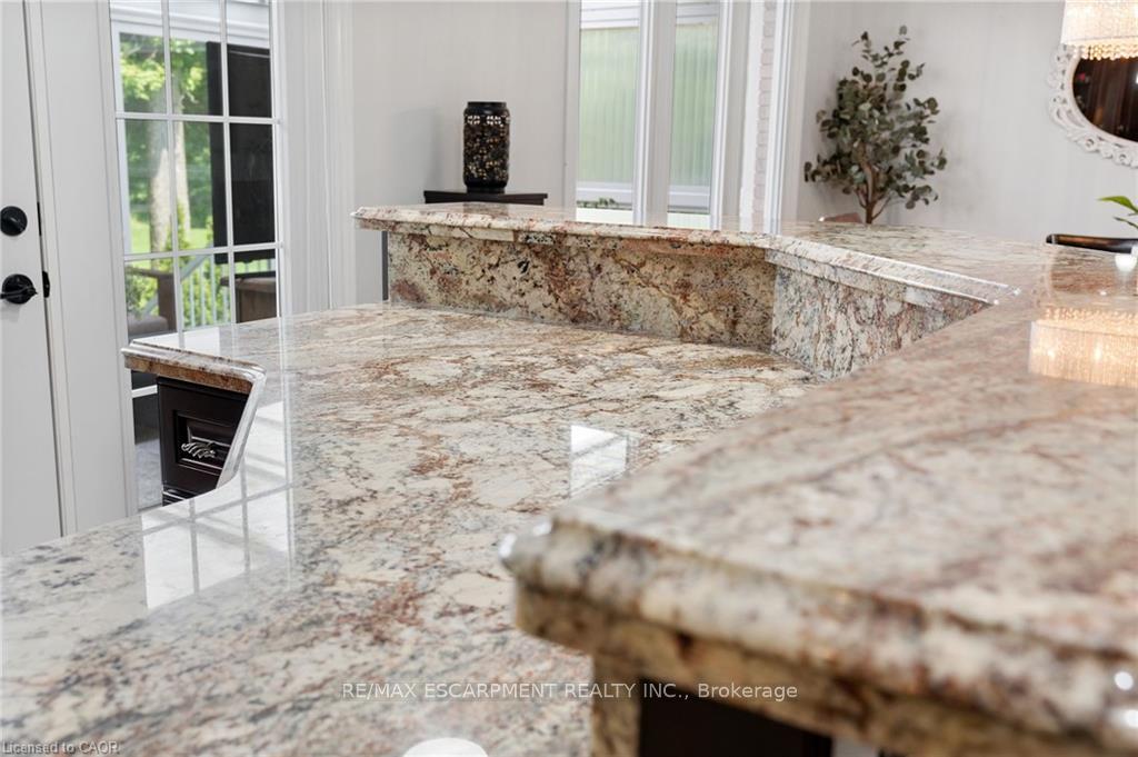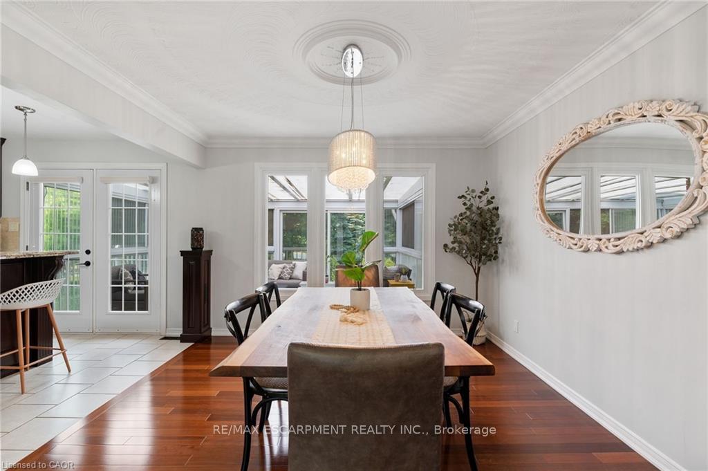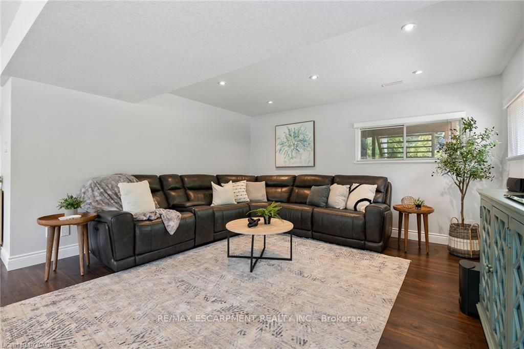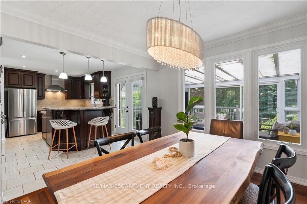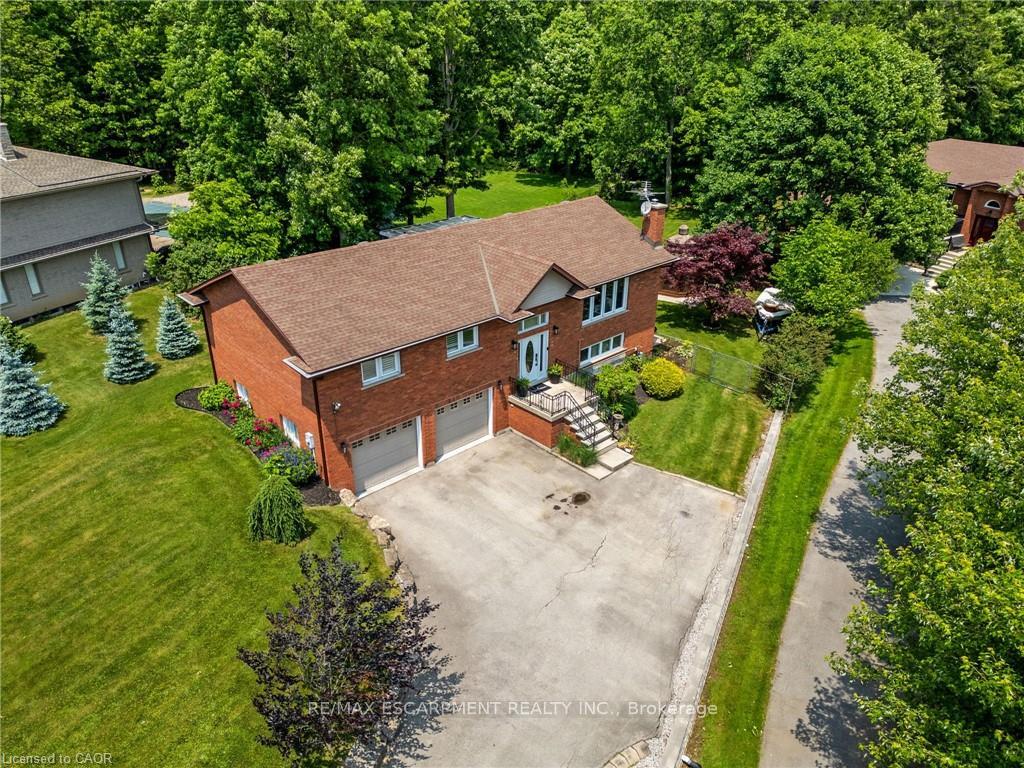 Welcome to this serene country property, ideally located just minutes from all amenities, the airport, and highway access! This beautiful all-brick raised ranch is set back from the road and nestled on a mature half-acre lot with a large, fully fenced area-perfect for kids and dogs-backing onto a peaceful forest. The main floor offers a functional layout featuring an updated kitchen with granite countertops and an island that opens to the dining area and provides access to a spacious 3-season sunroom-ideal for morning coffee or relaxing. The family room off the dining area is generously sized, perfect for hosting family and friends during the holidays. The spacious primary bedroom is highlighted by a luxurious tile shower and a granite-topped vanity. Quality hardwood floors flow throughout the bedrooms and main floor living spaces. The bright lower level with oversized windows provides additional living space, including a large rec room with a gas fireplace and a walkout to the lower-level patio with access to the backyard. A 2-piece bathroom, laundry room, and interior access to the garage complete the basement. Need space for a workshop or extra vehicles? The oversized garage runs the full depth of the home, offering plenty of versatility. Don’t hesitate to book your showing-come experience this park-like property for yourself!