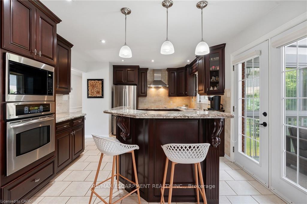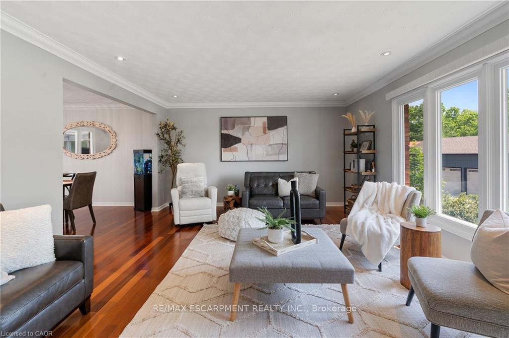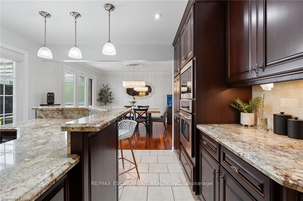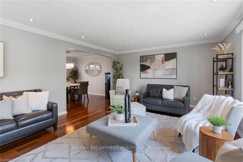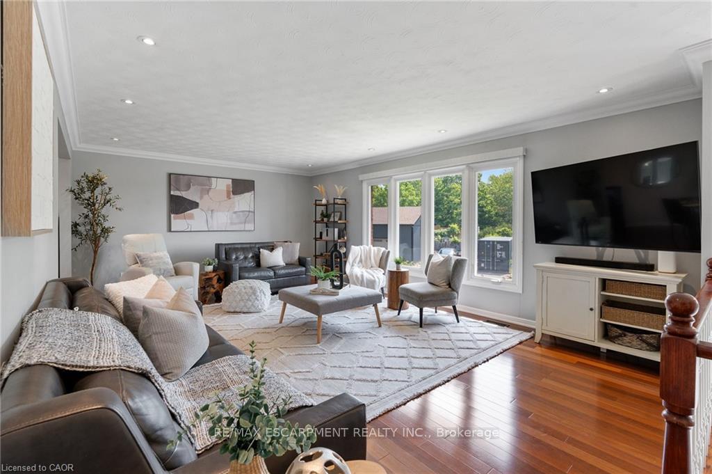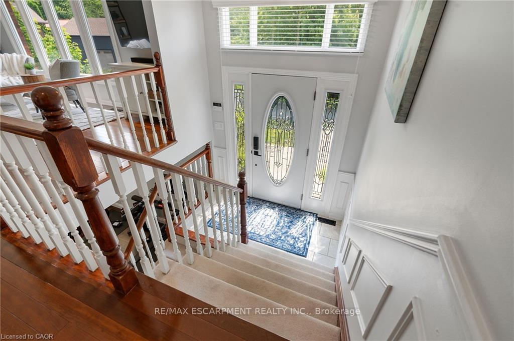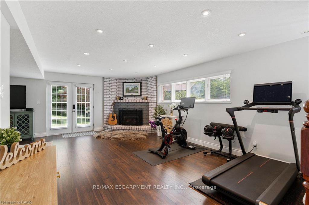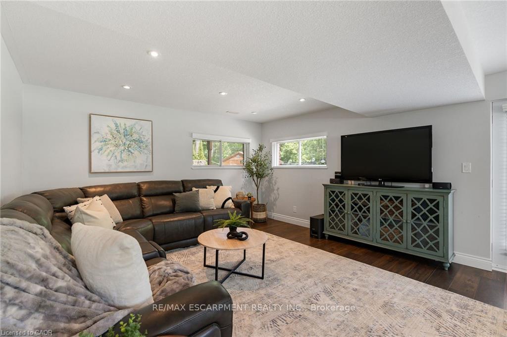 Welcome to this serene country property, ideally located just minutes from all amenities, the airport, and highway access! This beautiful all-brick raised ranch is set back from the road and nestled on a mature half-acre lot with a large, fully fenced area-perfect for kids and dogs-backing onto a peaceful forest. The main floor offers a functional layout featuring an updated kitchen with granite countertops and an island that opens to the dining area and provides access to a spacious 3-season sunroom-ideal for morning coffee or relaxing. The family room off the dining area is generously sized, perfect for hosting family and friends during the holidays. The spacious primary bedroom is highlighted by a luxurious tile shower and a granite-topped vanity. Quality hardwood floors flow throughout the bedrooms and main floor living spaces. The bright lower level with oversized windows provides additional living space, including a large rec room with a gas fireplace and a walkout to the lower-level patio with access to the backyard. A 2-piece bathroom, laundry room, and interior access to the garage complete the basement. Need space for a workshop or extra vehicles? The oversized garage runs the full depth of the home, offering plenty of versatility. Don’t hesitate to book your showing-come experience this park-like property for yourself!
