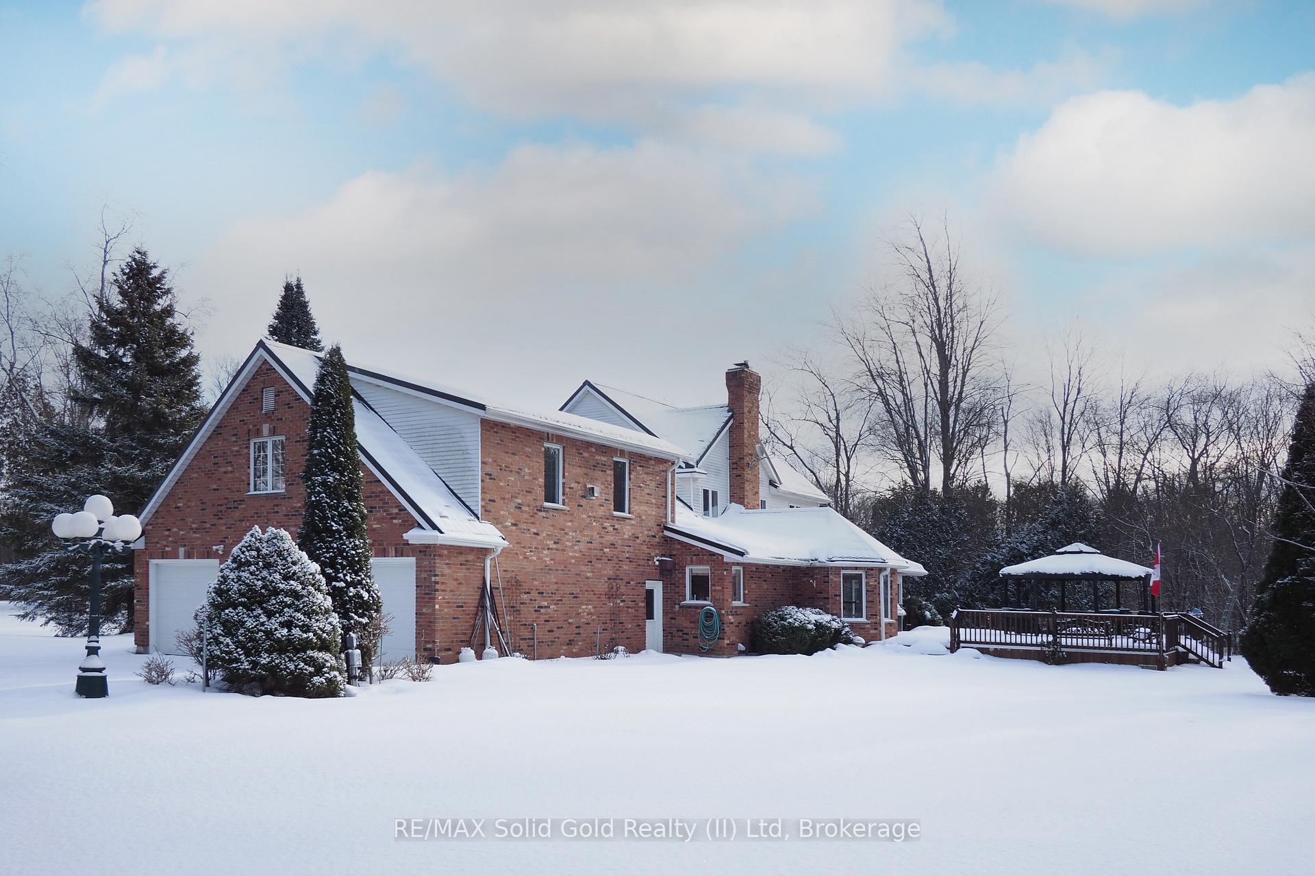 Country Estate! On a tranquil 1.25 acre lot. Custom built 4,000+ sq.ft. reclaimed brick residence with metal roof and triple garage. There are 5 bedrooms (each with an ensuite) and 7 bathrooms. This sprawling bungaloft has 2 master bedroom suites – one on the main floor and one upstairs. Gourmet kitchen and dinette overlook the picturesque grounds. Main floor also includes formal living and dining rooms, family room and library/office. Enclosed porch/ sunroom. Outdoor space includes a 900+ sq.ft. deck, gazebo and firepit. Huge workshop in basement plus hobby room. Good access to 401, Breslau airport, Guelph, Kitchener and Cambridge. Nature lovers welcome here!