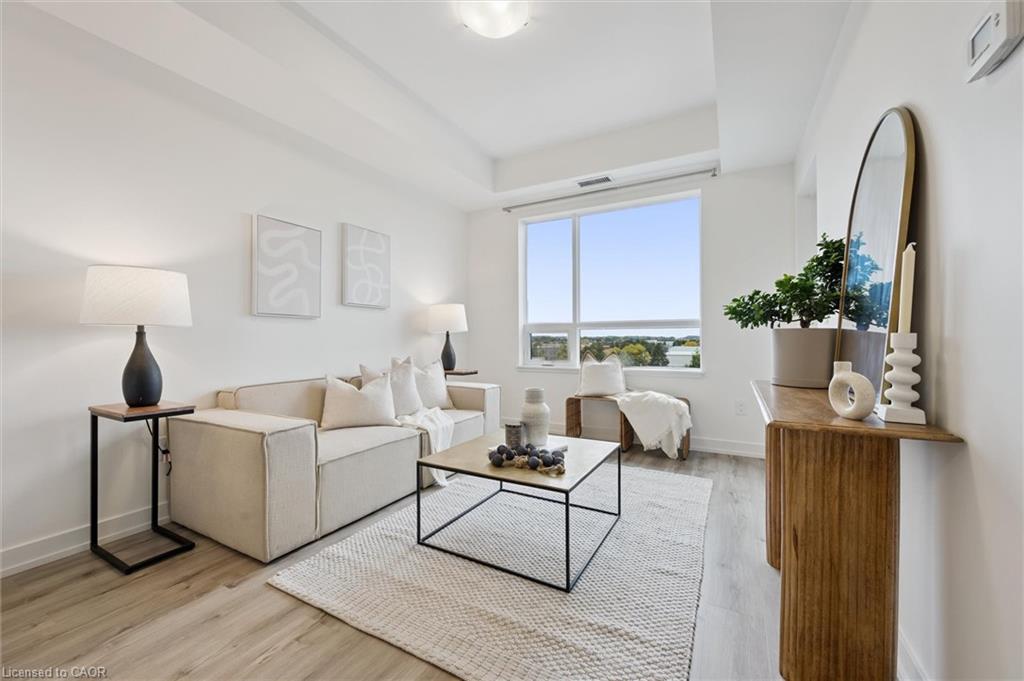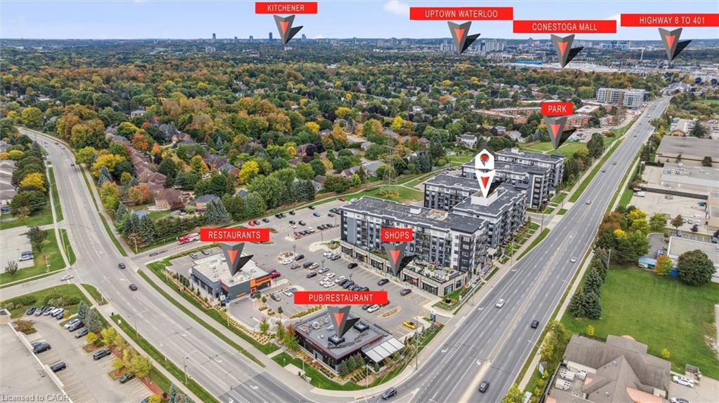 Welcome to Blackstone! This stylish 1 bed, 1 bath condo with underground parking offers modern finishes, amenity rich facilities and an ideal Waterloo location at a great price! Located on the 5th floor with northwestern exposure, this bright unit features sunset views from the private balcony and a functional open layout. The kitchen comes equipped with stainless-steel appliances, double under-mount sinks with pull-down chef’s faucet, subway tile backsplash, and a rolling island for extra storage. Beyond the main living area, you’ll find a spacious bedroom with a walk-in closet and cheater ensuite featuring a quartz-topped vanity and tiled shower/tub combo, plus in-suite laundry and a front hall closet for added convenience. Residents at Blackstone benefit from heat and high-speed internet included in the monthly fees and have access to premium amenities including a fitness centre, work/study rooms, games room, lounge, meeting areas, bike storage with repair station, dog wash, and two outdoor terraces with BBQs and fire pit areas. Located close to Conestoga Mall, Rim Park, St. Jacob’s Market, restaurants, cafés, tech offices, and trails, and offering easy access to the LRT and Highway 85, this condo the perfect balance of lifestyle, location, and value for first-time buyers, young professionals, downsizers, or investors!