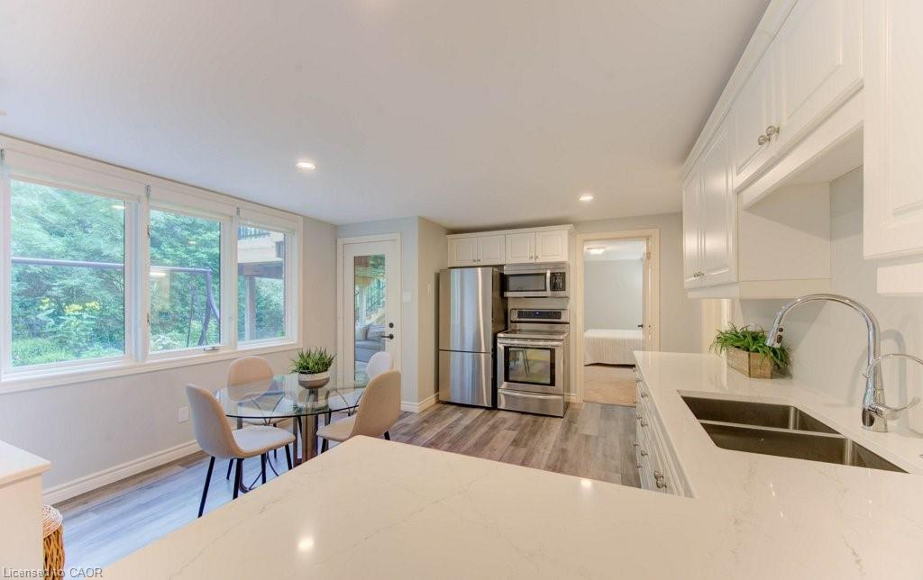 FIRM OFFER ACCEPTED, pending deposit receipt. OPEN HOUSE CANCELLED>A custom-built home located in the region’s best rated school catchment; Laurelwood is one of Waterloo’s most sought-after neighbourhoods. Backing onto Trillium Valley Park, this large family home’s backyard is essentially a Private woodland, a perpetual protected green space. This home has been beautifully maintained and it shows. Featuring 2 levels of above ground living + a beautiful in-law suite on the lower walk-out level with separate entrance! When you enter you will immediately be awed by the brightness, floor-to-ceiling picture windows frame the backyard foliage and natural light floods the main living room. On the main level is a tranquil & cozy den/office room, a dedicated dining room, large family/living room with cathedral ceilings and a gas fireplace which leads into the large kitchen featuring Granite countertops and Stainless Steel appliances & a dinette area. A door from the kitchen leads to a beautiful cedar deck. A laundry/mudroom off the double car garage and a powder room complete this level. Upstairs you will find 4 bedrooms: 3 spacious bedrooms and a 4-piece bathroom, AND a massive Primary Suite with a vaulted tray ceiling, with not 1 BUT 2 walk-in-closets and a 5-piece bathroom. As if this isn’t enough, the lower level is like an entire home to itself. A walk out to a new poured concrete patio, you have great access to both this patio and the elevated deck… flexible outdoor entertaining spaces for a crowd! This level, too, has an abundance of natural light. A complete kitchen with Quartz countertops and Stainless Steel appliances, a large family room with a gas fireplace, an office/gym area, 2 bedrooms and a 3-piece bathroom make this an ideal space for multi-generational living, a great area for extended family and children.