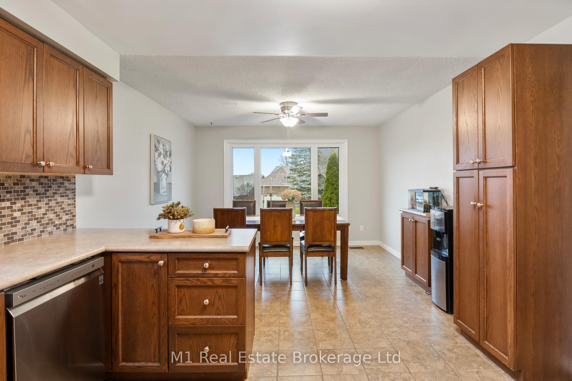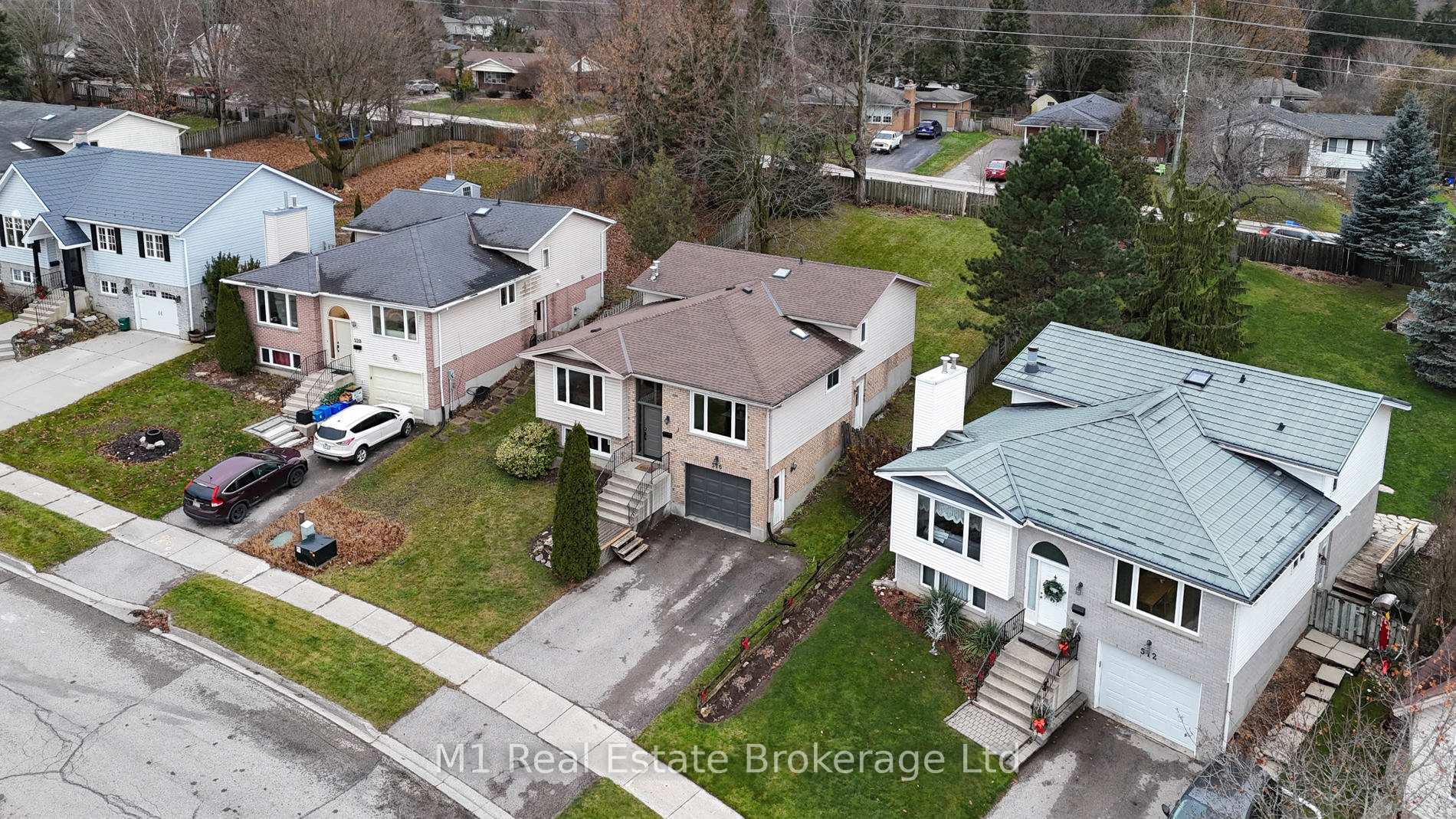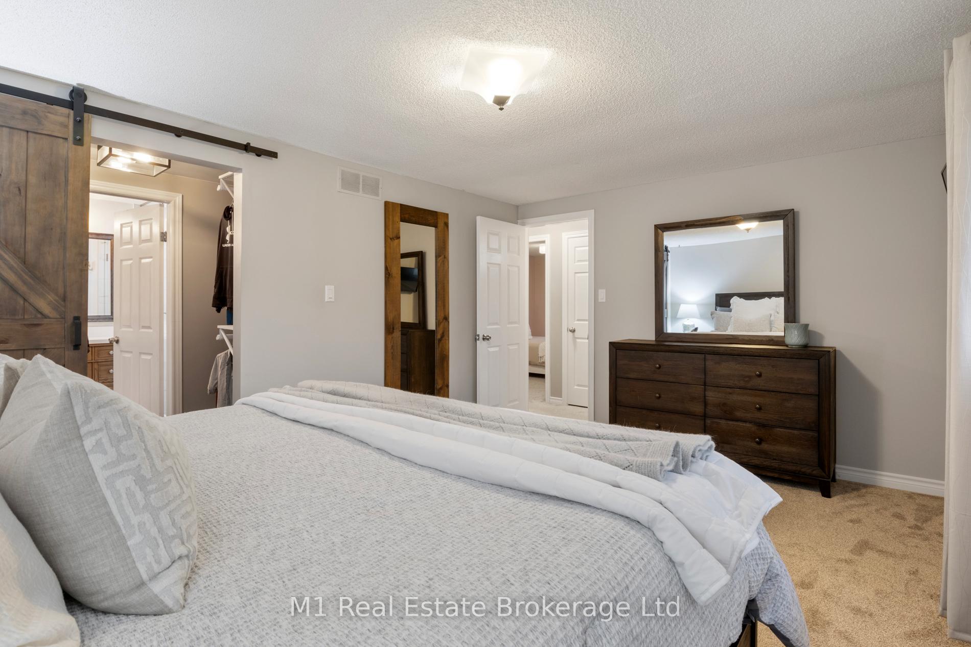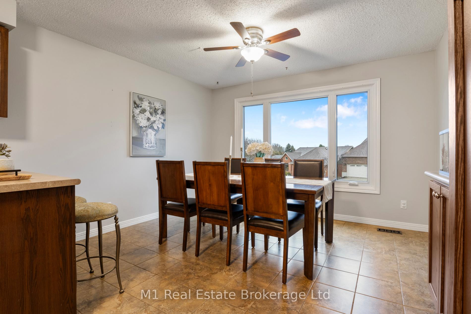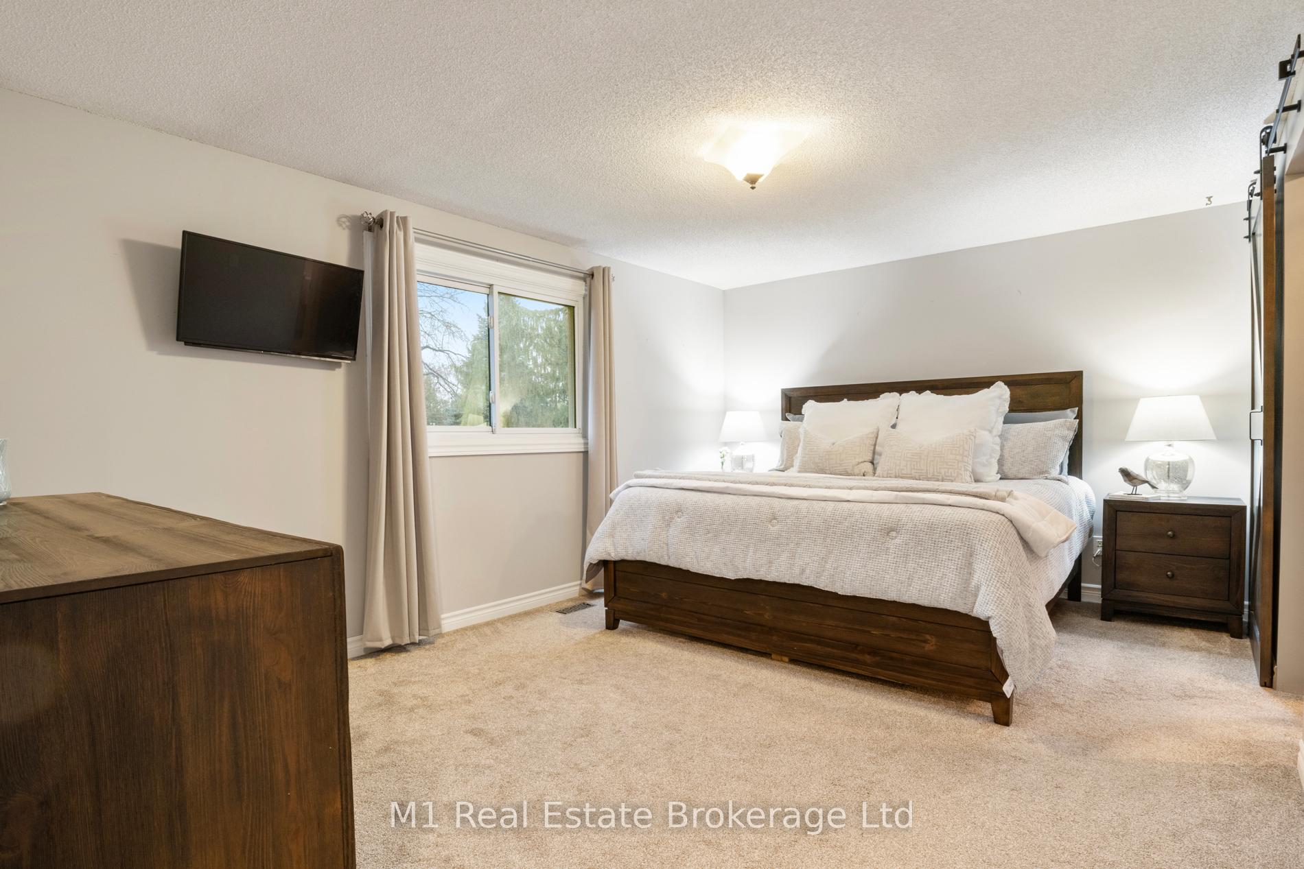Spacious backsplit in a mature Fergus neighbourhood offering over 2,000 sq. ft. of finished living space and a great family-friendly layout across four levels. Three bedrooms upstairs plus a fourth on the lower level, along with three bathrooms including a 3-piece ensuite. Bright kitchen with 2020 appliances opens to the dining area with large windows and a skylight. The main living room walks out to the large backyard, while the lower-level family room features a gas fireplace and a separate entrance-ideal for extended family or in-law potential. Major updates include: furnace (2019), A/C (2020), carpet (2020), water softener (2020), roof (2026), ensuite (2021) andmain bath (2024). Convenient location close to downtown Fergus, the Grand River, trails, Sportsplex, schools, and an easy commute toward Guelph.