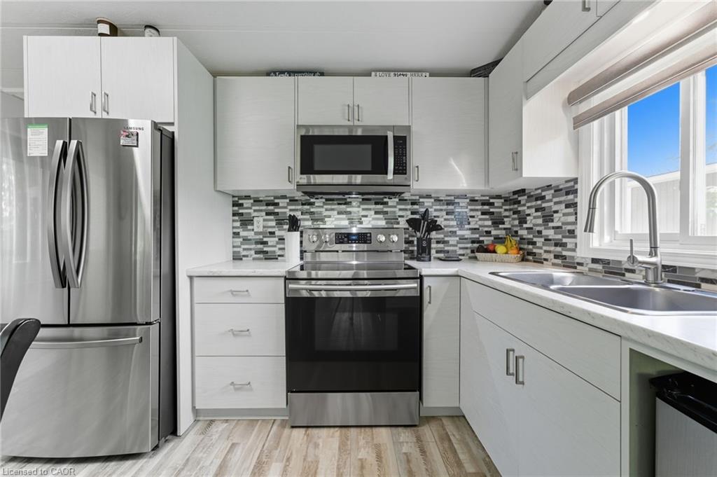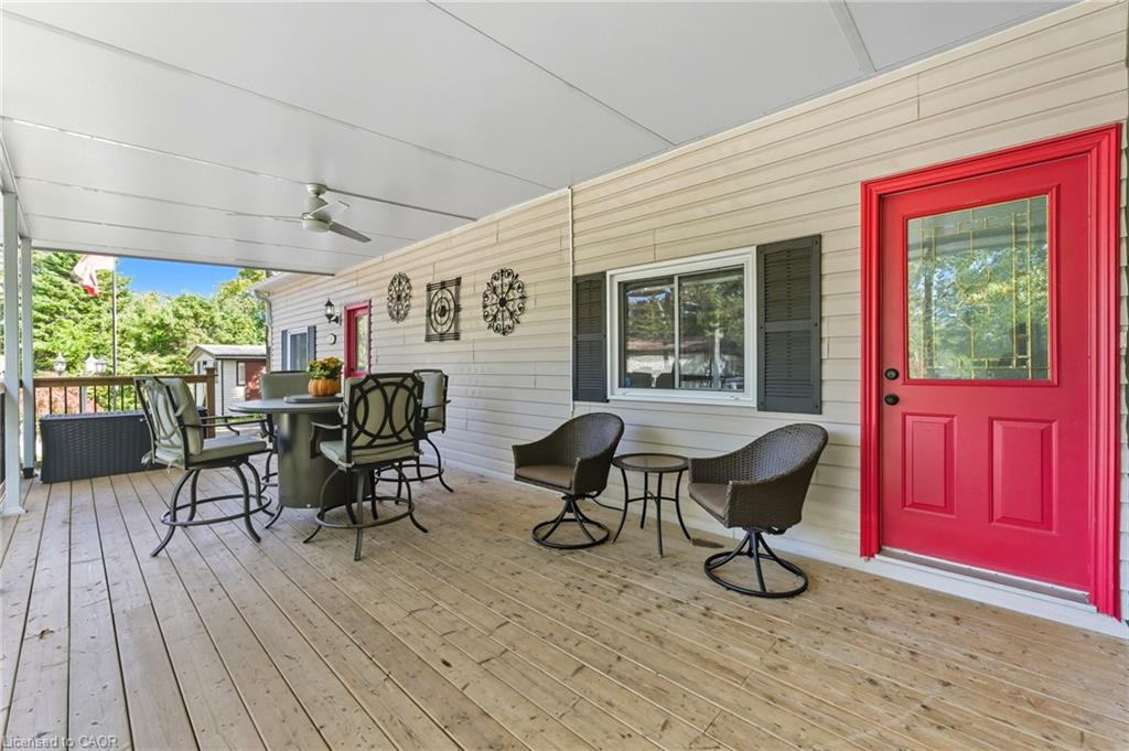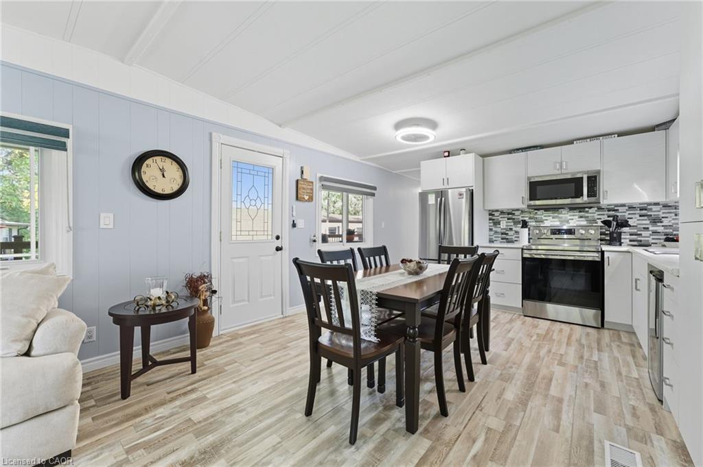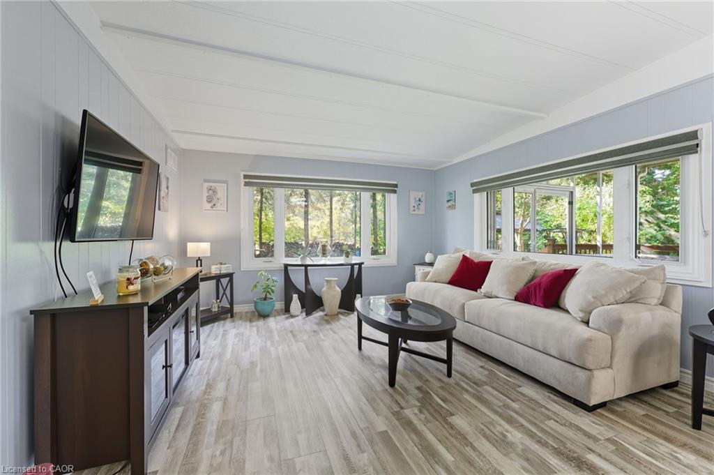 Welcome to Unit #518, a beautifully updated Northlander model offering the rare privilege of year-round living in the family-owned and operated Hillside Lake Park. Over the past few years, this home has undergone extensive renovations and presents a fresh, move-in-ready space to call your own. Step inside to find new vinyl plank flooring, fresh paint, upgraded lighting, and custom zebra blinds throughout. The stylish eat-in kitchen features upgraded cabinetry, stainless steel appliances, and a rough-in for a dishwasher. A spacious living room with two large windows fills the home with natural light, while the primary bedroom offers comfortable proportions right beside the 4-piece bathroom with in-suite laundry. A second bedroom or flex room makes the perfect spot for an office, craft space, or guest room. Outdoors, you’ll love spending time on the massive 40′ x 12′ covered deck, complete with a 10′ x 12′ screened-in room—perfect for morning coffee or evening gatherings. The exterior of this home is surrounded by mature trees and features a fire pit, deck with gazebo, and two sheds for extra storage. Included in the sale are tons of extras such as outdoor furniture, fire table, shelving, storage boxes, firewood, and more! Very rarely do these year-round units come up for sale, especially ones with these upgrades, so DO NOT miss your chance! Book your showing today! [Monthly rent: $540.04 (additional fees apply)]