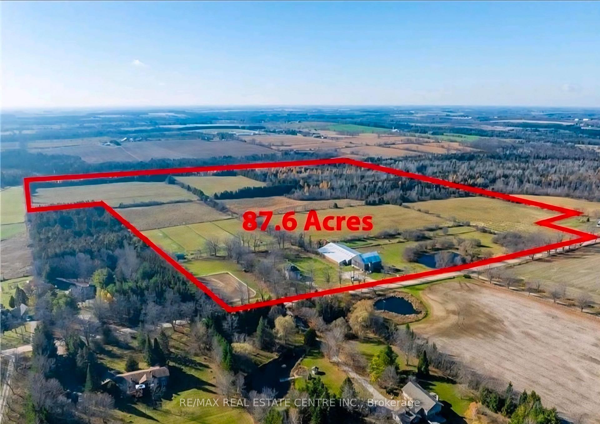 An exceptional opportunity to acquire a turn key equestrian facility. Offering unparalleled value and proximity to the Greater Toronto commuter Area-approximately 1 hour away. This property combines affordability, expansive acreage, and premium amenities, making it a unique investment for discerning buyers. Land Area: 87.6 acres, approx 30 acres hay, roughly 20 acres of woods for recreational activities .Eleven well-appointed paddocks with excellent newer fencing and hardware, most have automated year-round Richie waters. A spacious 60 x 140 ft. indoor arena with viewing room complemented by a large 100 x 200 ft outdoor sand ring and a grass ring that suits any equestrian activity. Multiple barns in A++ condition, providing 31 stalls, 6 tack rooms, a wash stall & feed room, century bank barn with hay loft. Hack next door to the Meadowlark Showground, 45 mins drive to GTA , 6 mins drive to Angelestone and 45 mins to Palgrave . This set up is easily tailored to hosting shows, camps, and boarding. Easy large rig access and ample turnaround space.The 100 year stone farm house has many original architectural details incl gorgeous two-sided fireplace in the inviting eat-in farmhouse kitchen, original baseboards with extra high and wide trim, five-bedrooms, the cozy third-storey attic is suitable for use as an office or the 5th bedroom. The land and buildings are well maintained and fully prepared for immediate and turnkey use A stream at the rear of the property and a charming pond at the front rounds out this special property. INVESTMENT POTENTIAL :The property’s prime location in the heart of Erin with its extensive amenities make it an attractive investment opportunity. Options include full or partial rental for home, storage, or any equestrian purposes, farming or simply holding as a valuable future land bank. Properties of this calibre and pricing in this area are exceedingly rare.