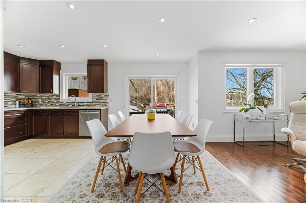 Welcome to 51D John Street in Georgetown, Halton Hills-a charming bungalow nestled on a serene ravine lot. This home offers a perfect blend of natural beauty and functional living. The open-concept main floor features a bright living and dining area with abundant natural light and scenic views of the sloping ravine backyard, complete with a deck, garden space, and a cozy fire pit. The kitchen is a chef’s delight, boasting stainless steel appliances and granite countertops and overlooking the backyard as well. The primary bedroom includes a four-piece ensuite, a closet and separate wardrobe. Two additional spacious bedrooms share a main bathroom. The main level also features a laundry/mudroom with convenient garage access. Downstairs, a large recreation room awaits, along with a den (or extra bedroom) and another four-piece bath. The lower level also offers a fully separate in-law suite with its own separate entrance and kitchen, one bedroom, living and dining area, a large cold room/cantina, and a four-piece bathroom. Outside, you’ll find a one-car garage fitted with automatic door opener, 2 sets of tire racks and cabinets for extra storage. Plus four additional parking spaces, making this a rare and versatile find! This home is a short walk from the GO Station making commuting very convenient. Close to schools and shopping, park and trail.