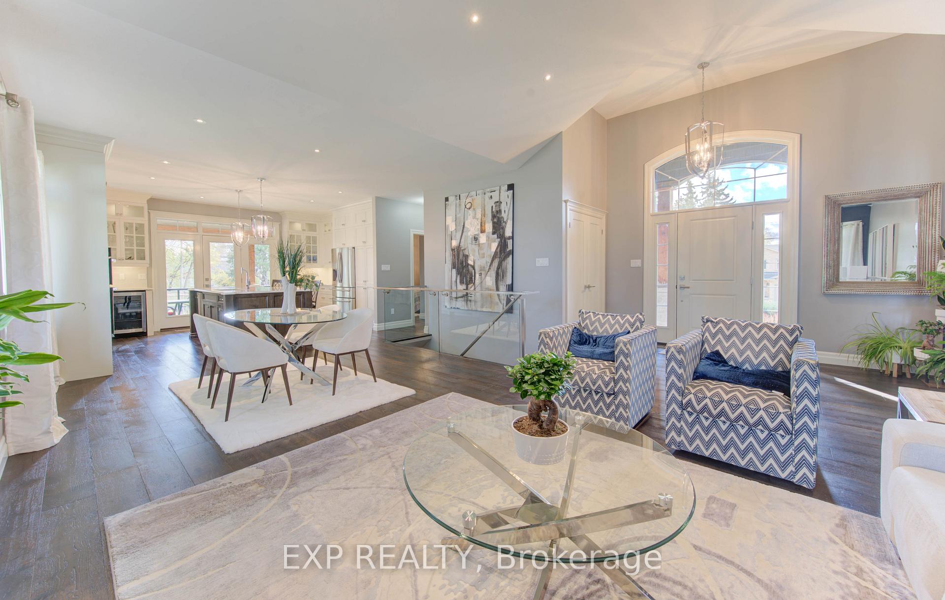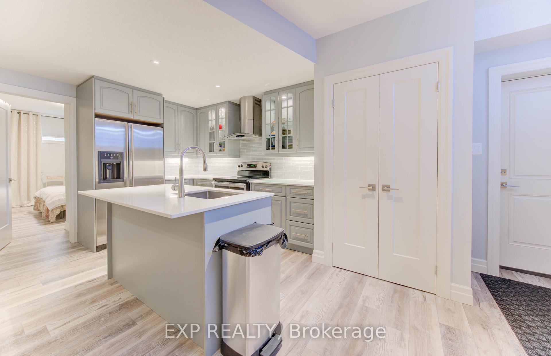 Welcome to 52 Edgehill Drive, Kitchener, a stunning all-brick and natural stone bungalow that blends modern luxury, functionality, and timeless design. Nestled in the prestigious Deer Ridge community, just minutes from Highway 401, shopping, golf, and scenic trails, this home offers over 3,800 sq. ft. of finished living space, including a spacious in-law suite perfect for multi-generational living. Step inside the 1,925 sq. ft. main floor, where open-concept living meets contemporary style. Enjoy engineered hardwood floors, pot lights, and modern glass railings, creating a bright and elegant atmosphere. The living room features a built-in fireplace and flows effortlessly into the dining area and chef-inspired kitchen with a large centre island, quartz countertops, ample cabinetry, and top-of-the-line stainless steel appliances, including a drink fridge. The primary suite is a true retreat, showcasing large windows, barn doors, and a spa-like ensuite with double sinks, a soaker tub, a tiled walk-in shower, and a spacious walk-in closet. Two additional bedrooms, two additional bathrooms, and main-level laundry complete this exceptional floor. The finished basement adds another 1,155 sq. ft., featuring a generous recreation room with plush carpeting, pot lights, and a fireplace, along with an additional bedroom and bathroom. The separate 768 sq. ft. in-law suite offers open-concept living, dining, and kitchen areas with engineered hardwood floors, pot lights, a fireplace, stainless steel appliances, one bedroom, one bathroom, and separate laundry with storage. Outside, enjoy the covered deck with a built-in fireplace, perfect for year-round entertaining. The extra-wide concrete driveway accommodates 8+ vehicles, complementing the triple-car garage. A rare find that combines elegance, space, and versatility, 52 Edgehill Drive is the ideal home for families seeking comfort and style in one of Kitchener’s most desirable areas.