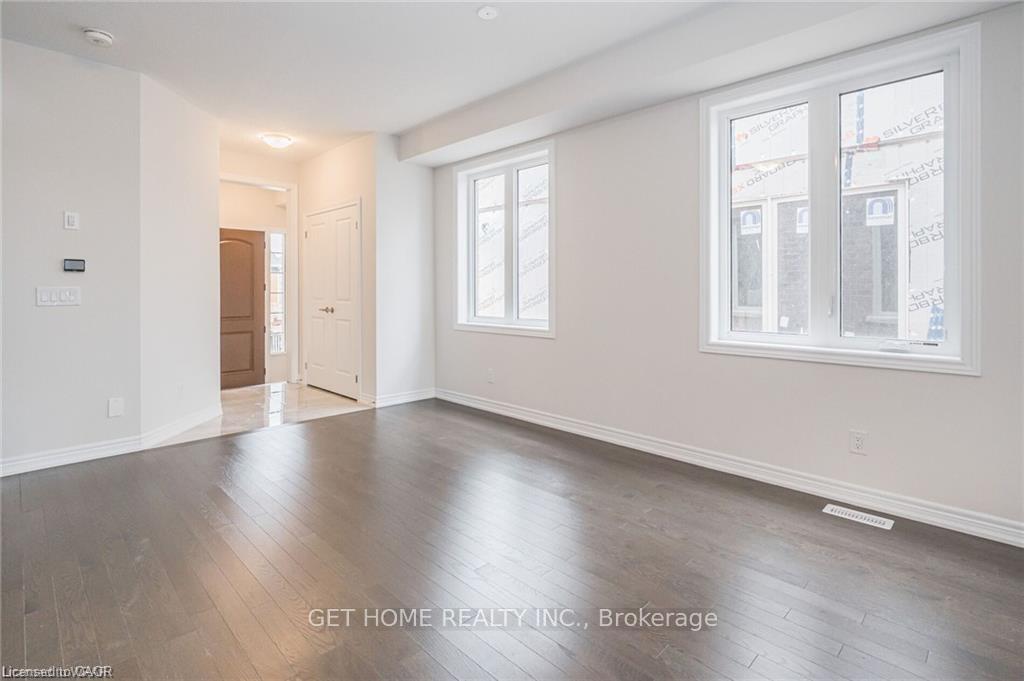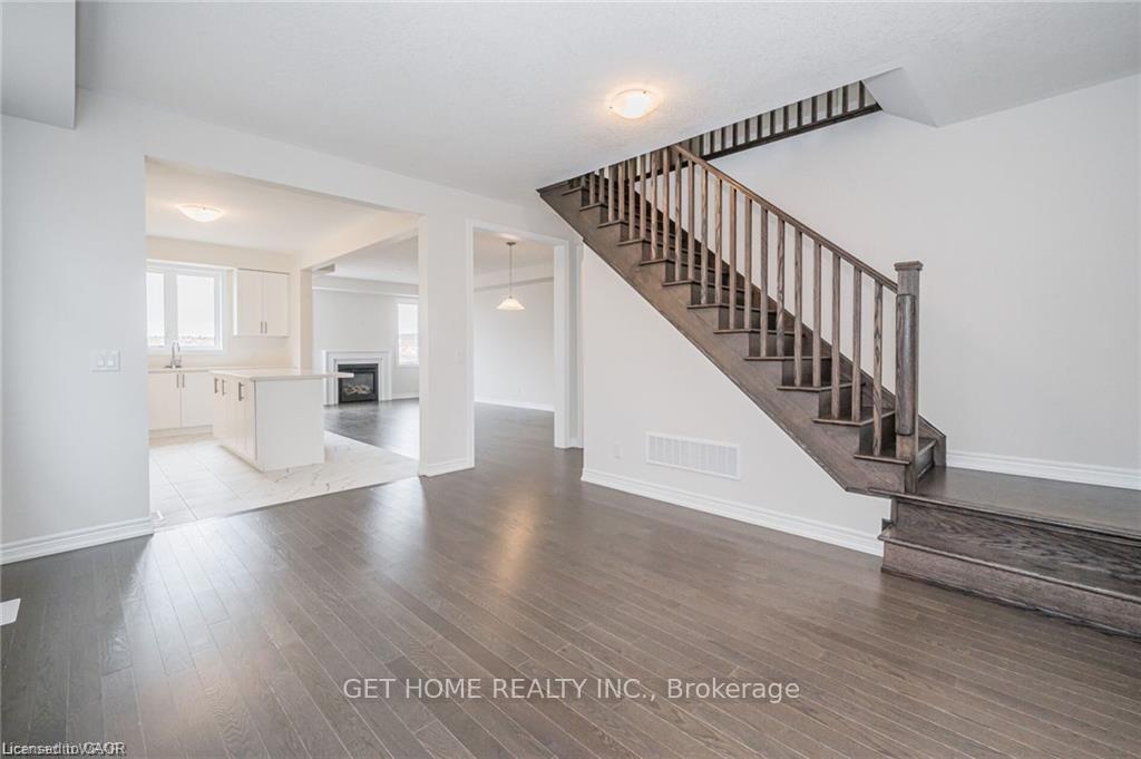 Rare opportunity to own a beautifully designed 4-bedroom, 3.5-bath detached home in the sought-after Wallaceton Community of Kitchener. This spacious home features an open-concept main floor with elegant hardwood flooring, a sun-filled great room with fireplace and large windows, and a modern kitchen complete with quartz countertops, centre island, and brand-new stainless steel appliances. The dining area seamlessly connects to the backyard, perfect for entertaining.A stunning staircase leads to the second level, offering four generously sized bedrooms, including walk-in closets, along with a convenient second-floor laundry room. Additional highlights include a double car garage plus driveway parking. Ideally located close to parks, public transit, and everyday amenities-this home offers comfort, style, and exceptional convenience.