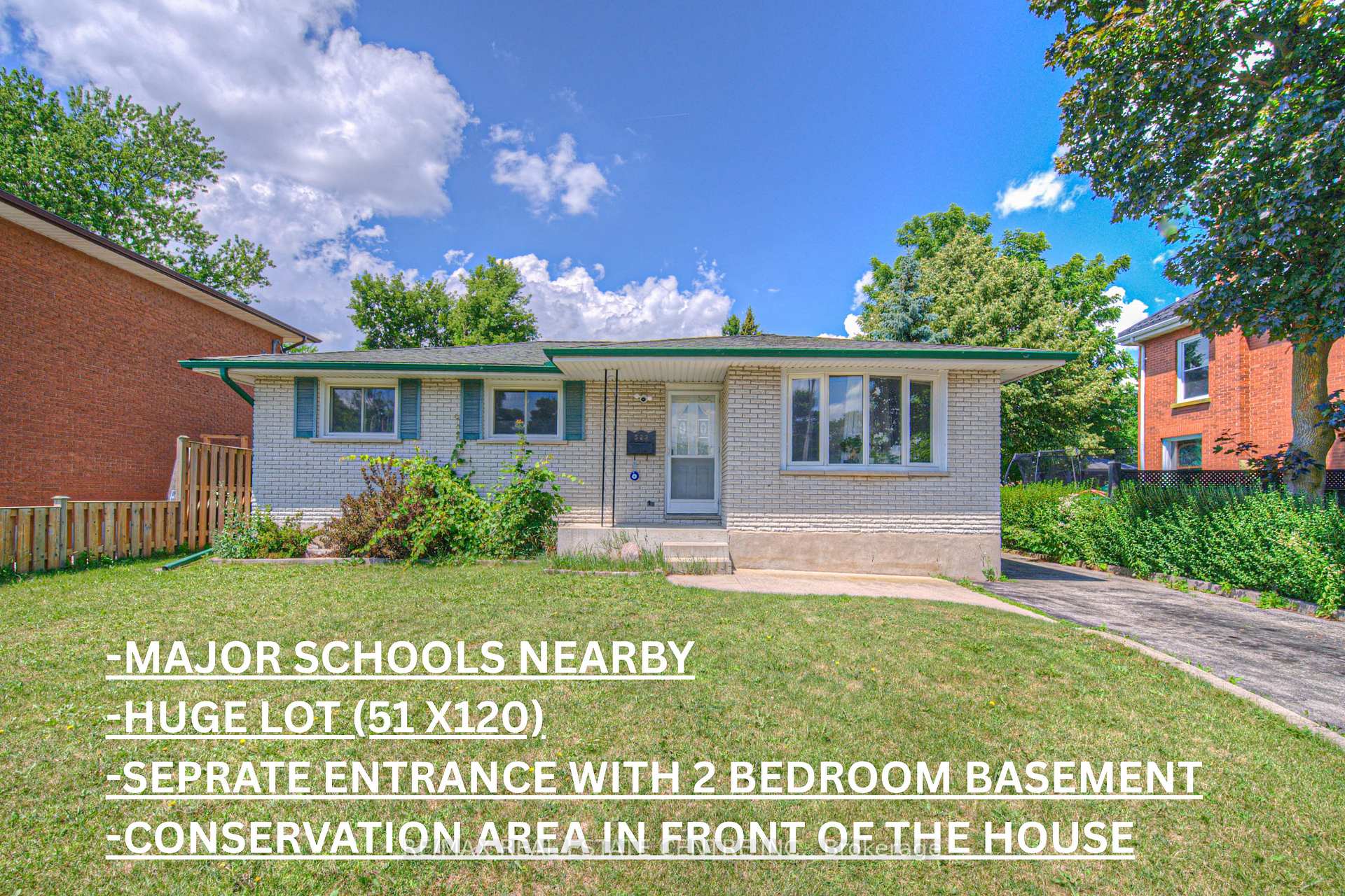 3 Major schools close by. This is a Beautifully kept bungalow in a quiet and desirable Cambridge neighborhood with no front neighbors facing a peaceful conservation area for added privacy and tranquility. This charming home features 3 spacious bedrooms on the main floor and a 2-bedroom basement apartment with a separate entrance ideal for rental income or multigenerational living. Freshly painted throughout and sitting on a large 51 x 120 ft lot, it boasts a huge deck and a private backyard perfect for family gatherings or relaxation. Parking for up to 4 cars. All major amenities are just minutes away including schools, parks, shopping, public transit, and highway access making this home as convenient as it is comfortable. A rare opportunity to own a move-in-ready bungalow with income potential in a prime location!