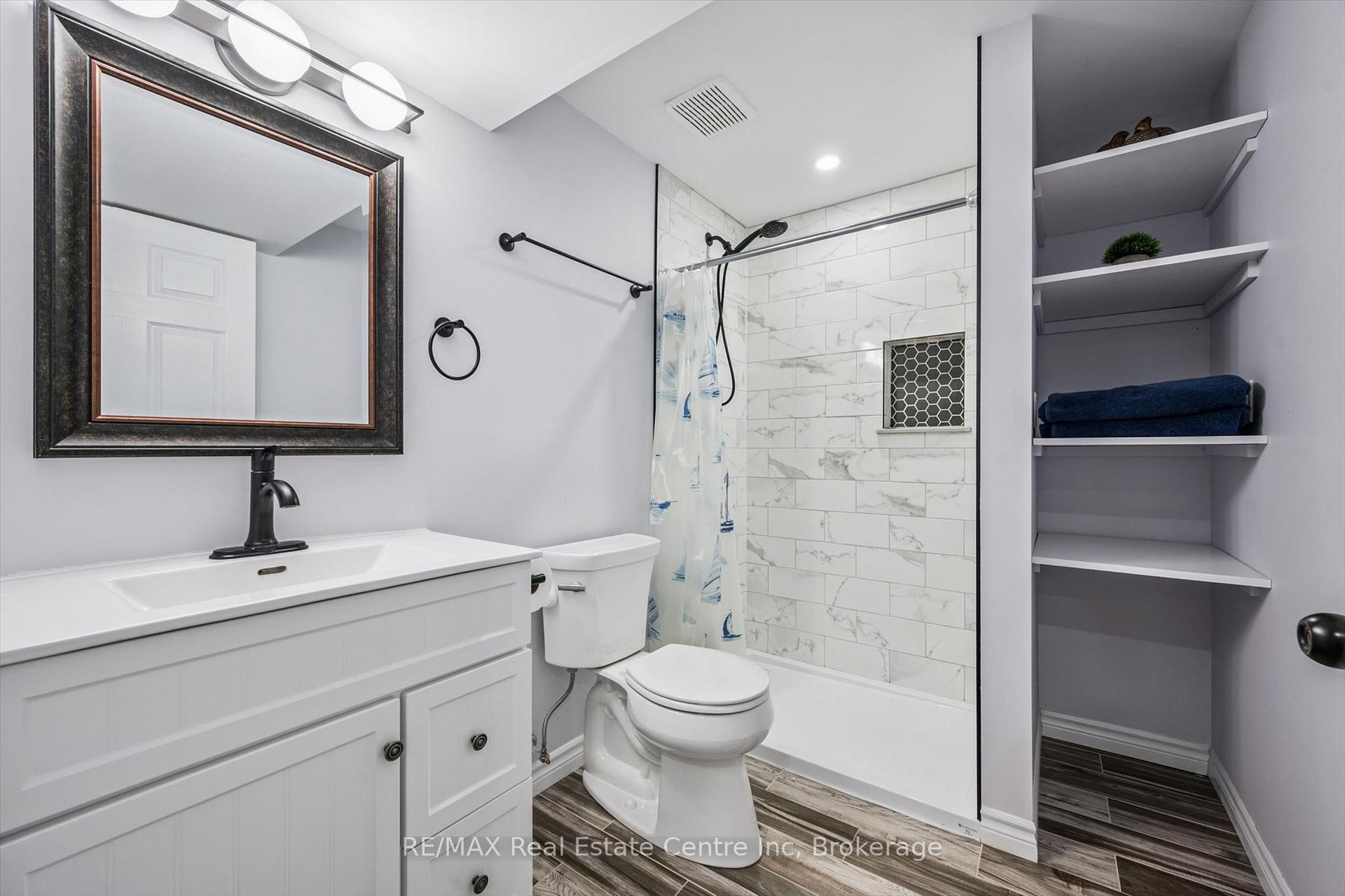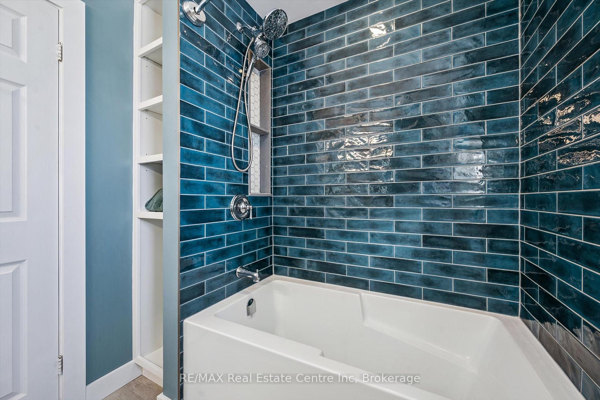 Large Backsplit in Fantastic Neighbourhood! You’ll be impressed with how big this well maintained home is inside. Over 1600 sqft of generous space complete with 3+1 bedrooms, 2 full renovated baths. The first level offers a large front room ideal for a cozy sitting spot and spacious entryway with lots of storage space. Hardwood floors flow through to the dining room and kitchen with vaulted ceilings. Kitchen updates (2022) include quartz counters, subway tile backsplash, undermount sink, fridge and dishwasher (2025) + features 2 pantry closets. Down a couple of steps to the lower main floor you’ll find a huge family room with sliding doors out to your fenced (2021) backyard with concrete patio (2021) and hot tub (2023). An office or 4th bedroom completes this level. Upstairs are 3 right sized bedrooms; the Primary features a large walkin closet. The main full bath has undergone an incredible renovation (2022) with heated floors, extra deep soaker tub, lighted mirror, builtin shelving and stunning tile. Down in the recently finished basement (2021) is a den perfect for kids to play video games, another stunning bathroom (2021) with walkin shower and builtin shelving, plus TONS of storage space! Finishing off this great home is an attached 1 car garage, lovely front deck (2024), paved driveway (2024), integrated gemstone lighting (2023), tasteful landscaping, fresh paint throughout (2021) and new water softener (2023). Situated in South End Fergus close to main roads for commuters, schools and shopping. This is a must see, book your showing today!