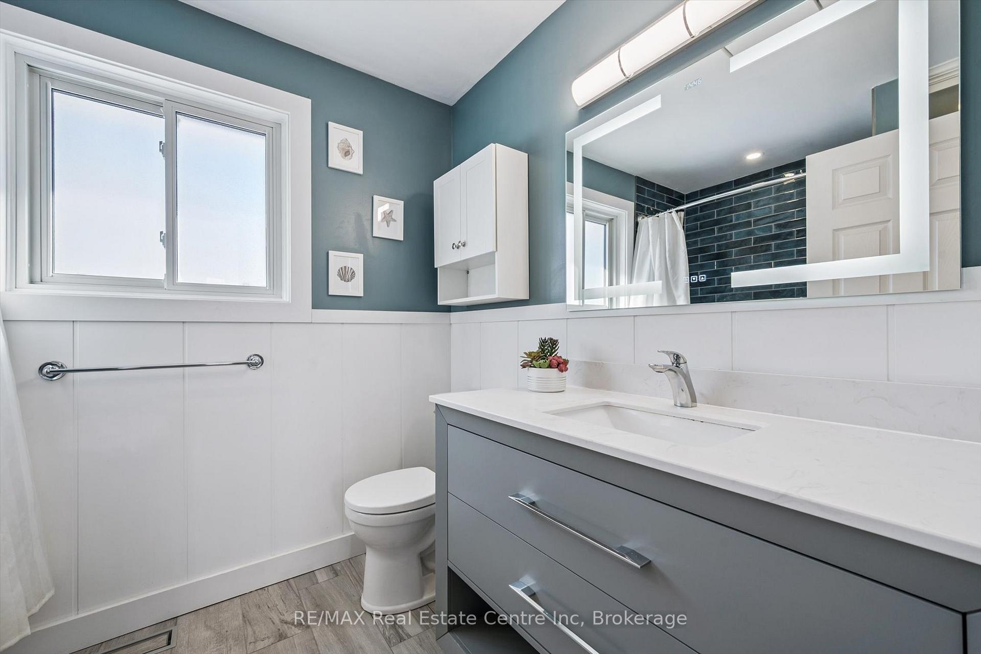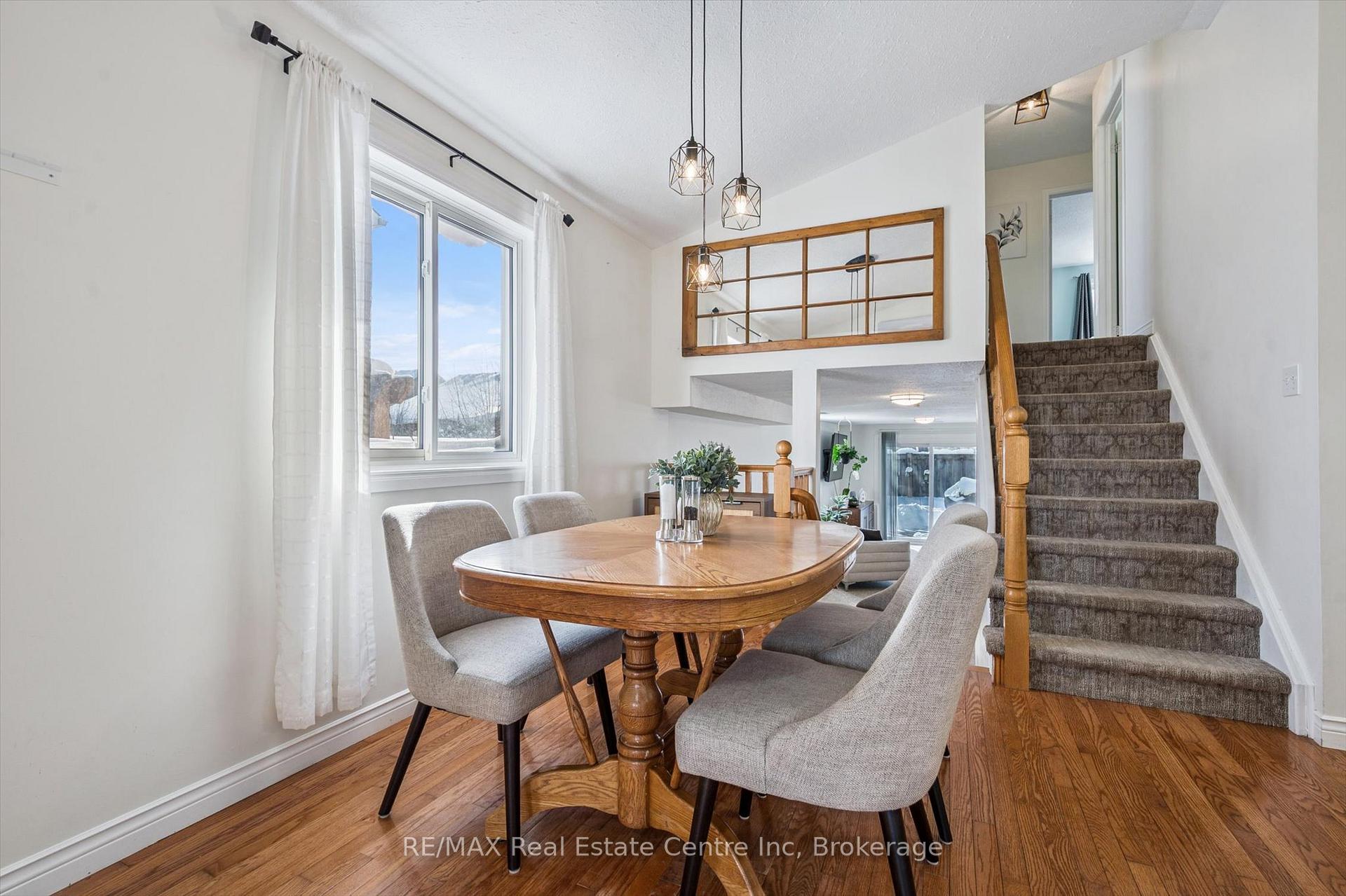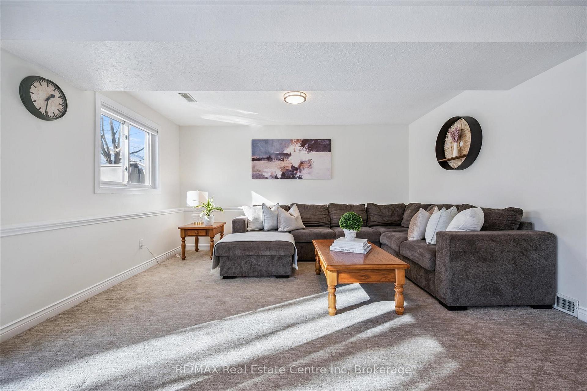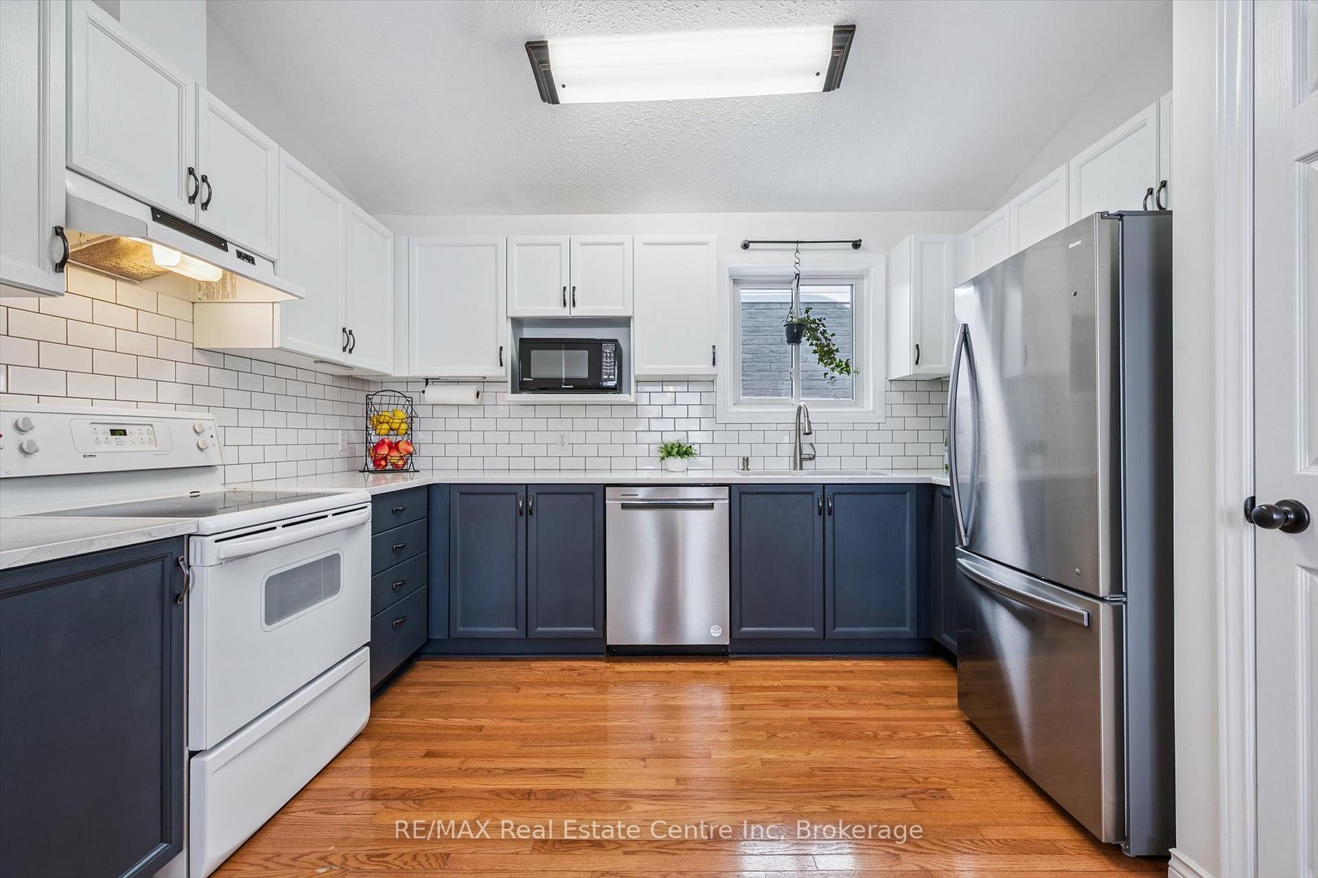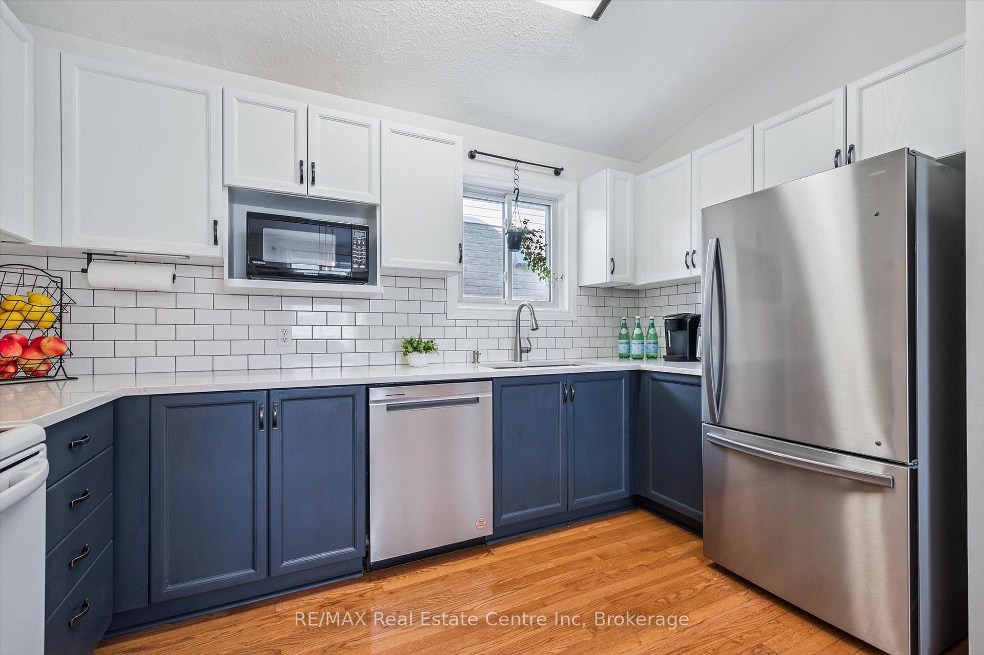 Large Backsplit in Fantastic Neighbourhood! You’ll be impressed with how big this well maintained home is inside. Over 1600 sqft of generous space complete with 3+1 bedrooms, 2 full renovated baths. The first level offers a large front room ideal for a cozy sitting spot and spacious entryway with lots of storage space. Hardwood floors flow through to the dining room and kitchen with vaulted ceilings. Kitchen updates (2022) include quartz counters, subway tile backsplash, undermount sink, fridge and dishwasher (2025) + features 2 pantry closets. Down a couple of steps to the lower main floor you’ll find a huge family room with sliding doors out to your fenced (2021) backyard with concrete patio (2021) and hot tub (2023). An office or 4th bedroom completes this level. Upstairs are 3 right sized bedrooms; the Primary features a large walkin closet. The main full bath has undergone an incredible renovation (2022) with heated floors, extra deep soaker tub, lighted mirror, builtin shelving and stunning tile. Down in the recently finished basement (2021) is a den perfect for kids to play video games, another stunning bathroom (2021) with walkin shower and builtin shelving, plus TONS of storage space! Finishing off this great home is an attached 1 car garage, lovely front deck (2024), paved driveway (2024), integrated gemstone lighting (2023), tasteful landscaping, fresh paint throughout (2021) and new water softener (2023). Situated in South End Fergus close to main roads for commuters, schools and shopping. This is a must see, book your showing today!